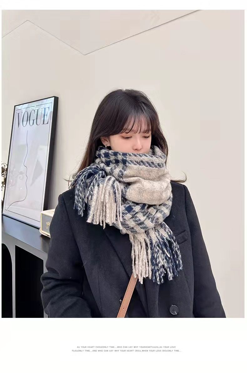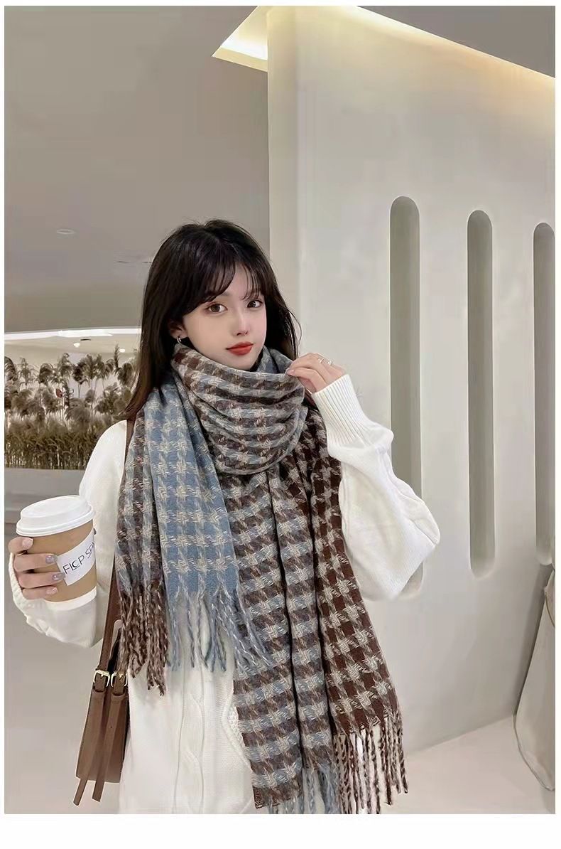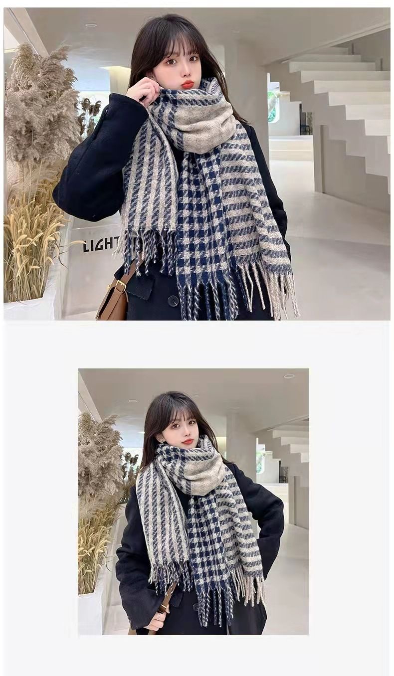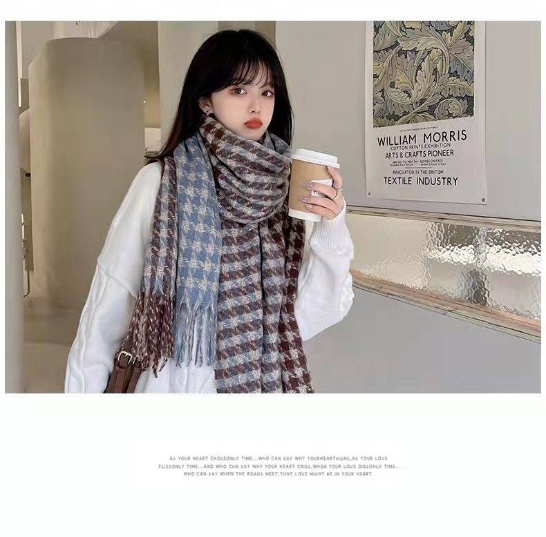 【超显气质❗️韩风千鸟格围巾】超百搭超好看,优雅时尚,软糯手感,微弹不紧绷,ins男女情侣款保暖围脖/披肩/毛毯多用父亲节礼物新年礼盒年货礼盒