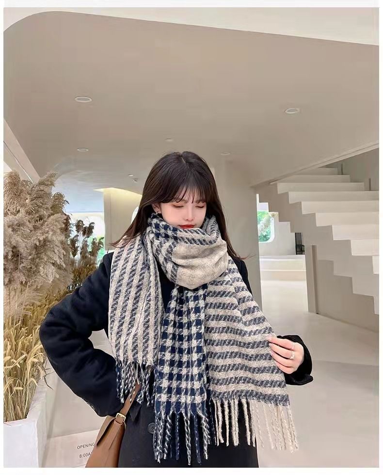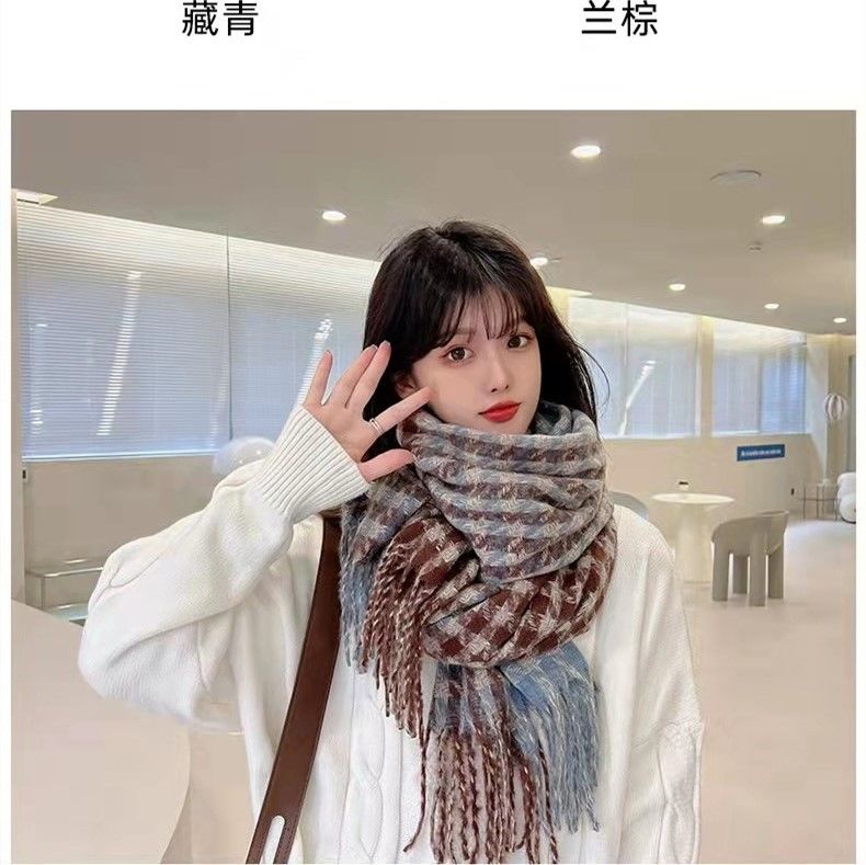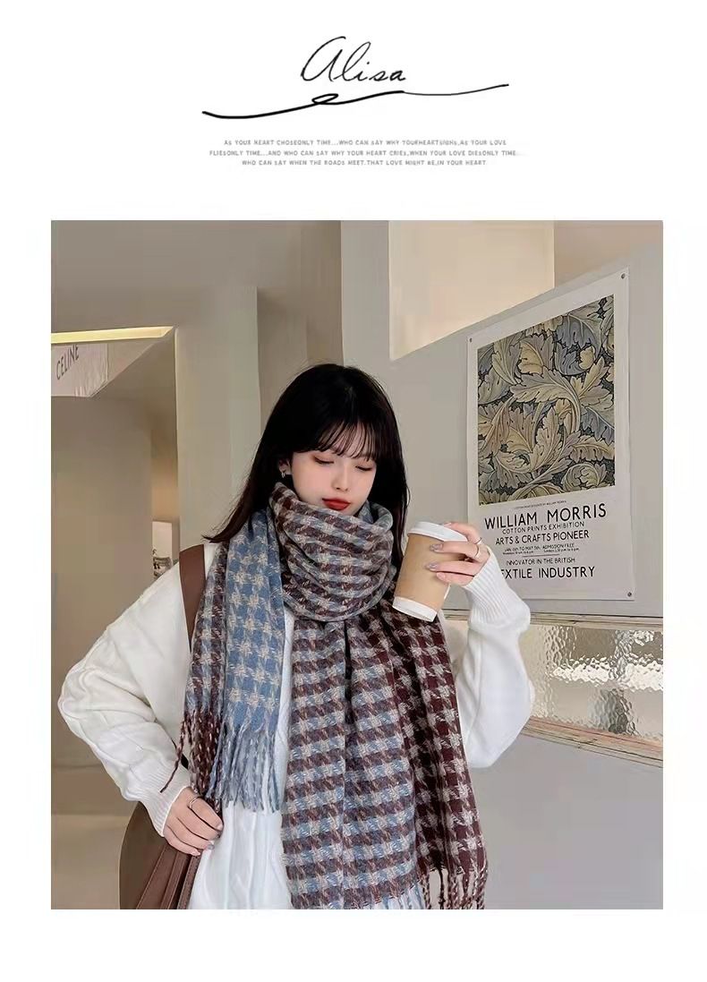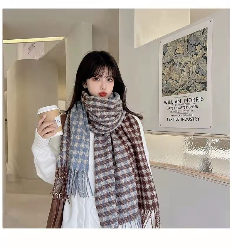 【超显气质❗️韩风千鸟格围巾】超百搭超好看,优雅时尚,软糯手感,微弹不紧绷,ins男女情侣款保暖围脖/披肩/毛毯多用父亲节礼物新年礼盒年货礼盒