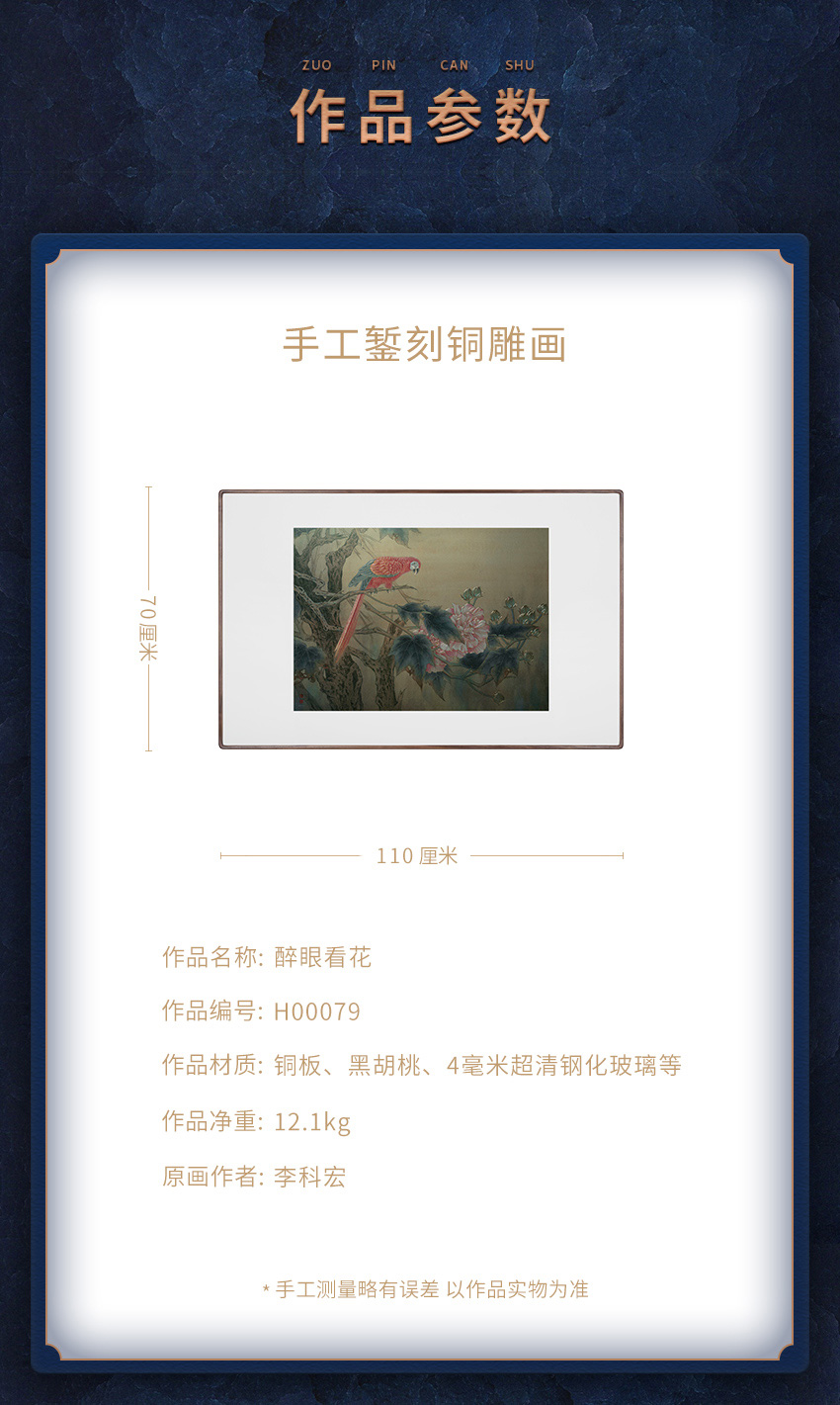 铜师傅 手工錾刻 铜雕画《醉眼看花》
