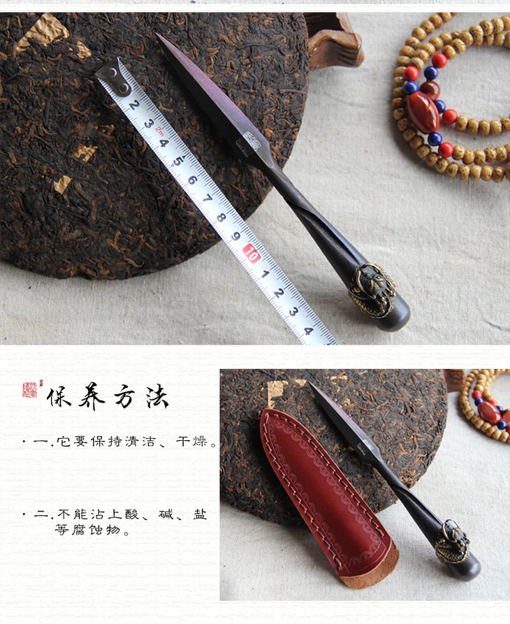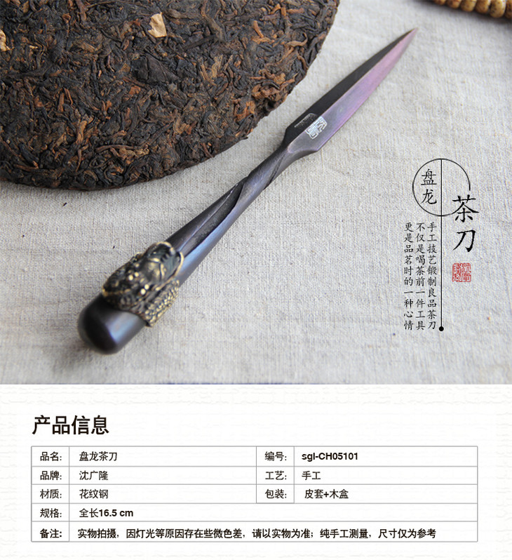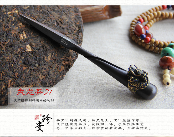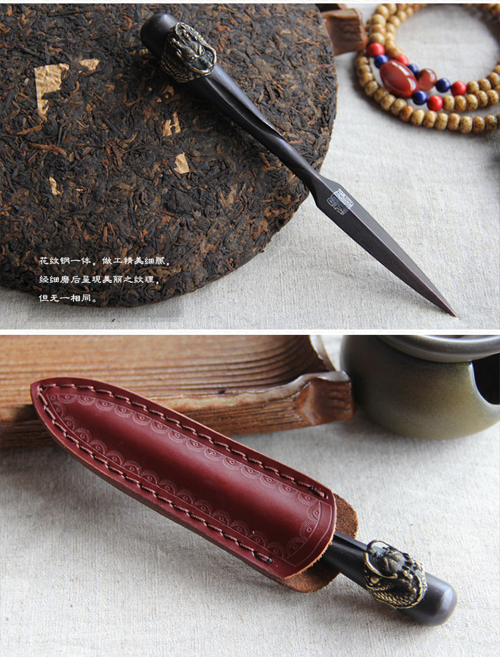 盘龙茶刀 沈广隆剑铺 花纹钢 龙泉茶刀 普洱茶针 未开刃sgl-CH05101