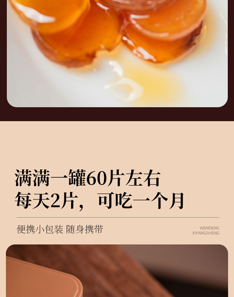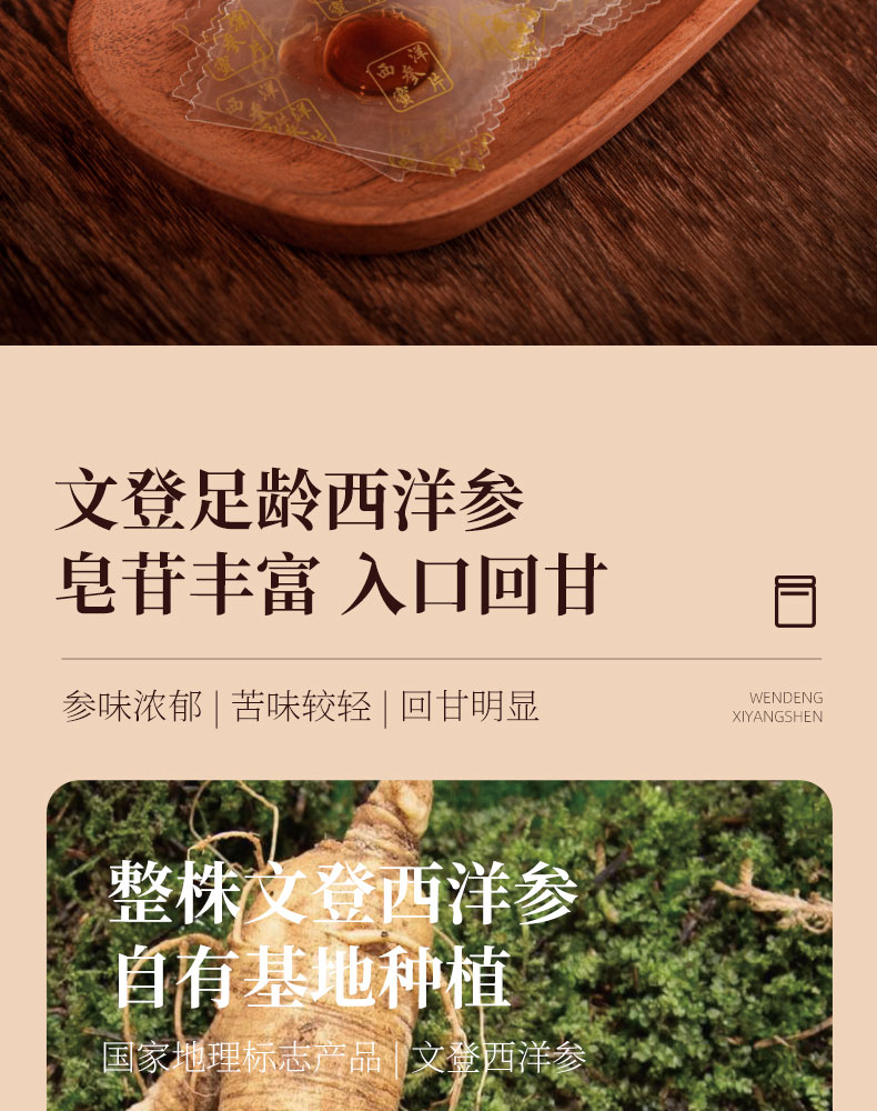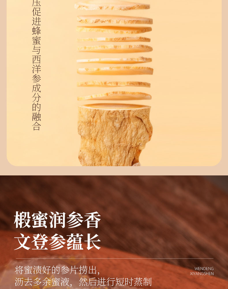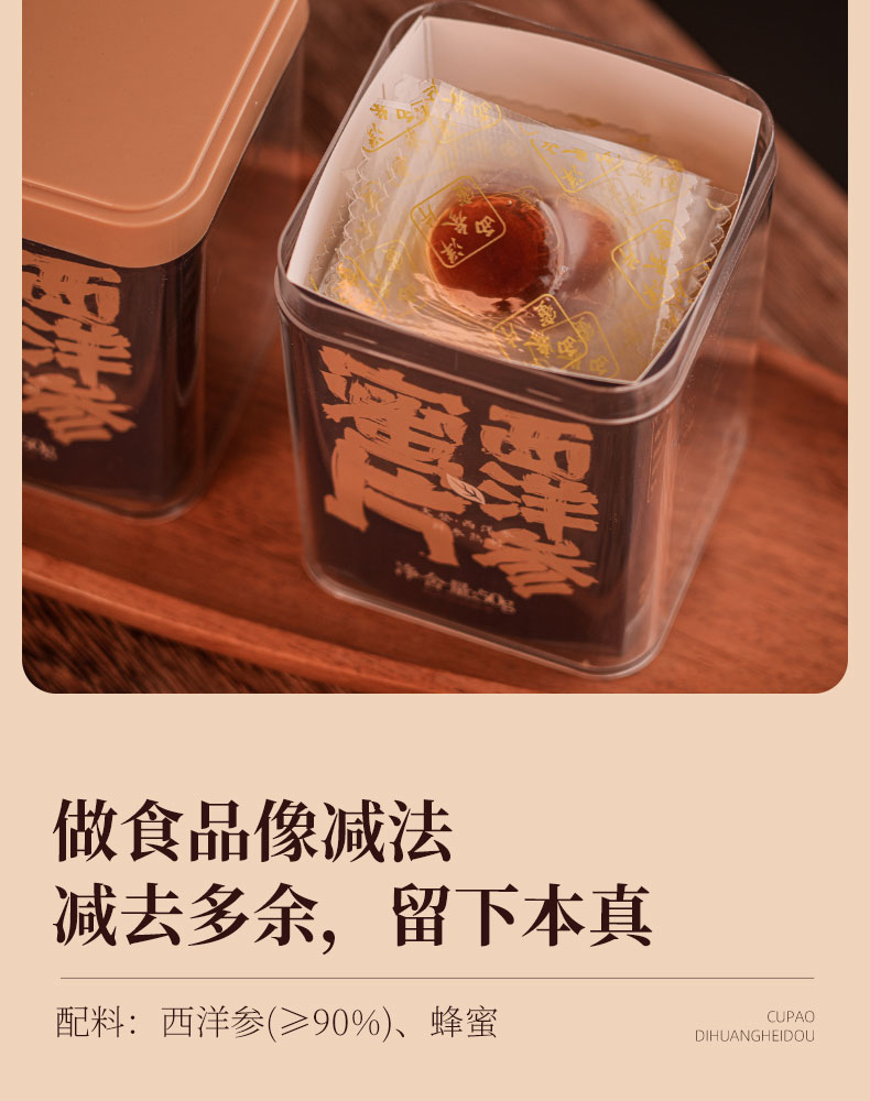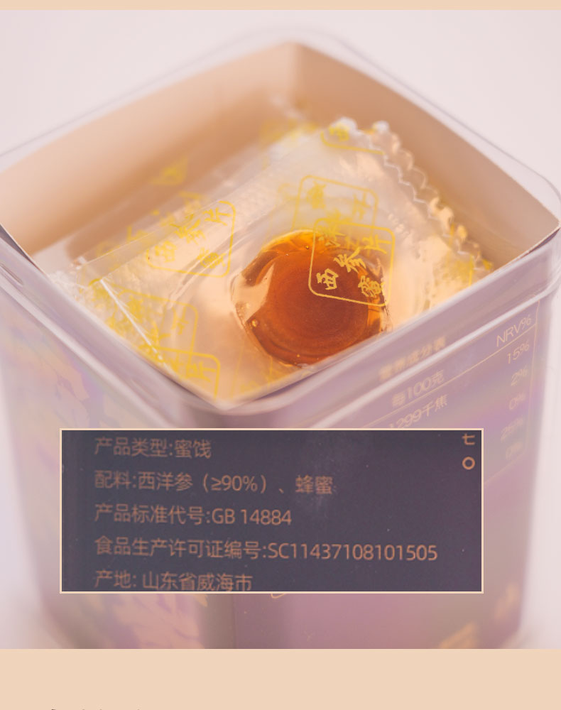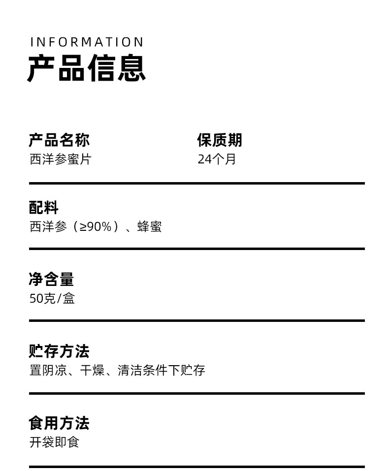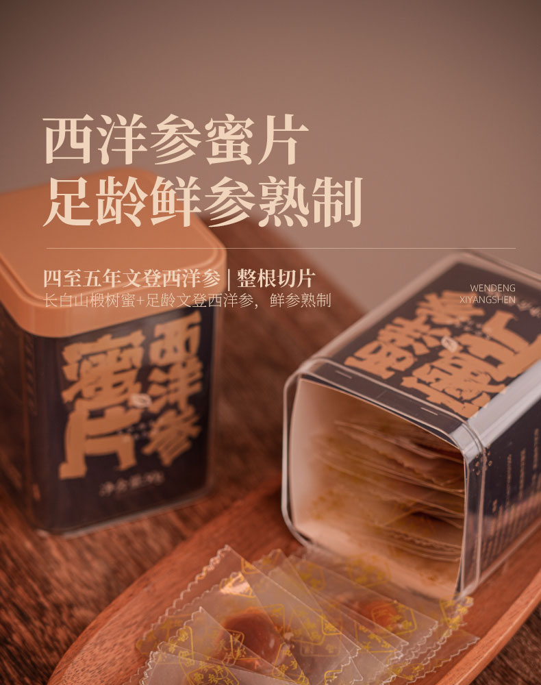 [拍3得4同款]西洋参蜜片 | 文登足龄西洋参 + 长白山椴树蜜蜜渍,鲜参熟制。12道工序,盒装约65片左右随身携带,冲泡甘甜参味浓郁。
