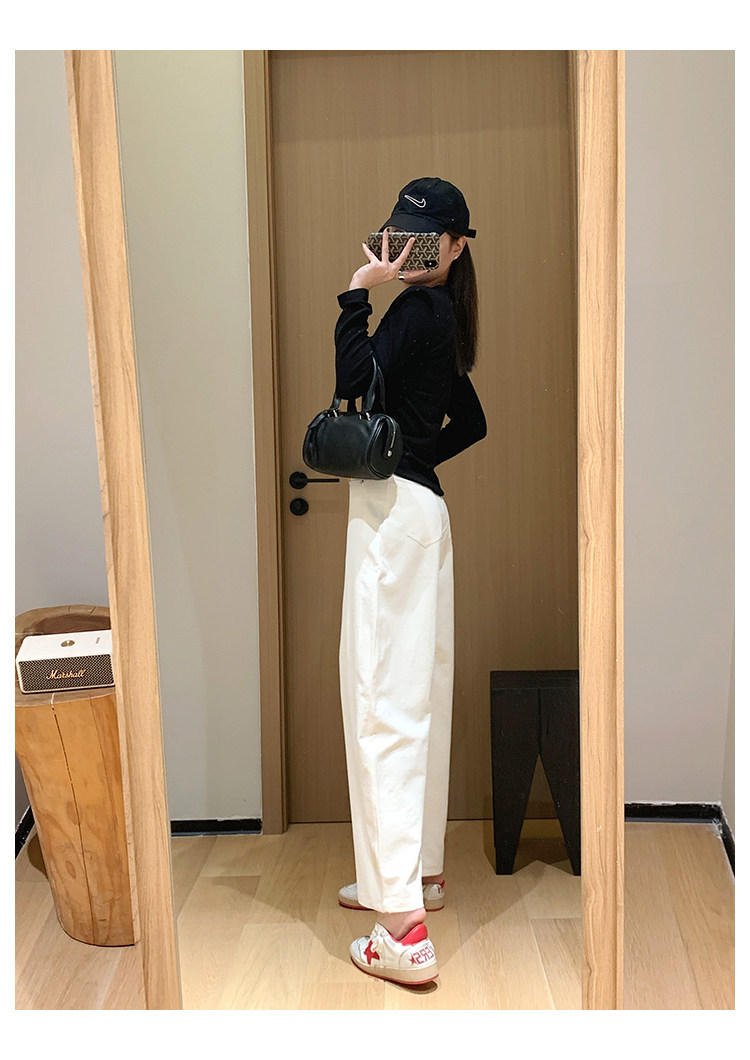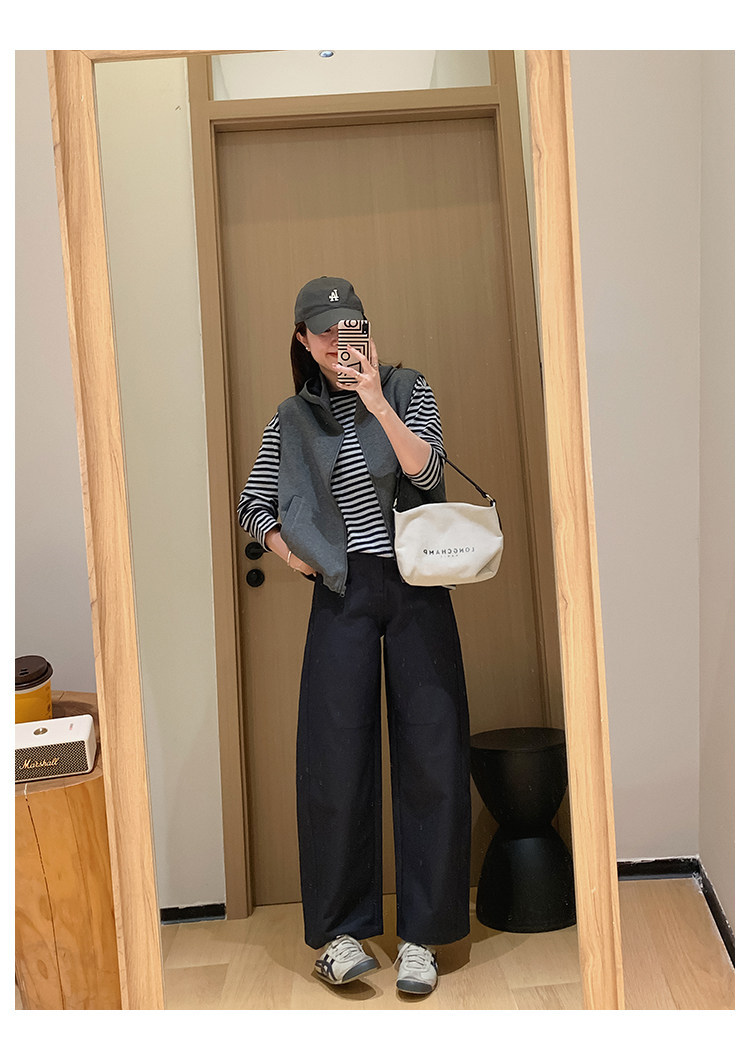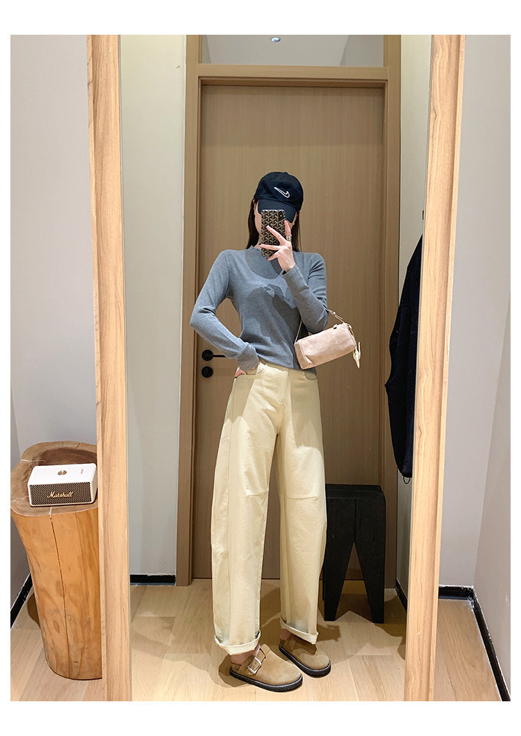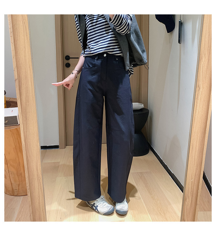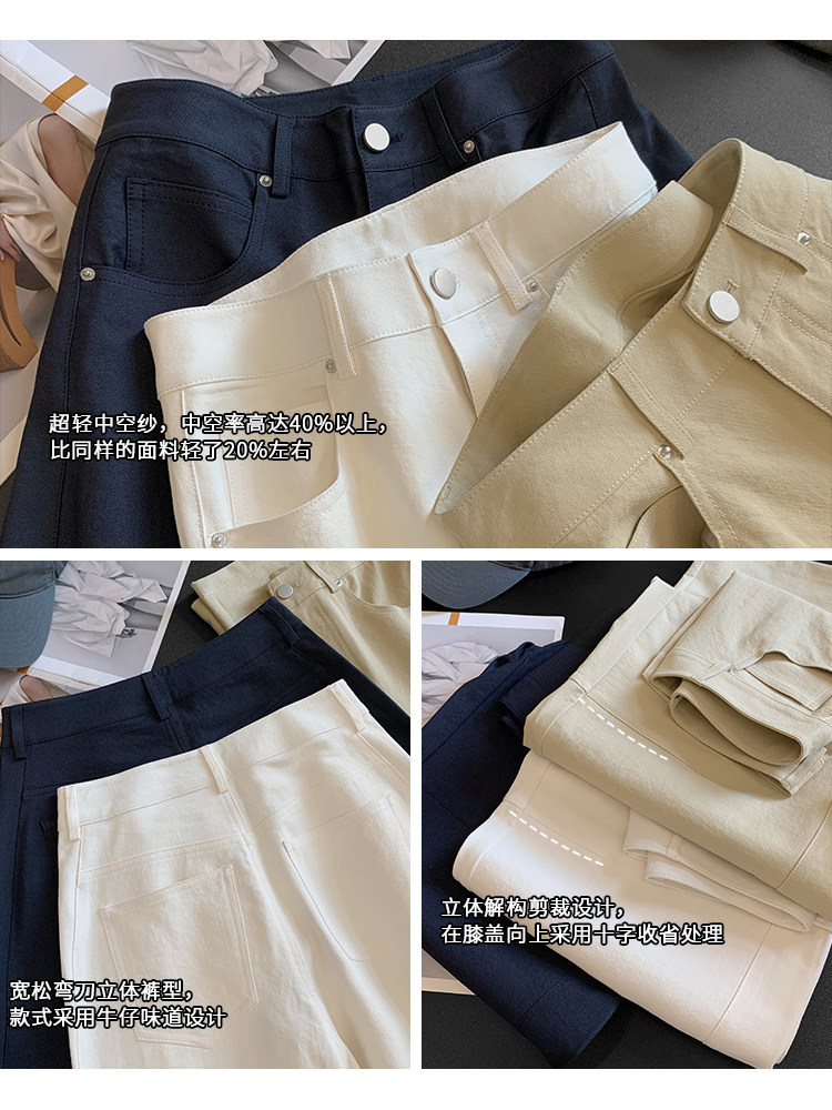 宽松弯刀立体裤型,款式采用牛仔味道设计