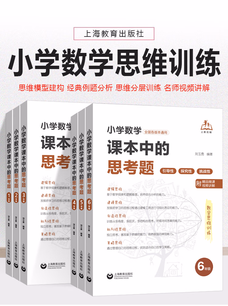 小学数学课本中的思考题一二三年级四五六年级上下微课视频讲解题方法技巧小学数学思维训练专题分层精练全国通用上海教育出版社 小学1~6年级共6本