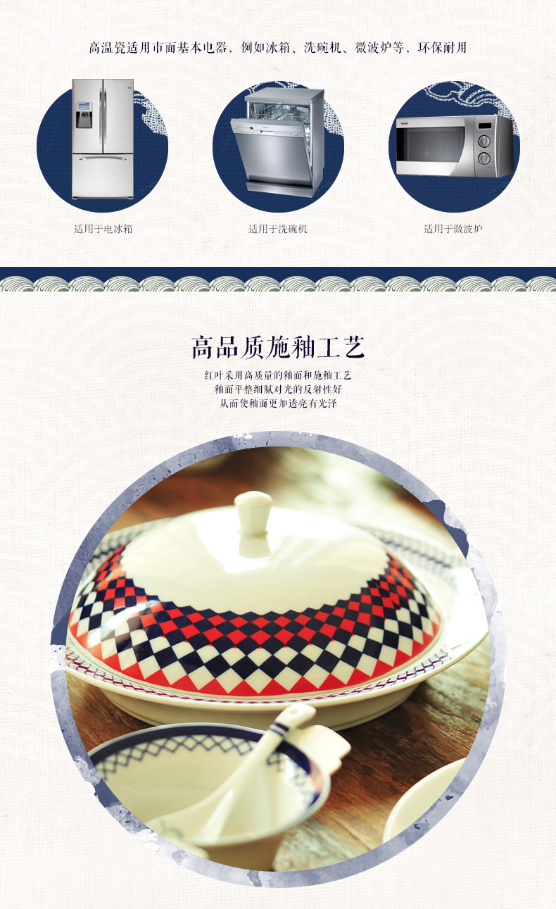 景德镇陶瓷 国瓷红叶 56头心想事成中餐具