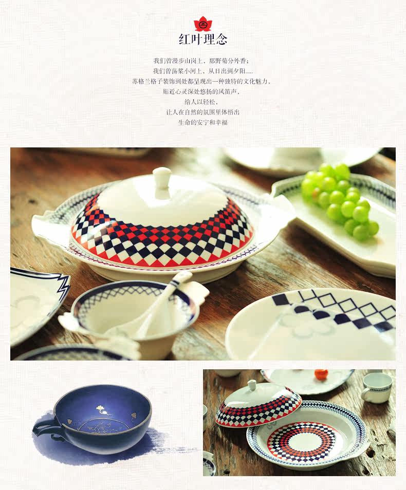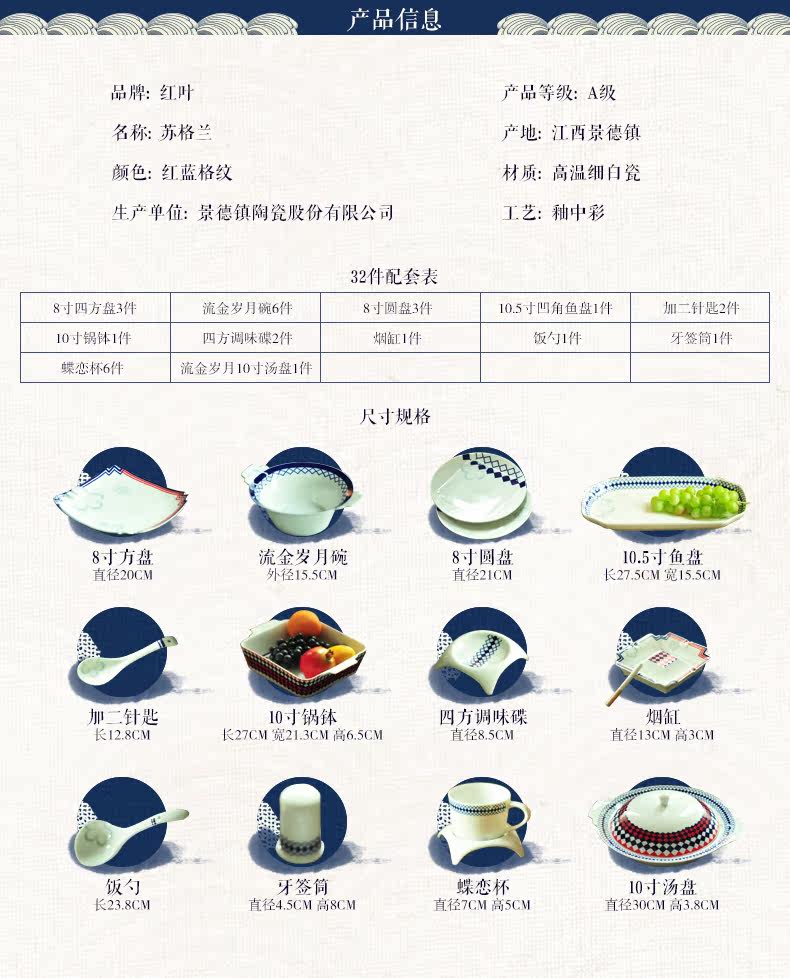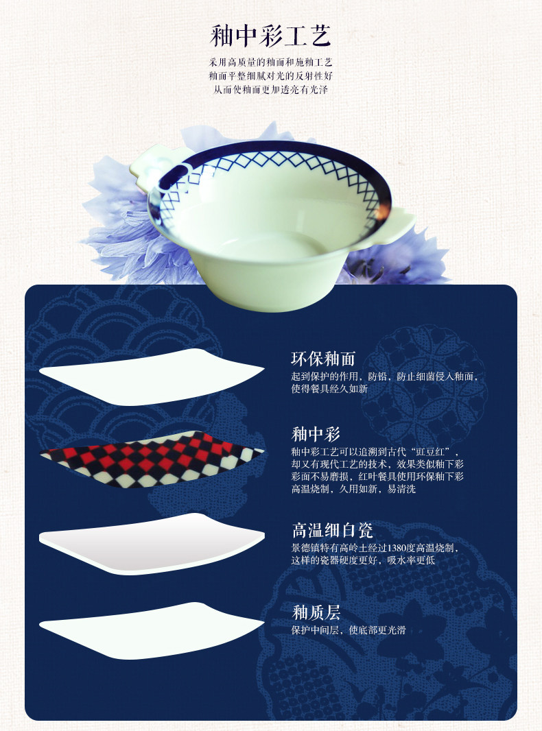 景德镇陶瓷 国瓷红叶 32头苏格蓝调