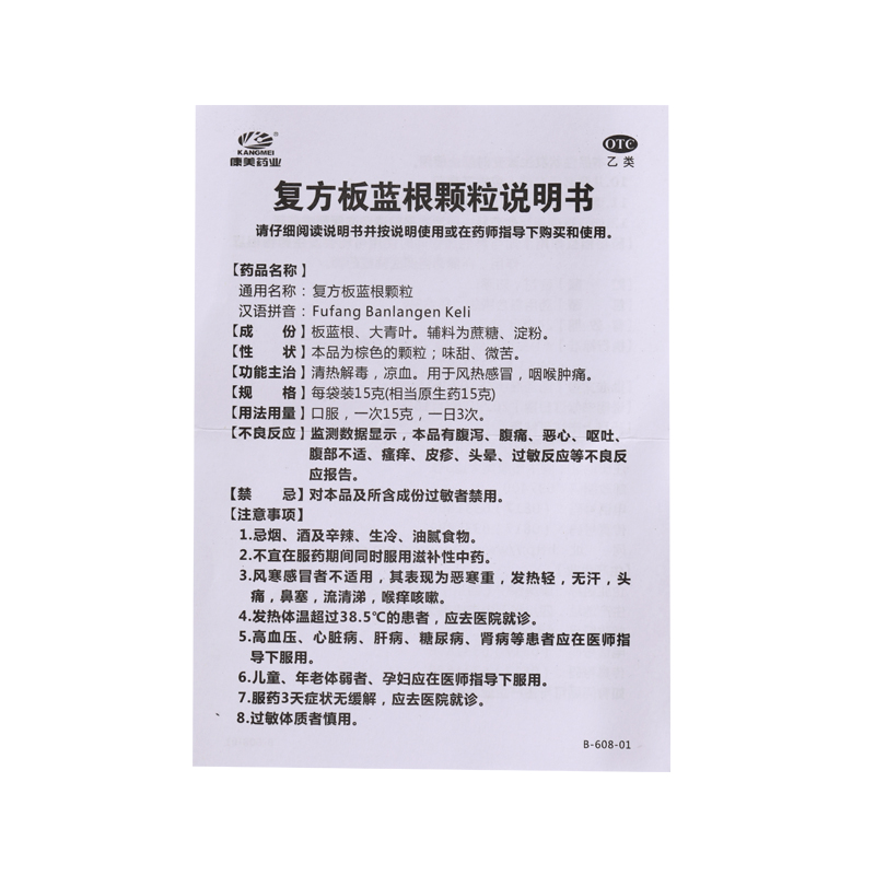康美药业 复方板蓝根颗粒15g*9袋/盒 风热感冒咽喉肿痛清热解毒凉血