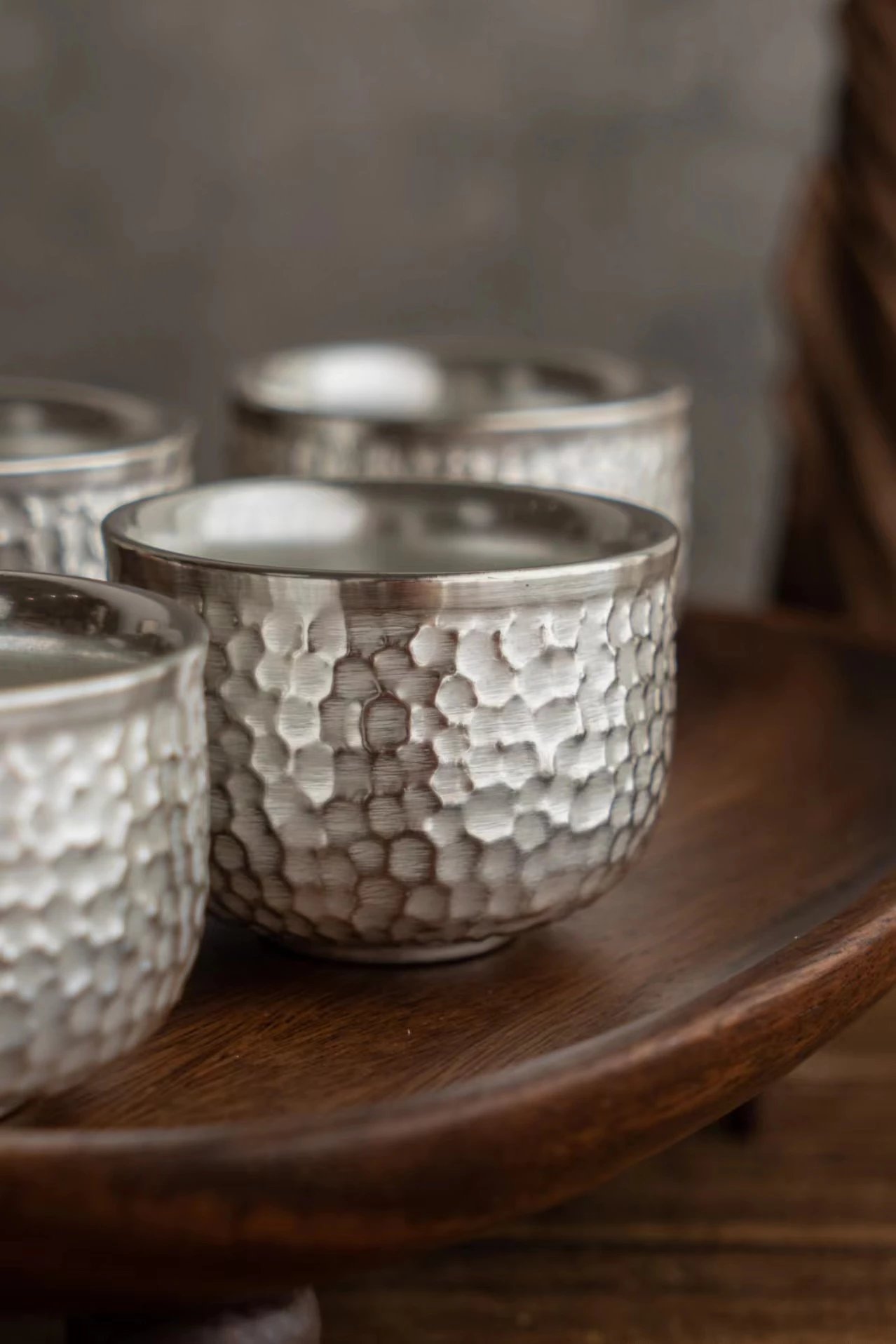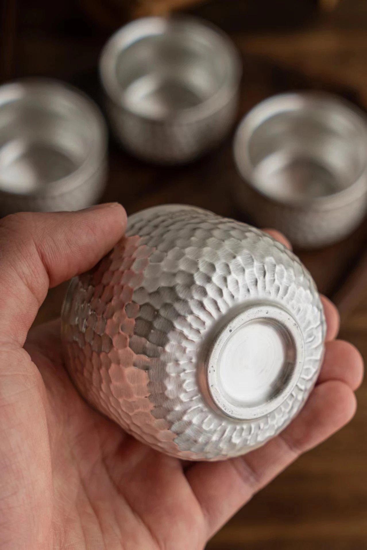 【品名】拾物观心手工锤纹鎏银杯/鎏银西施壶