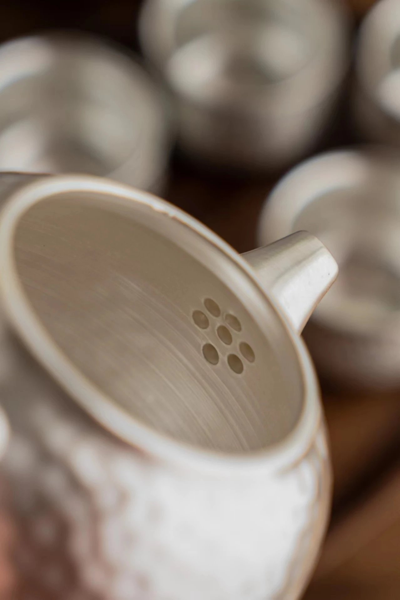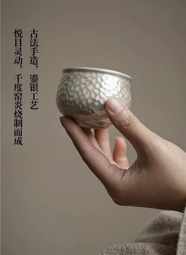 藏家心里的“白月光”【拾物观心手工锤纹鎏银杯/鎏银西施壶】高纯度999千足银(含证书),中国千年古瓷都德化瓷胎,传统手工鎏银工艺(多见于博物馆藏品)观之熠熠生辉。