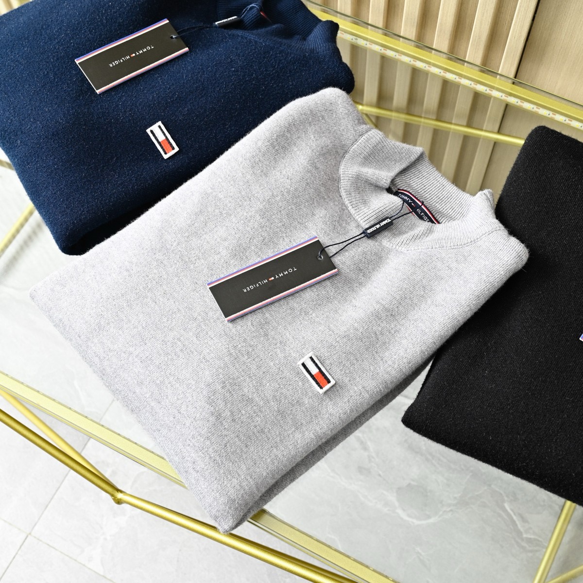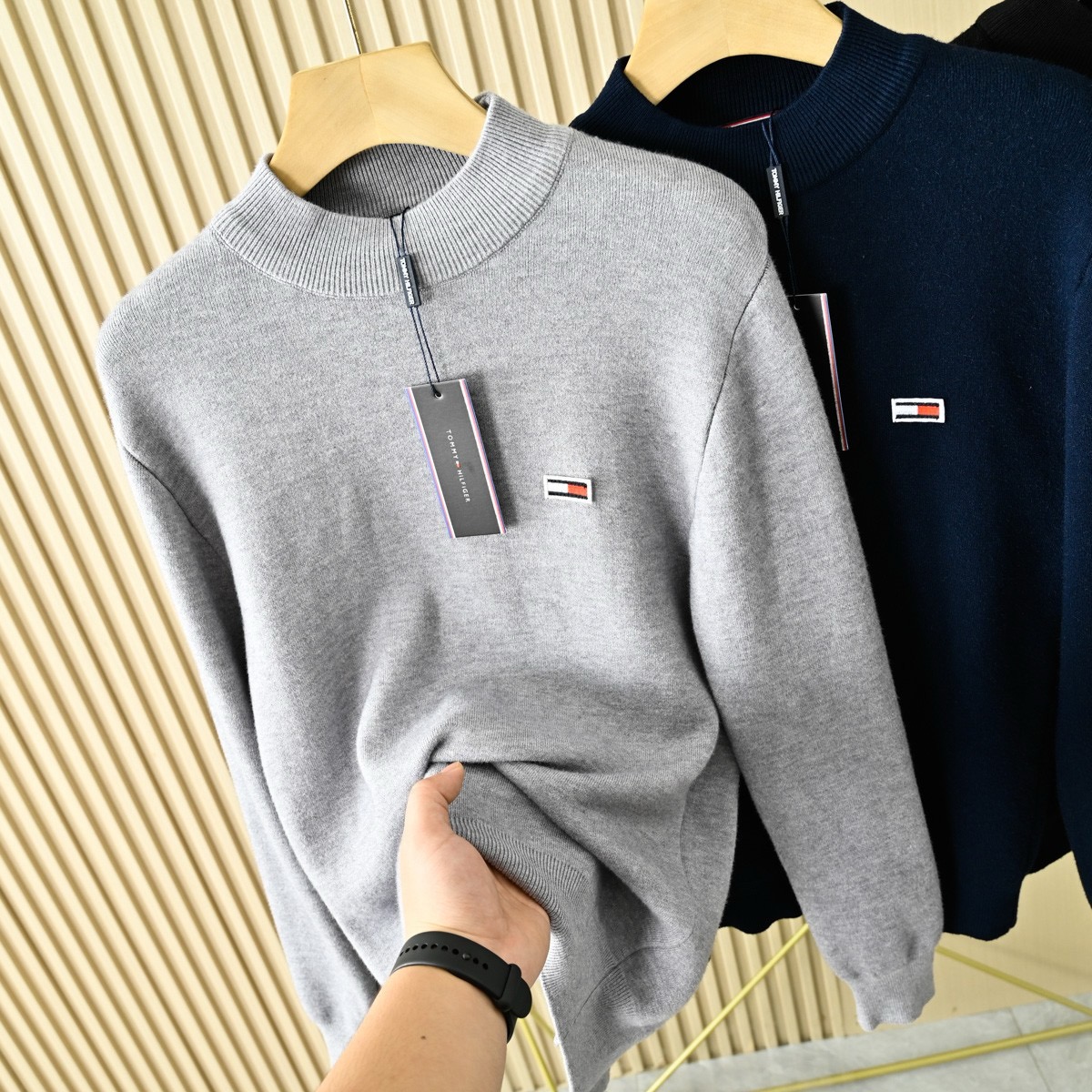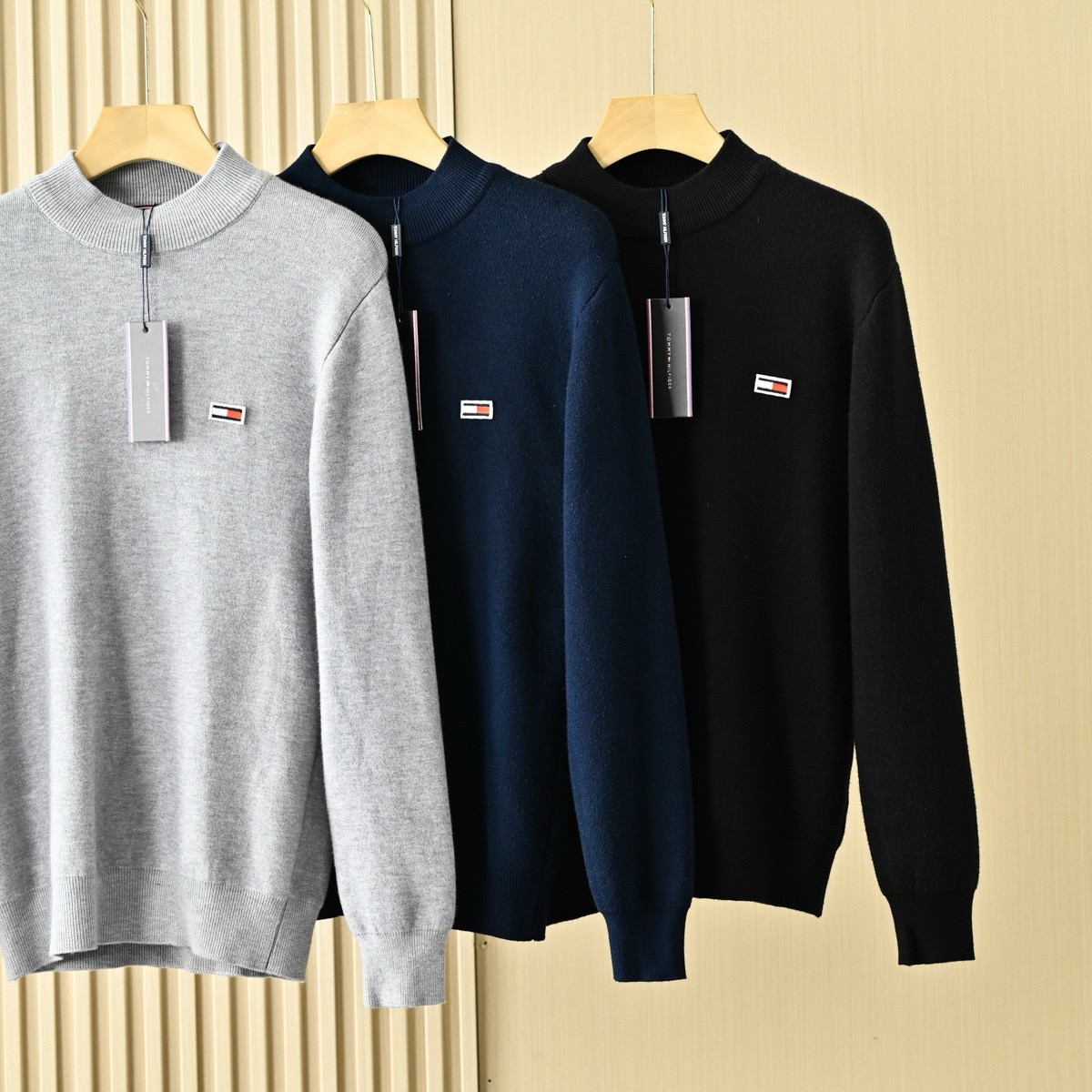 Tommy汤米男士秋冬一体绒半高领针织打底衫毛衣!
