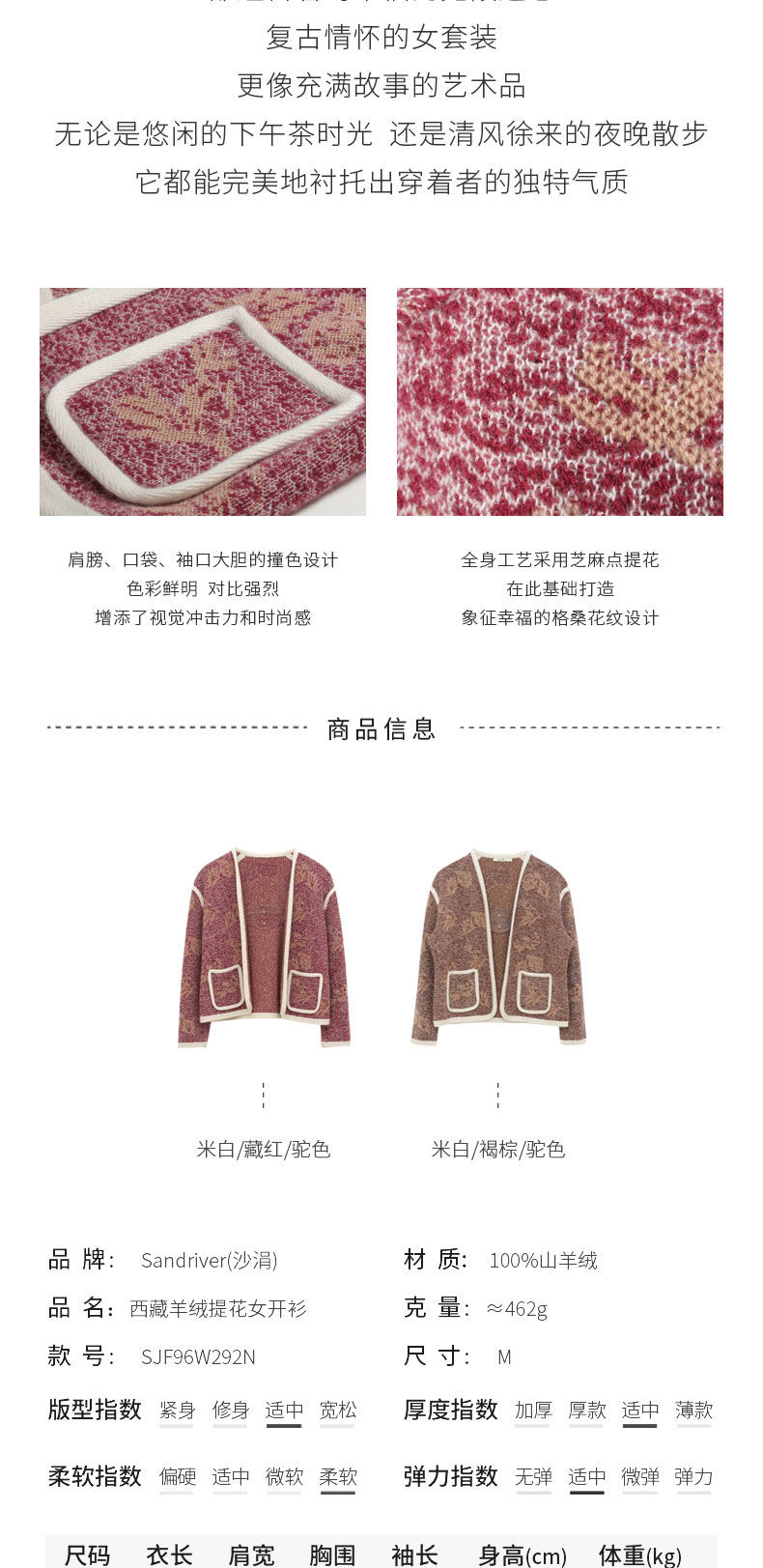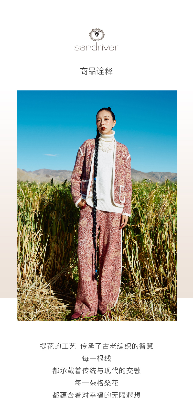 历年在巴黎时装周亮相,享誉世界的艺术羊绒品牌[Sandriver 沙涓]由羊绒布道者郭秀玲女士创立。阿拉善自有牧场纯种羔羊绒,日本国宝设计师小筱顺子,上海自有基地精工细作。承载羊绒情怀,坚持匠人品质。