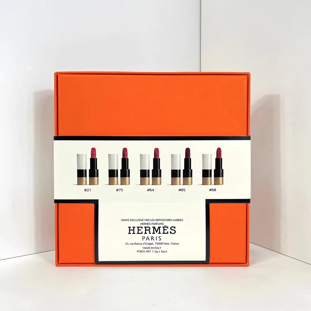 ( 爱马仕口红小样5件套 ) 配礼袋❗爱马仕套盒!色号:21-75-64-68-85爱马仕新春限定礼盒五件套小样现货!爱马仕口红都是圆柱体,盖子都是清一色白色,质地看膏体切面就阔怡啦!!哑光质地是尖头~緞光质地是圆头💓灵感来源于爱马仕包包气质… 真:口红中爱马仕