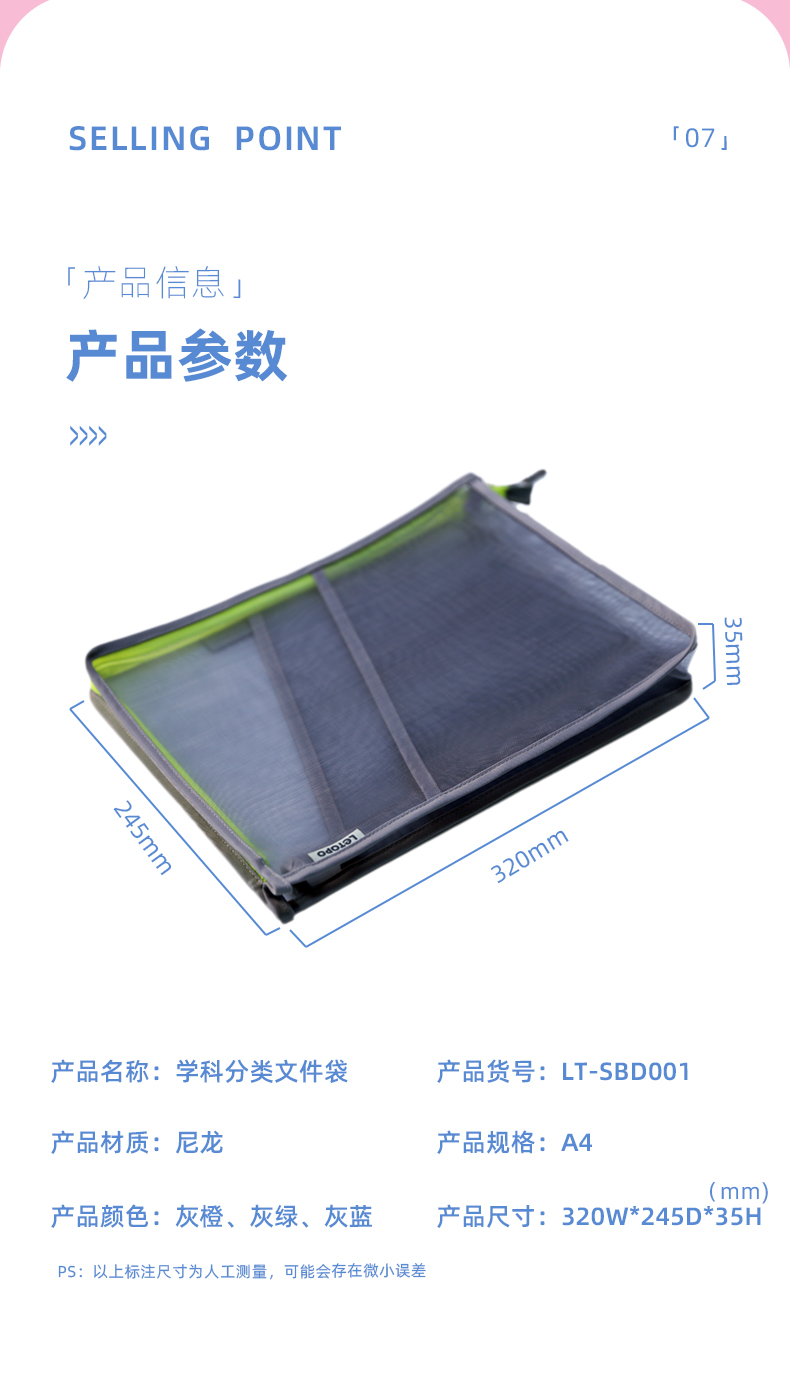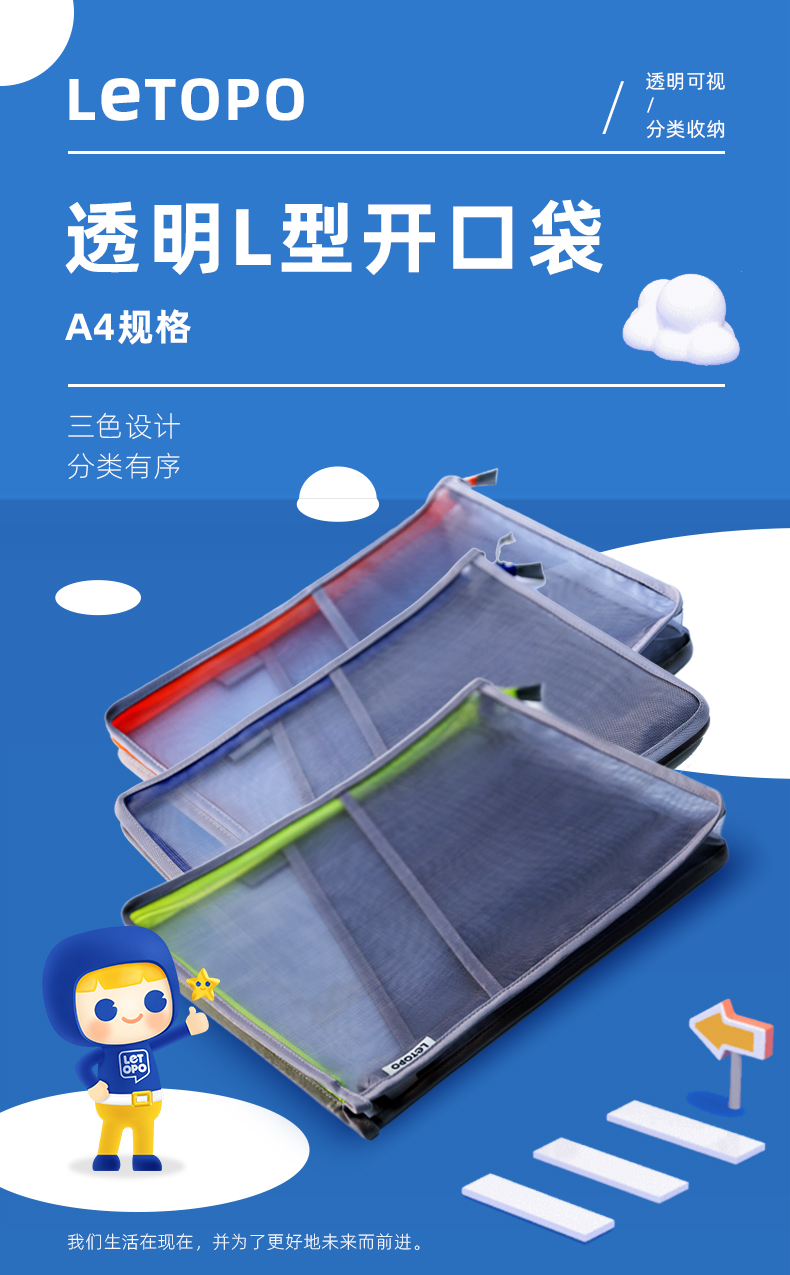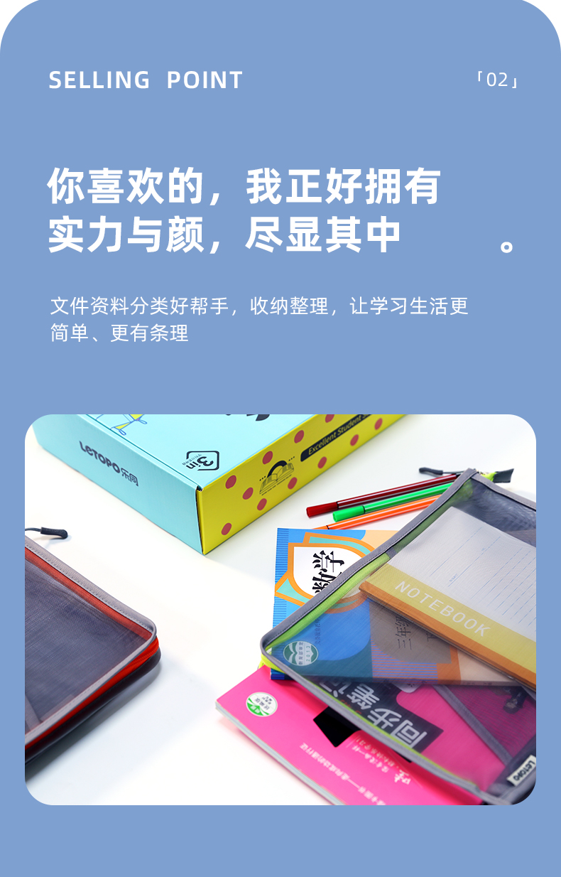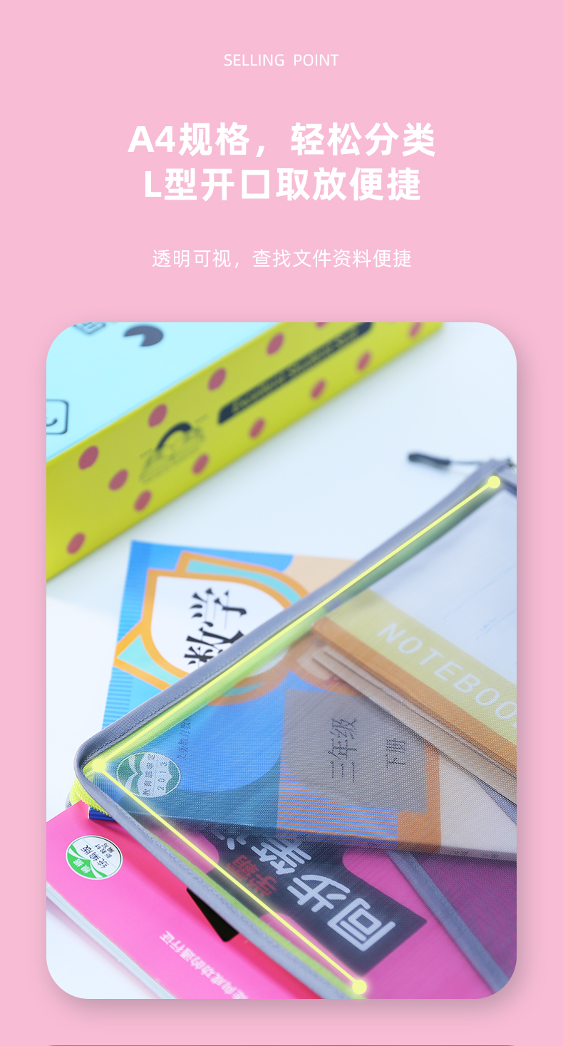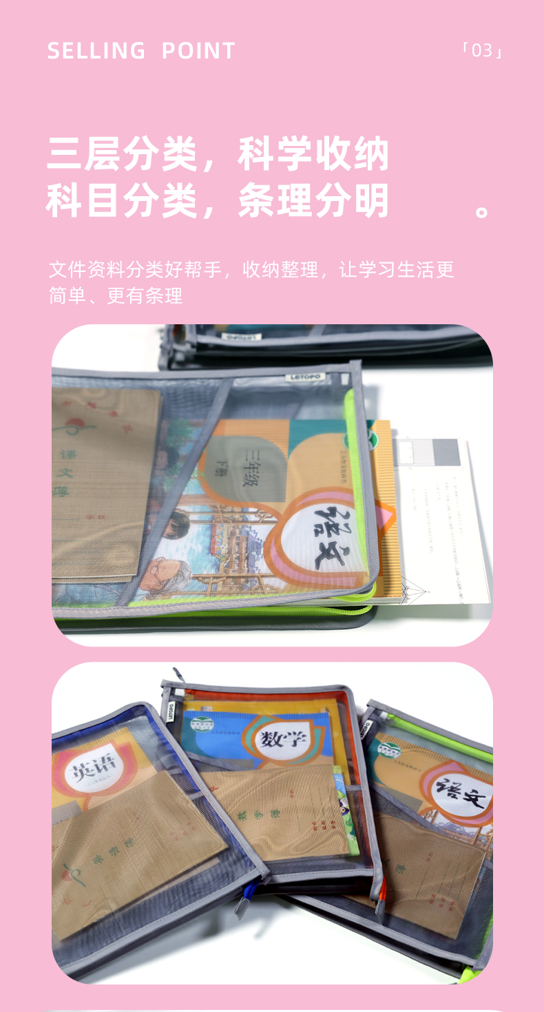 乐同学科分类书本袋3个装 补习袋小学生课本试卷收纳文件袋拉链式