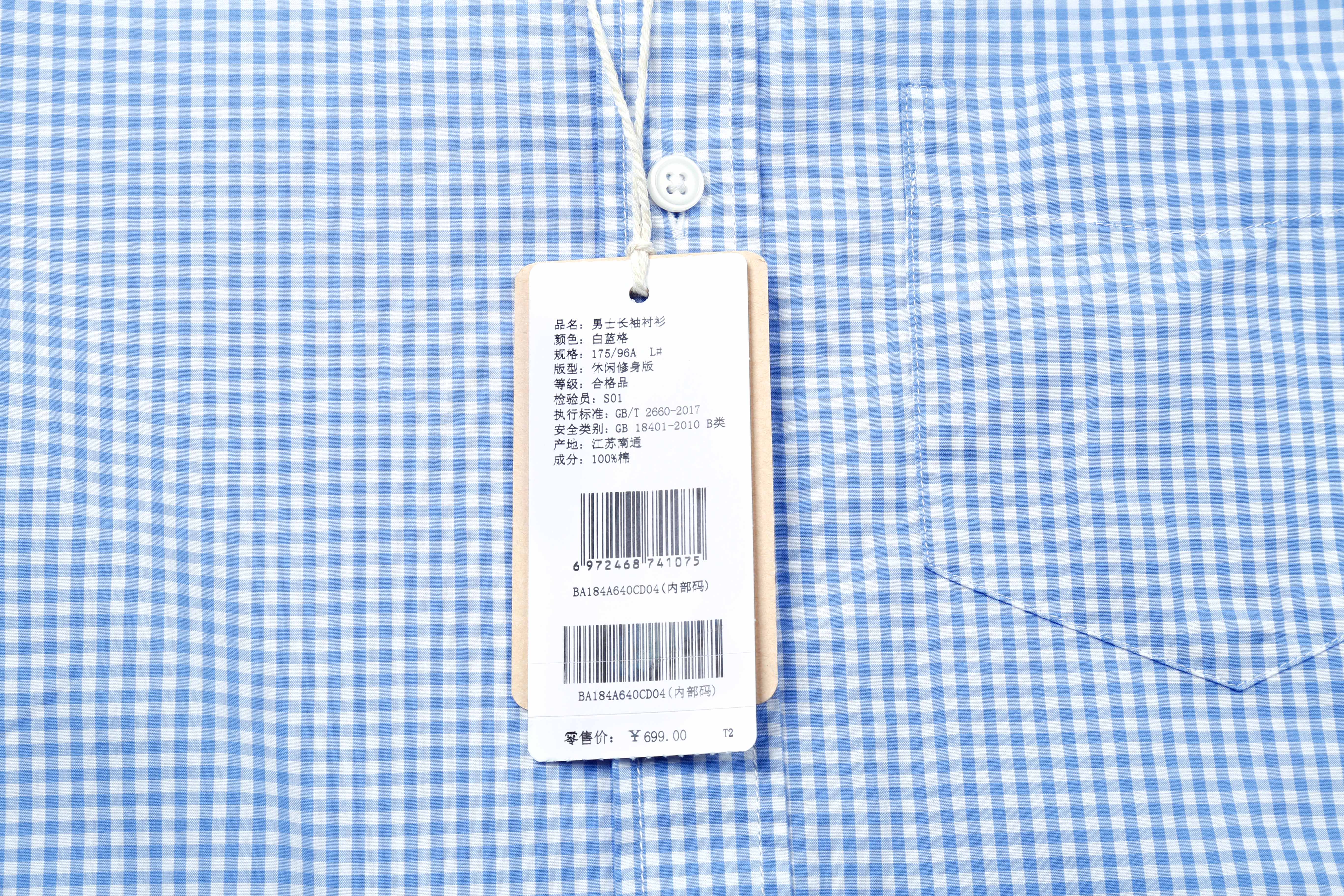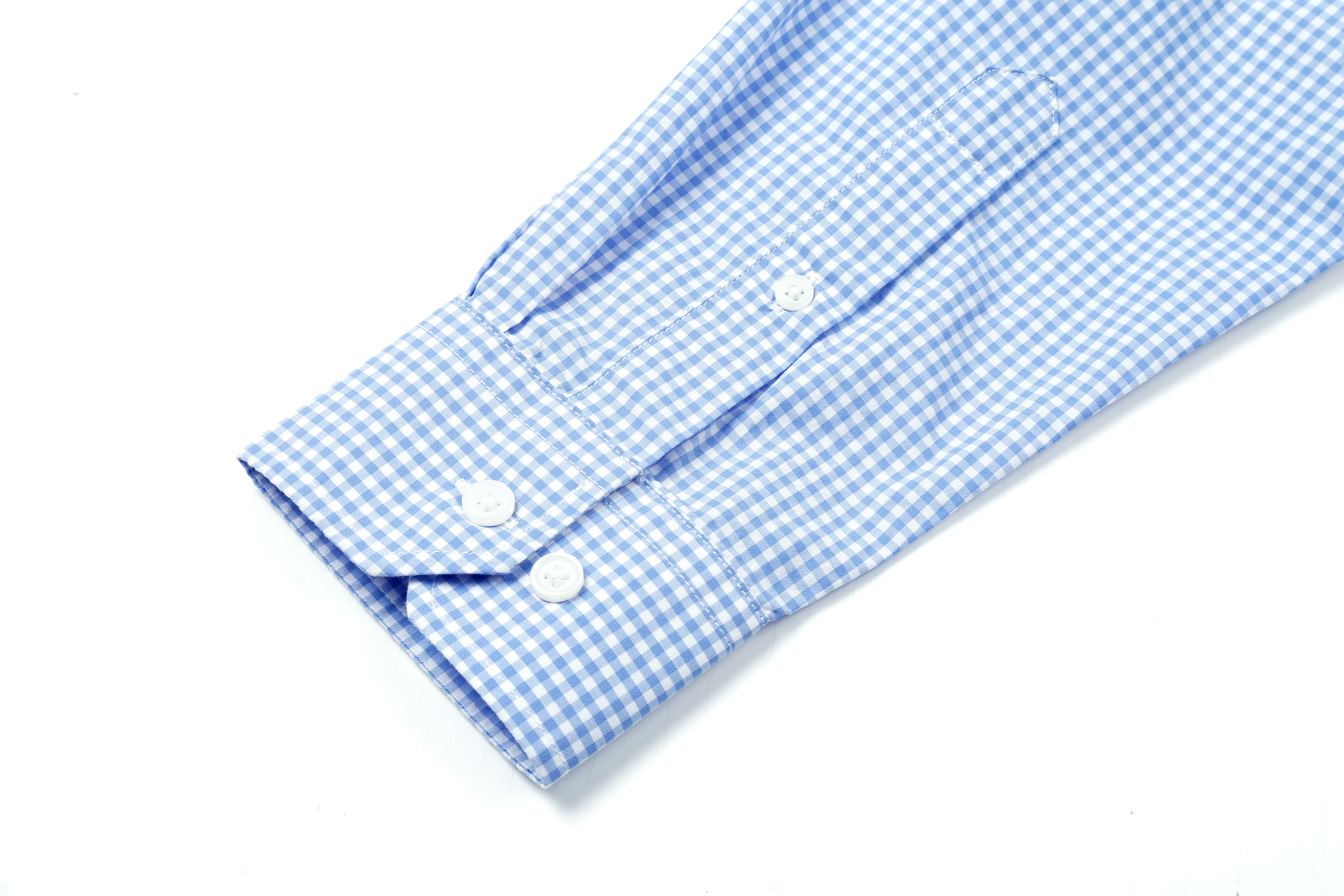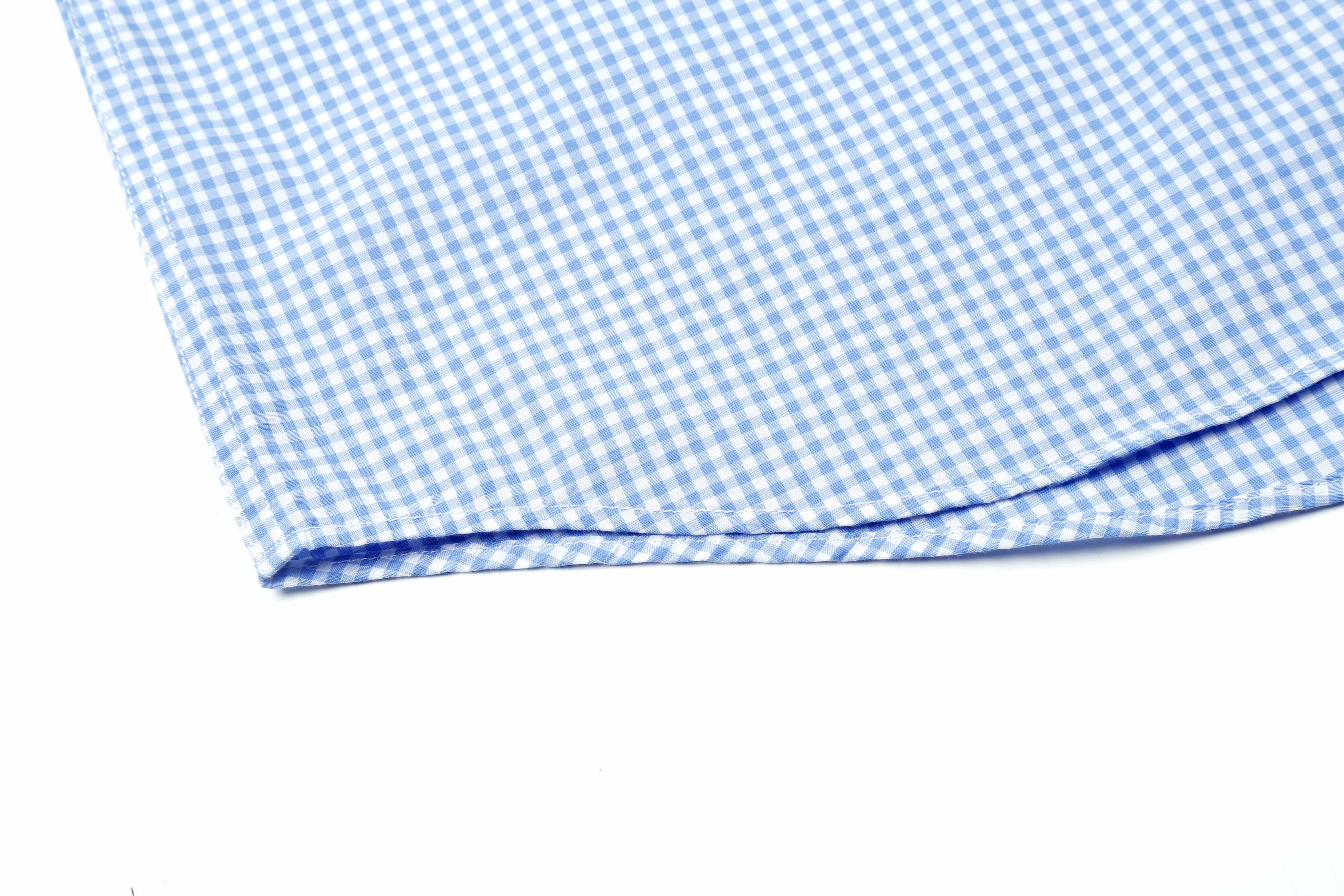 占姆士男士100%纯棉休闲商务细格蓝色长袖衬衫
