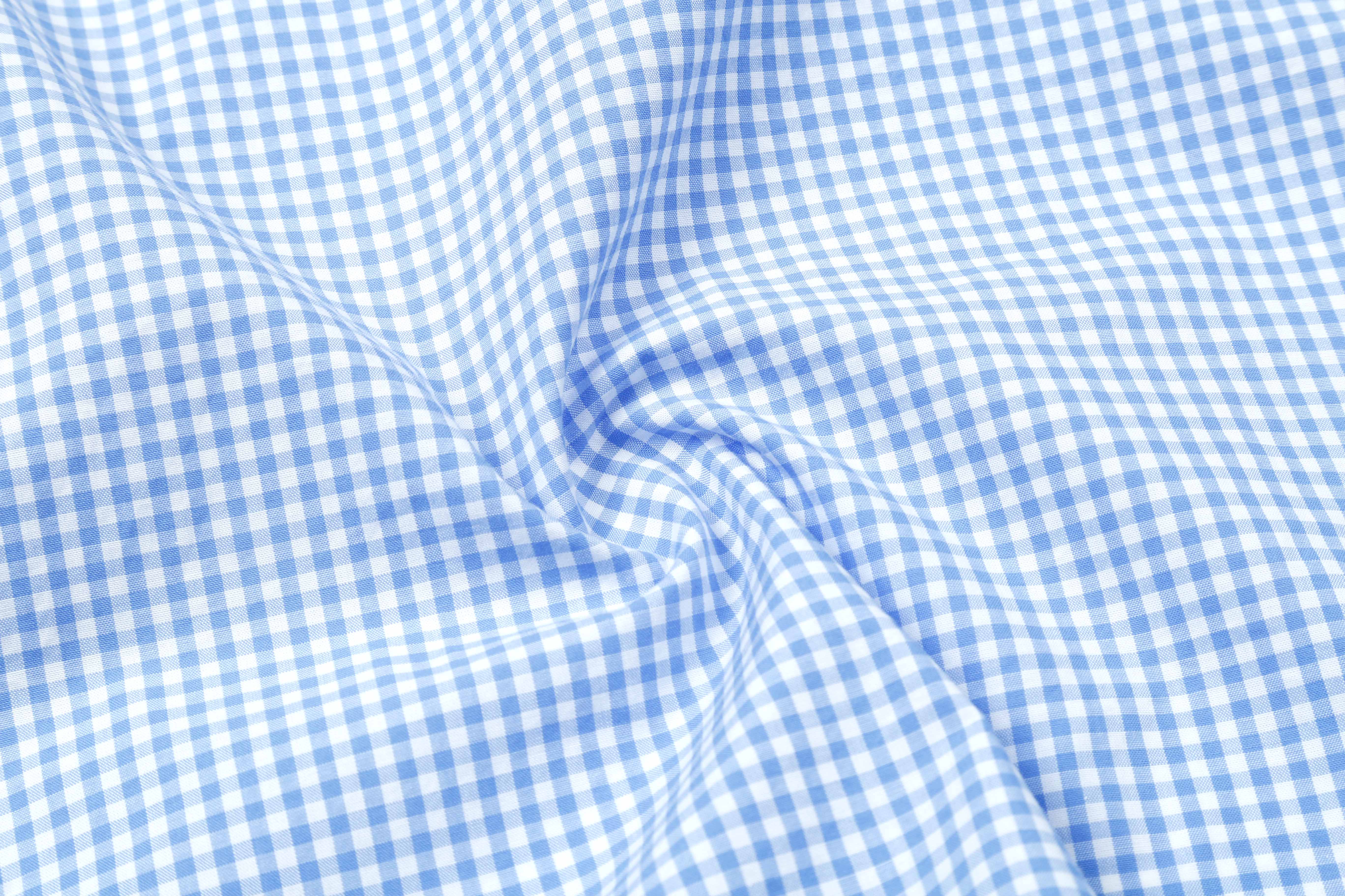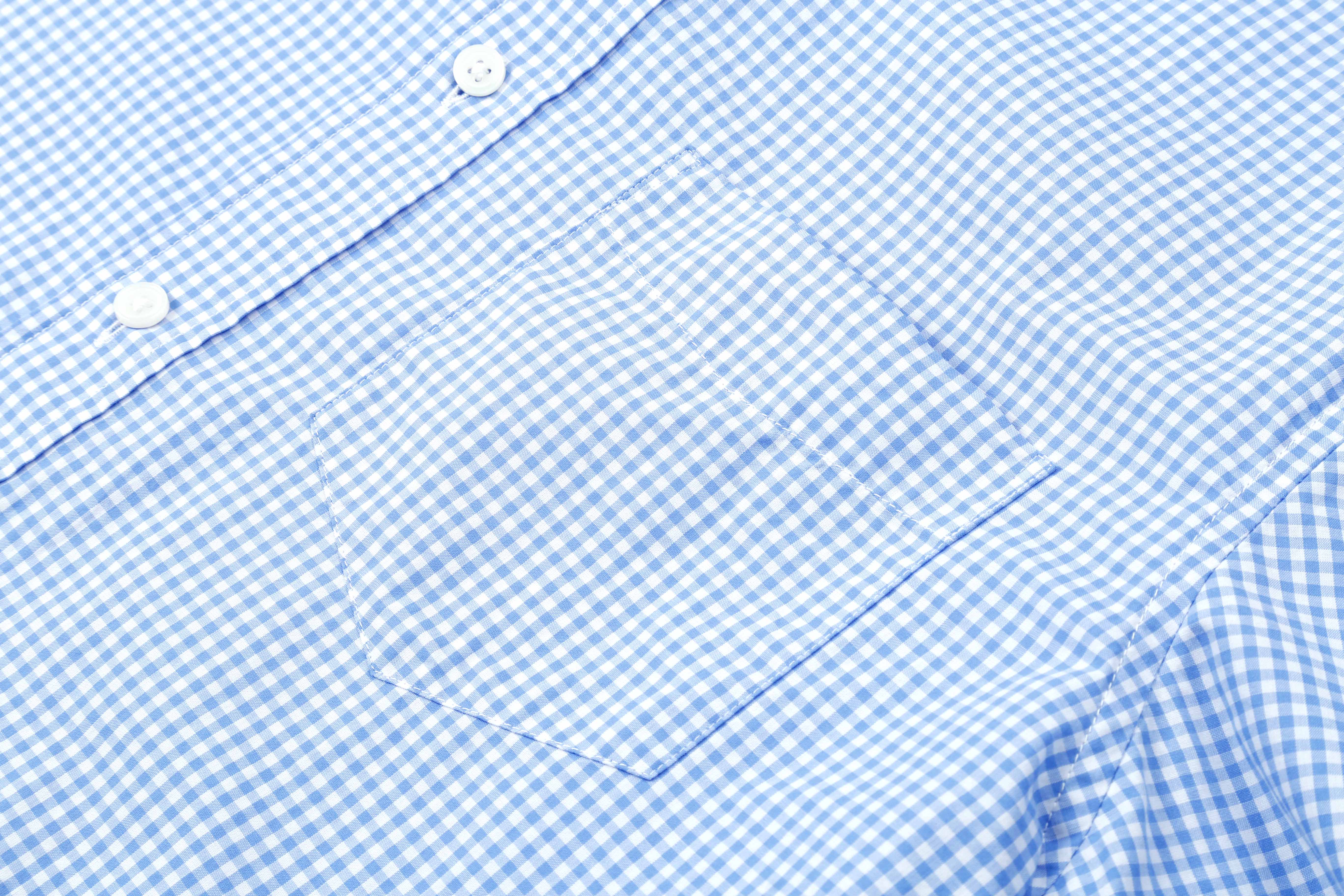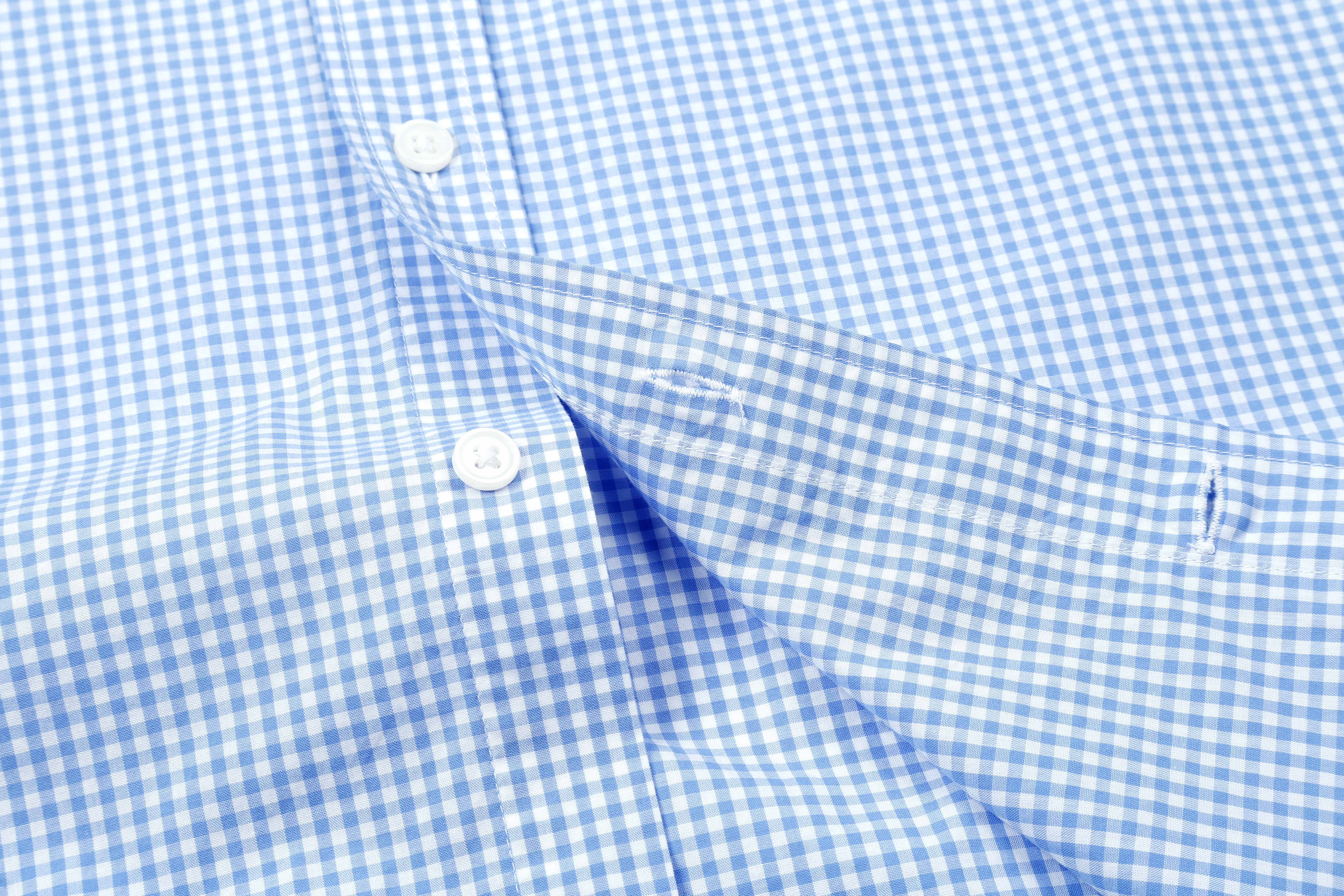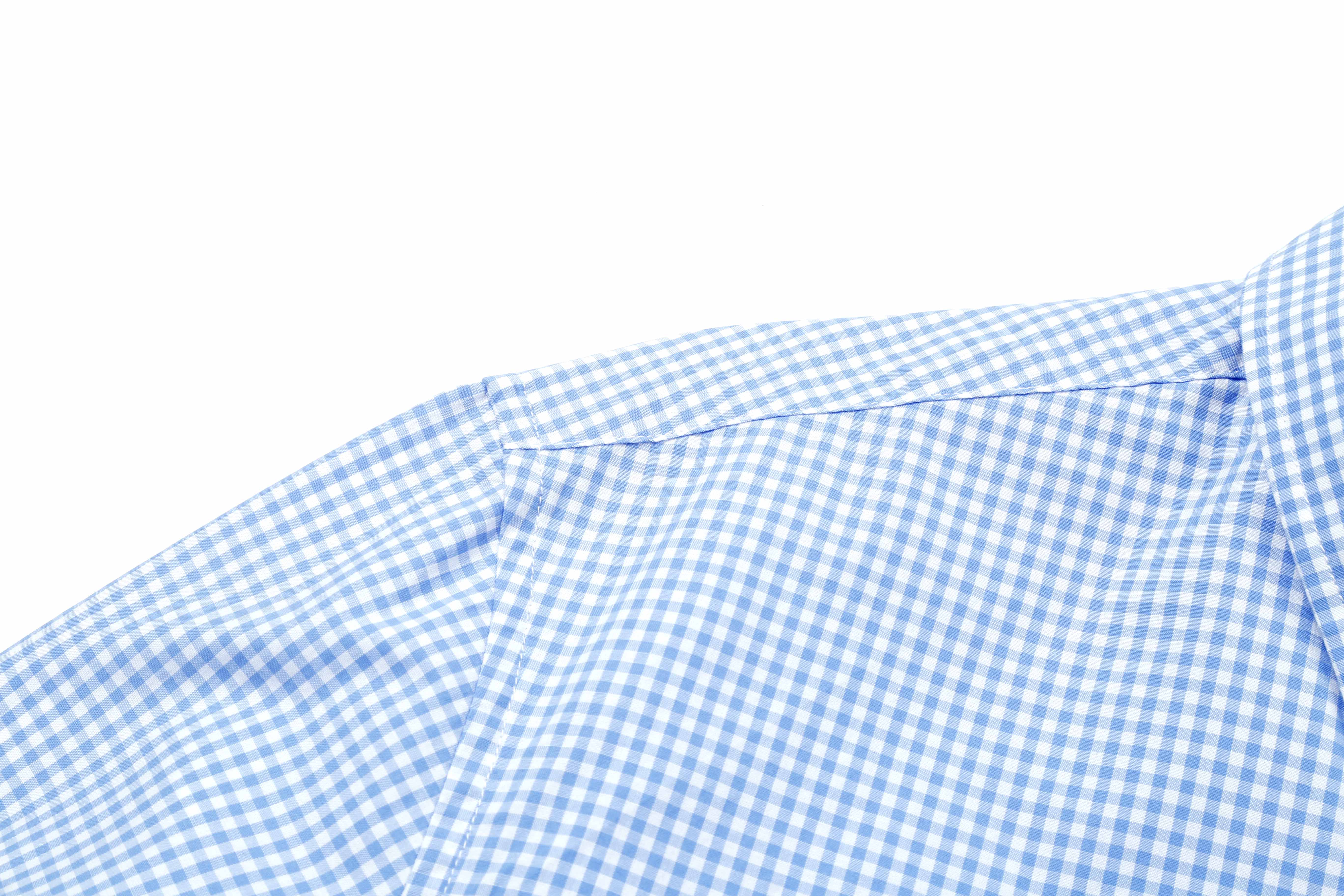 占姆士男士100%纯棉休闲商务细格蓝色长袖衬衫