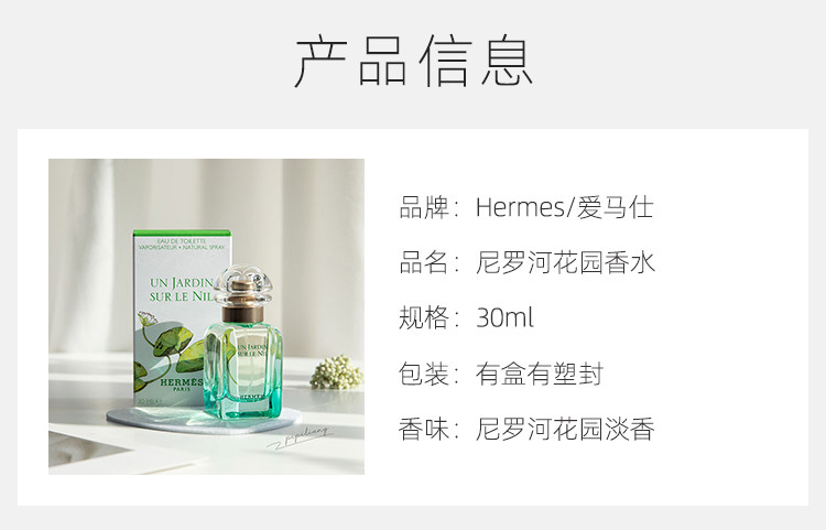 现货▲Hermes爱马仕尼罗河花园香水 EDT淡香型 30ml/50ml