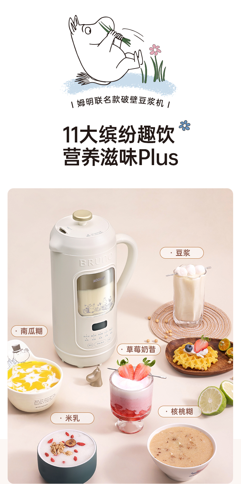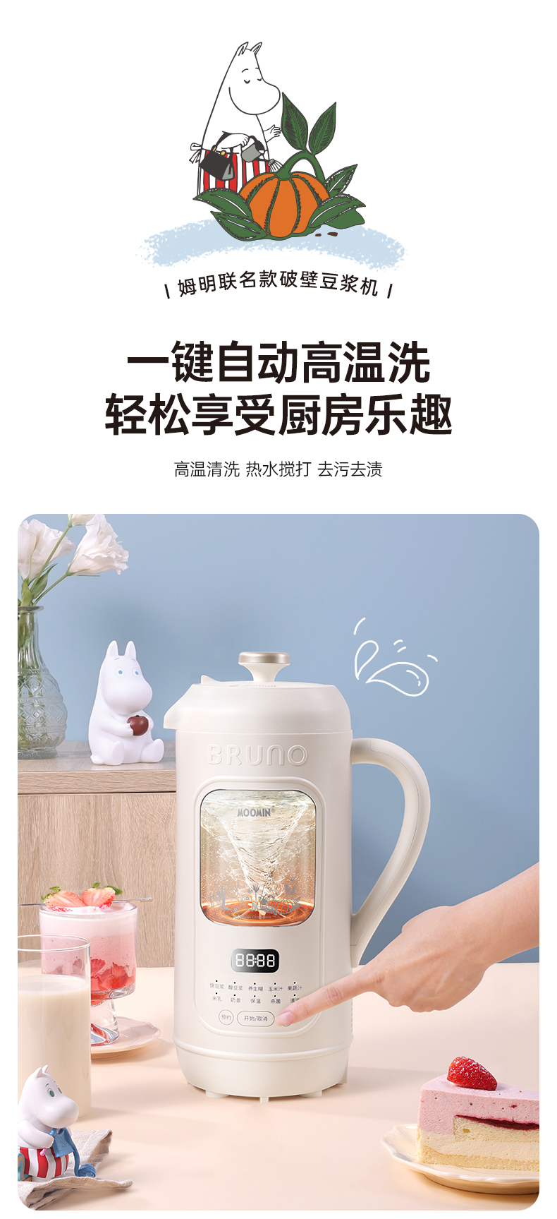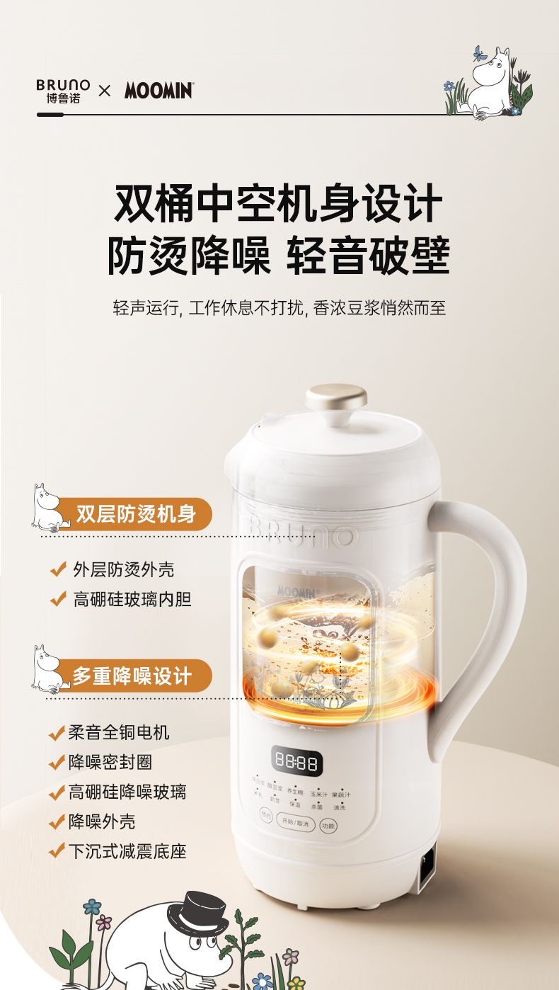 BRUNO破壁机家用小型可视豆浆机全自动低噪音(姆明IP款)BZK-DJ05-MOOMIN