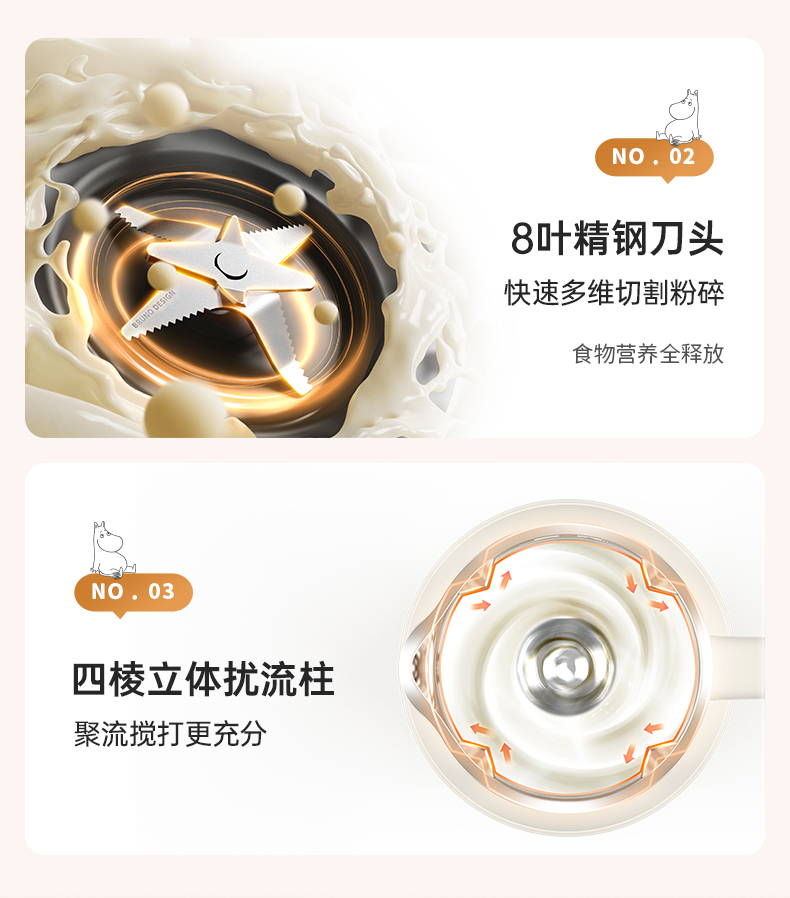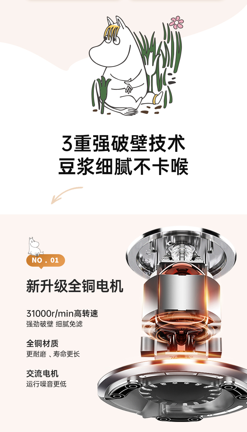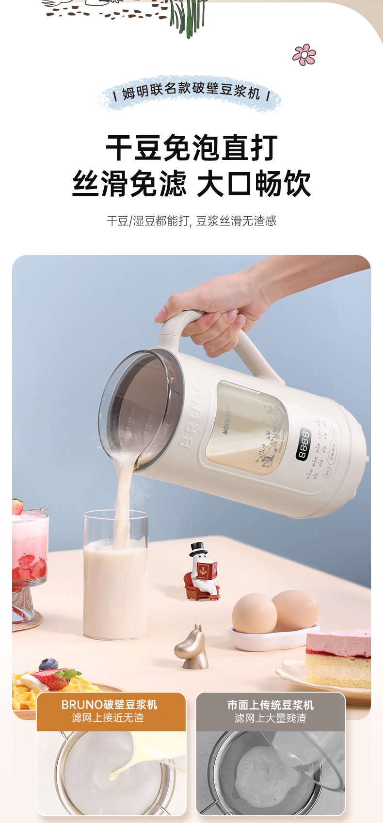 BRUNO破壁机家用小型可视豆浆机全自动低噪音(姆明IP款)BZK-DJ05-MOOMIN