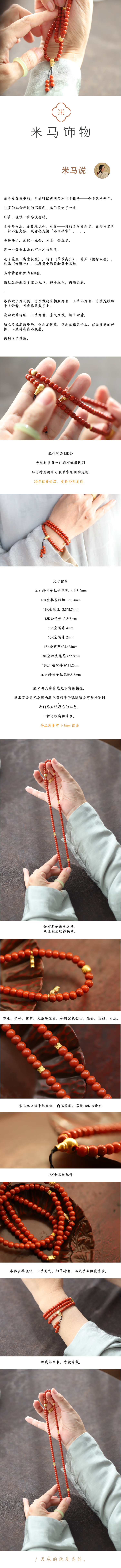 米马饰物 南红九口料柿子红老型珠足金18K配件108子手钏 本命年
