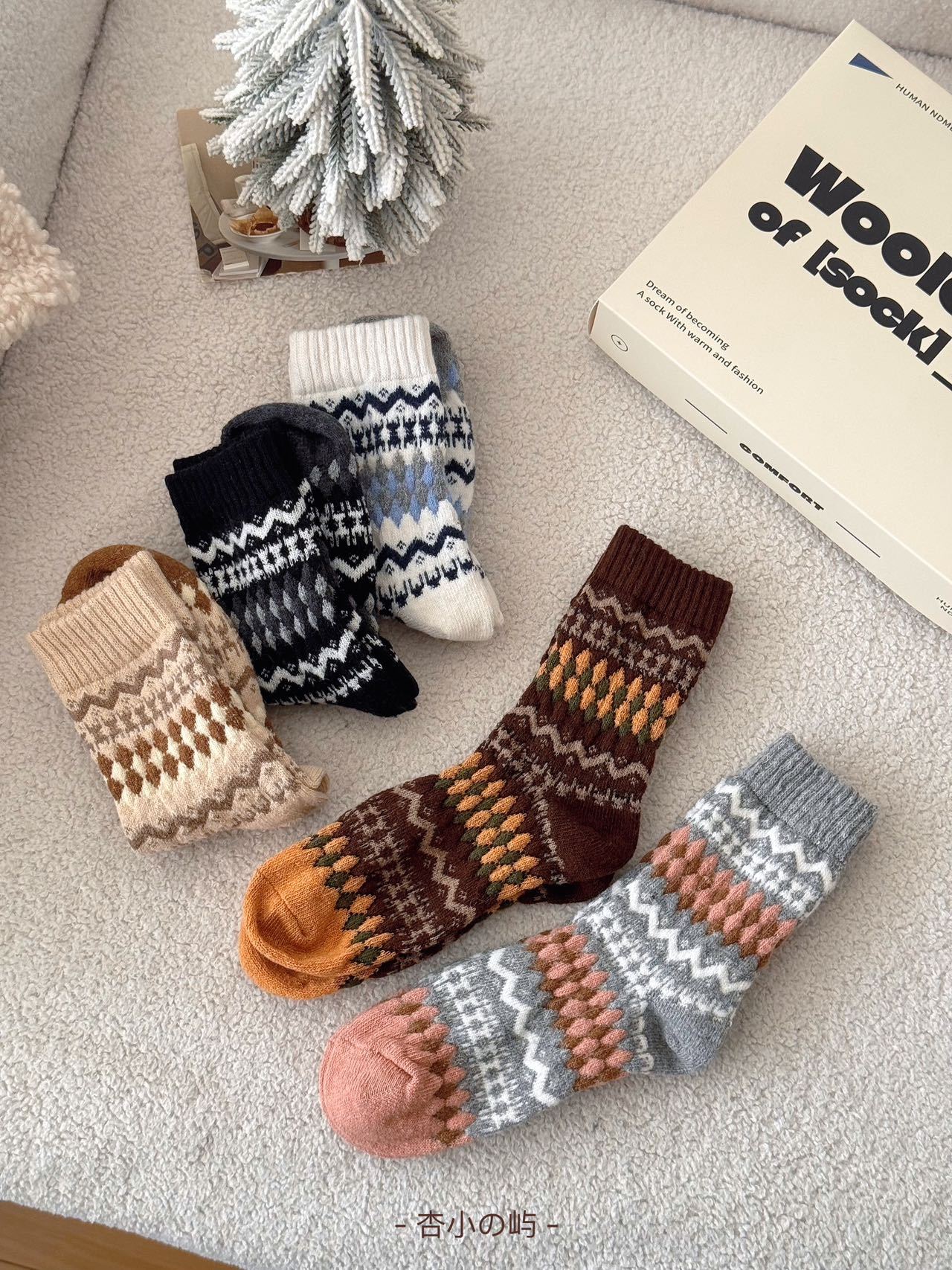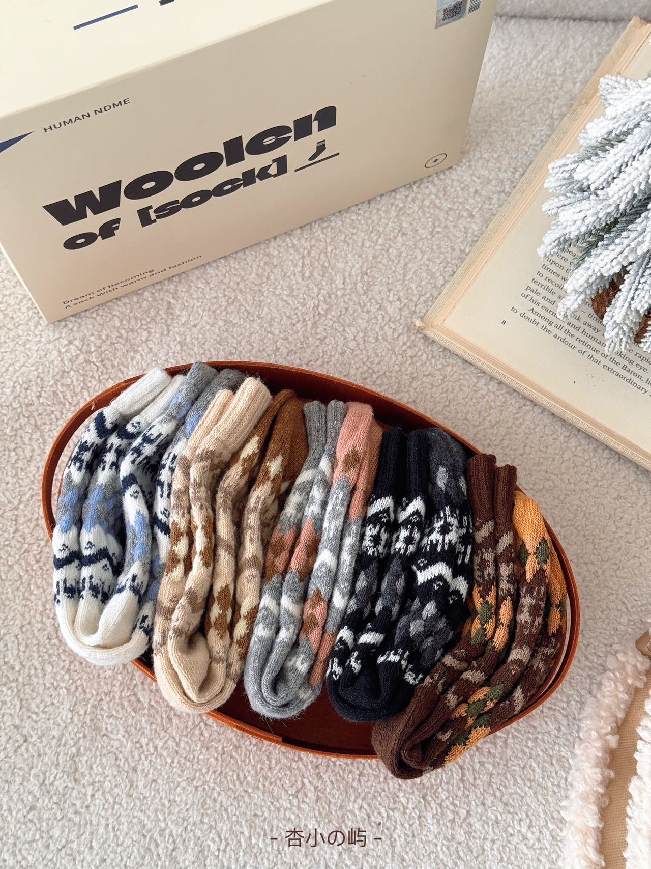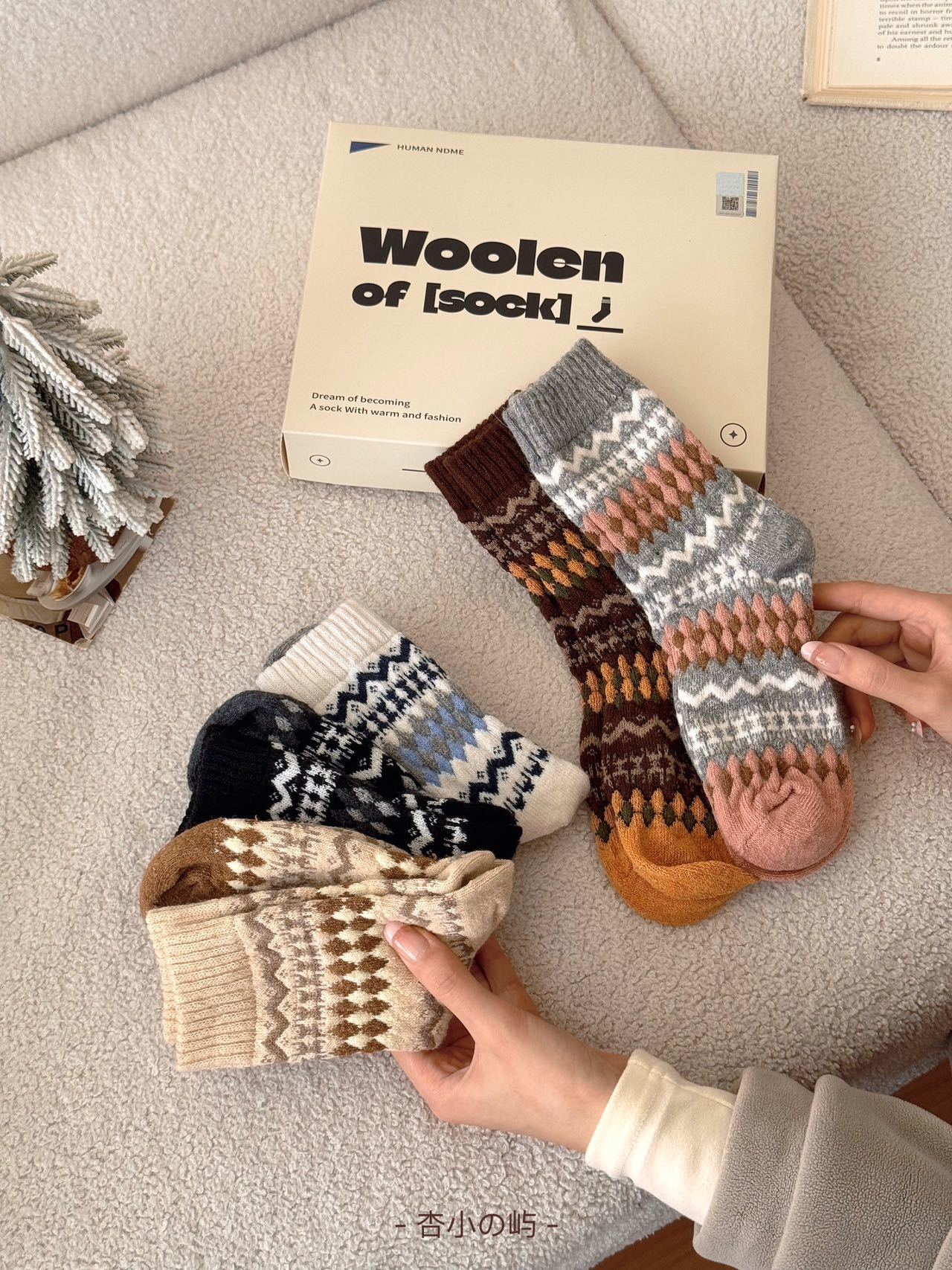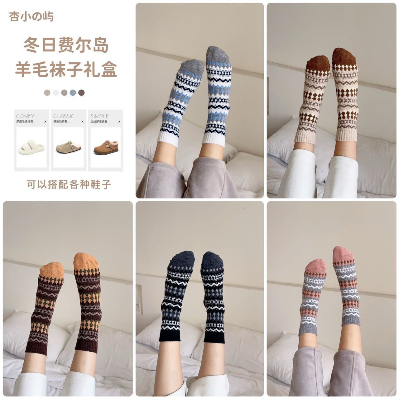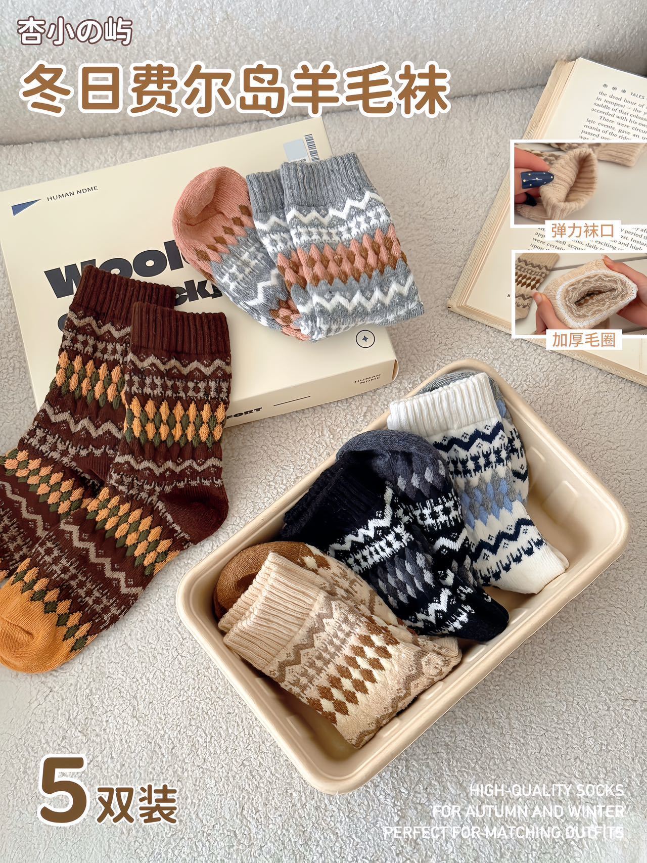 杏小の屿 冬日费尔岛羊毛袜子礼盒 加厚保暖 5双装