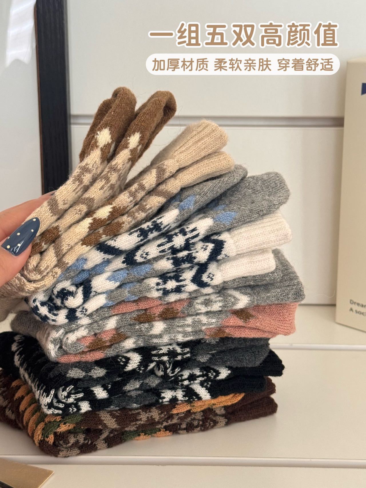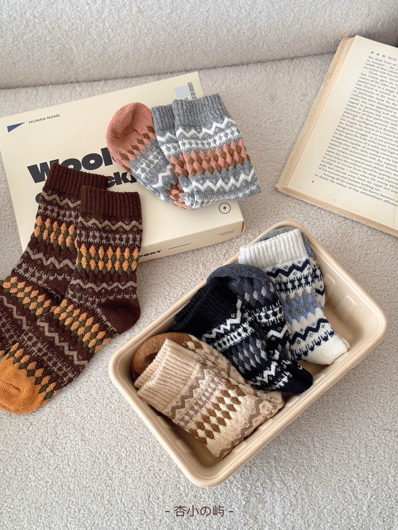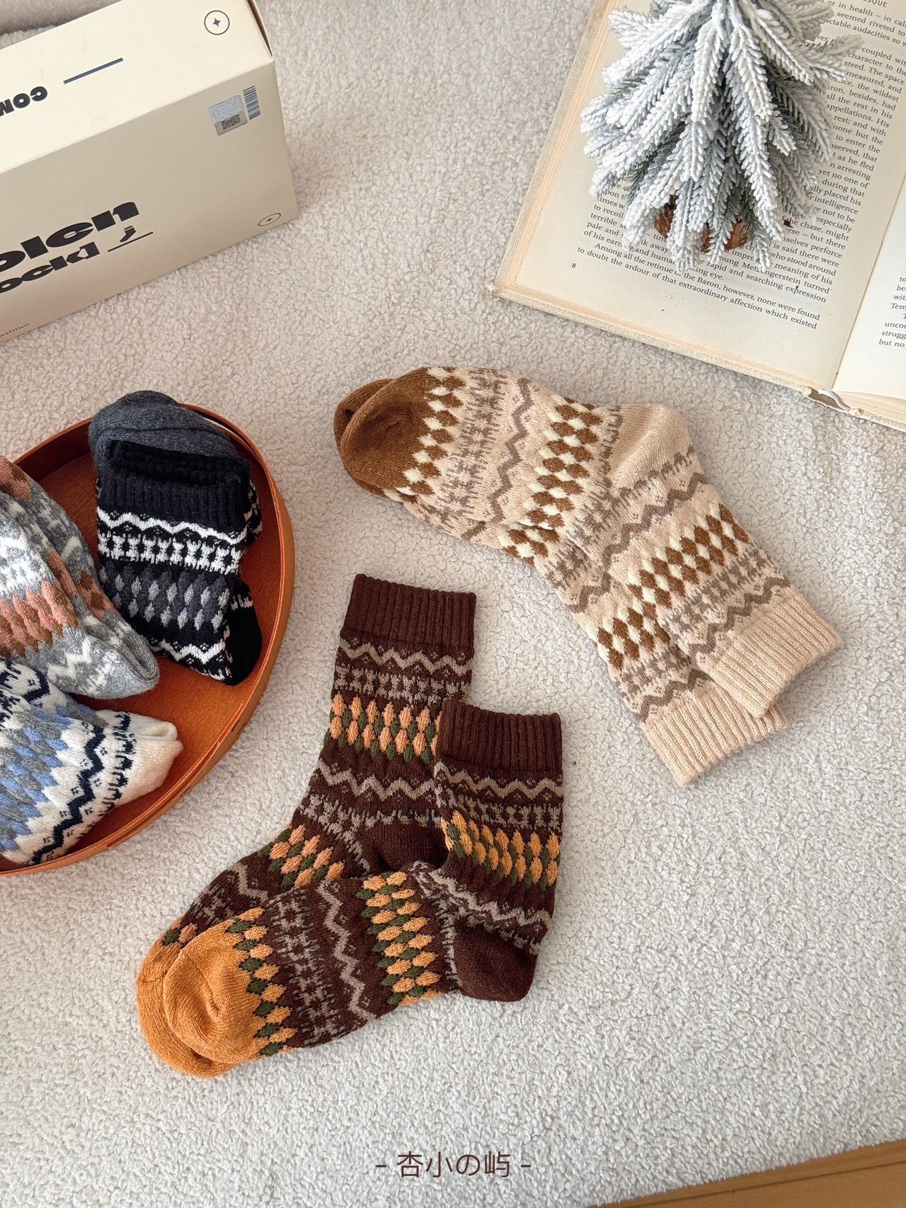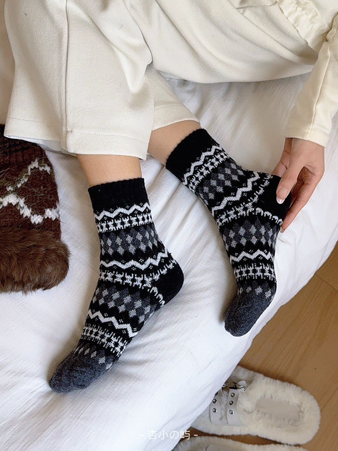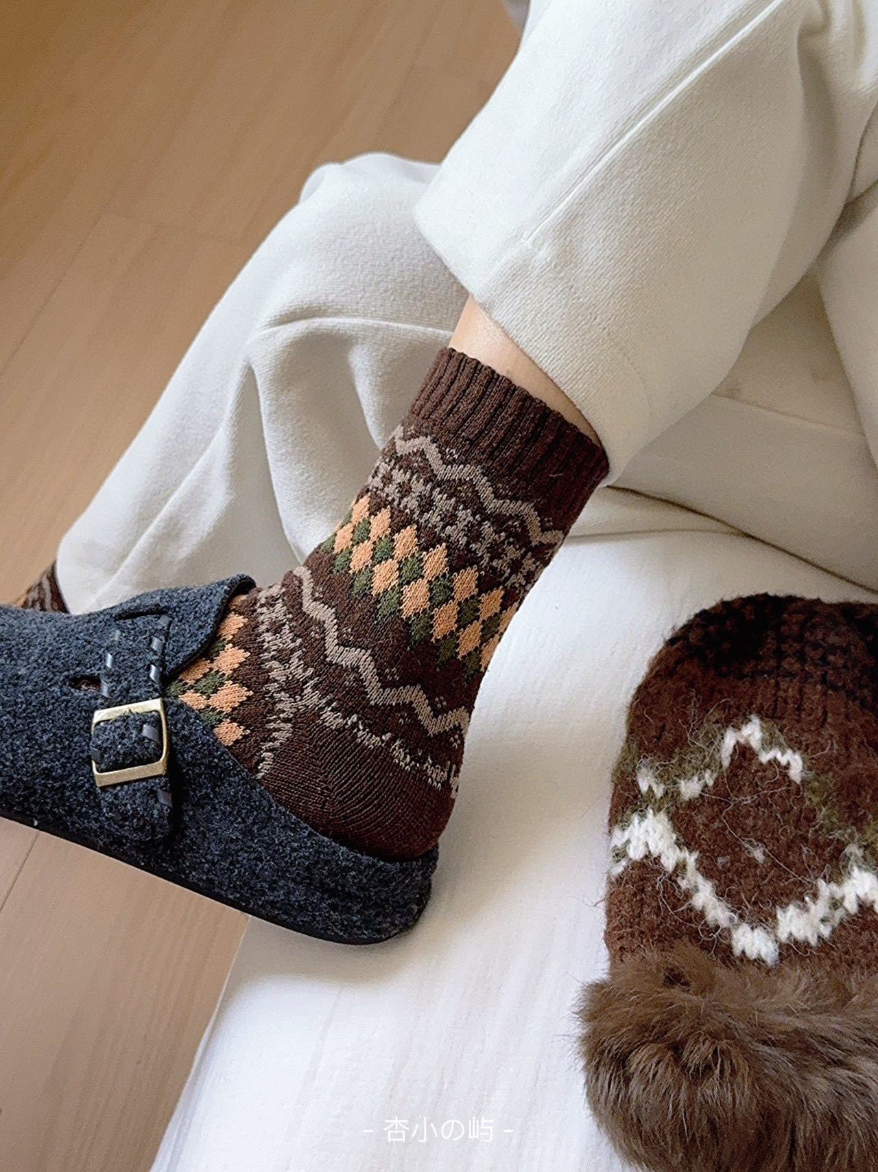 杏小の屿 冬日费尔岛羊毛袜子礼盒 加厚保暖 5双装