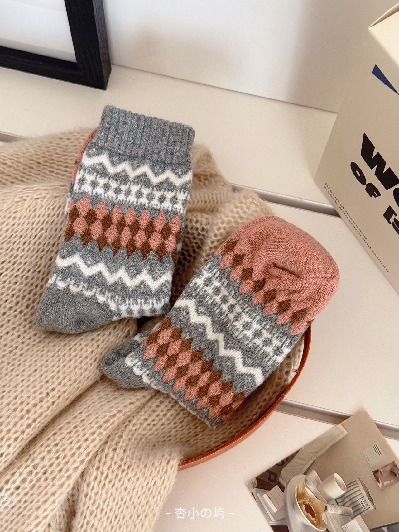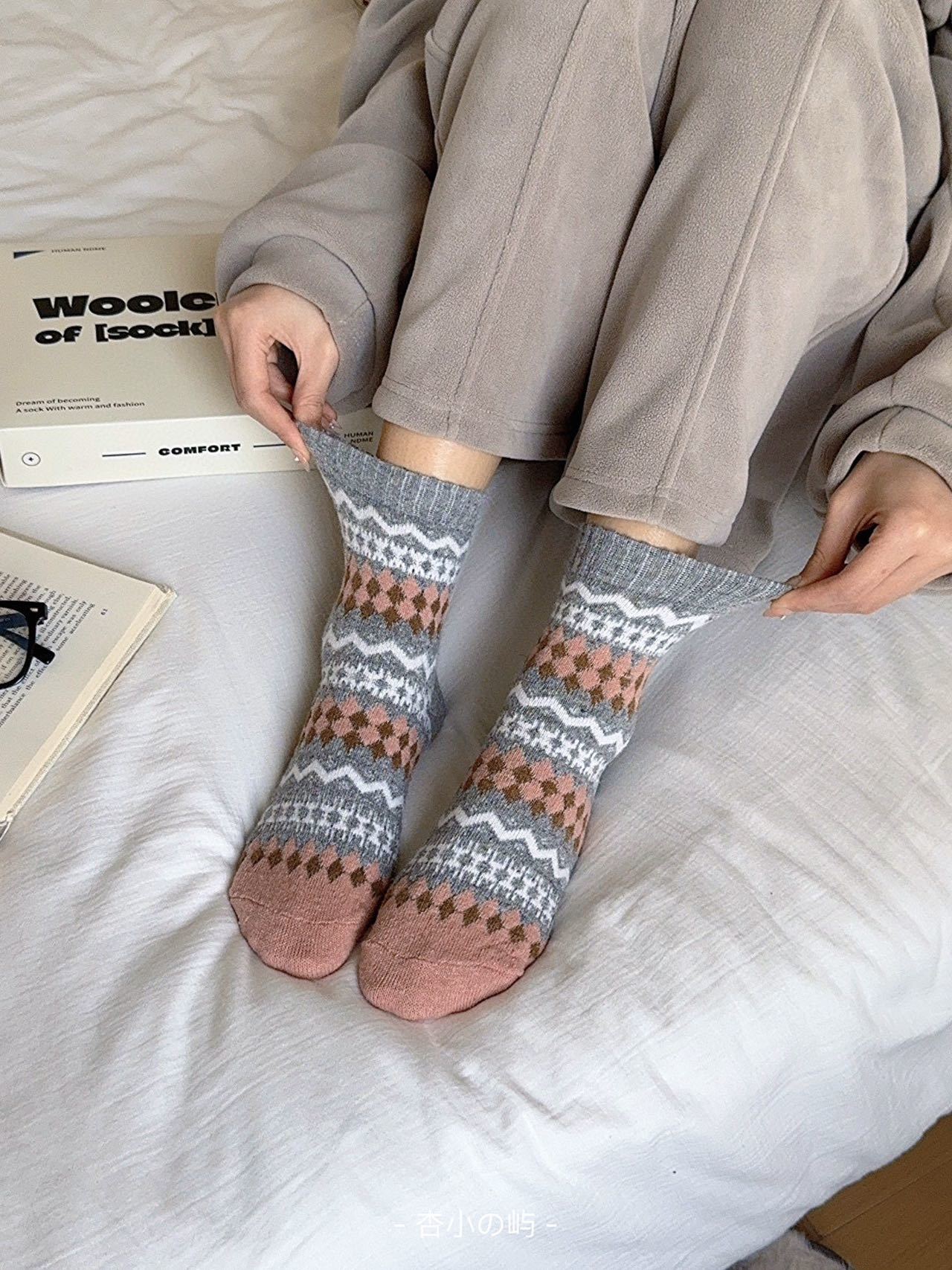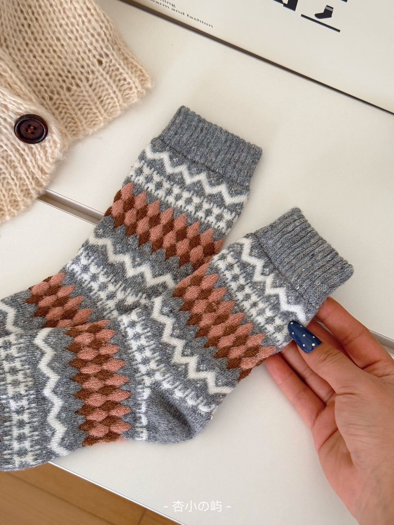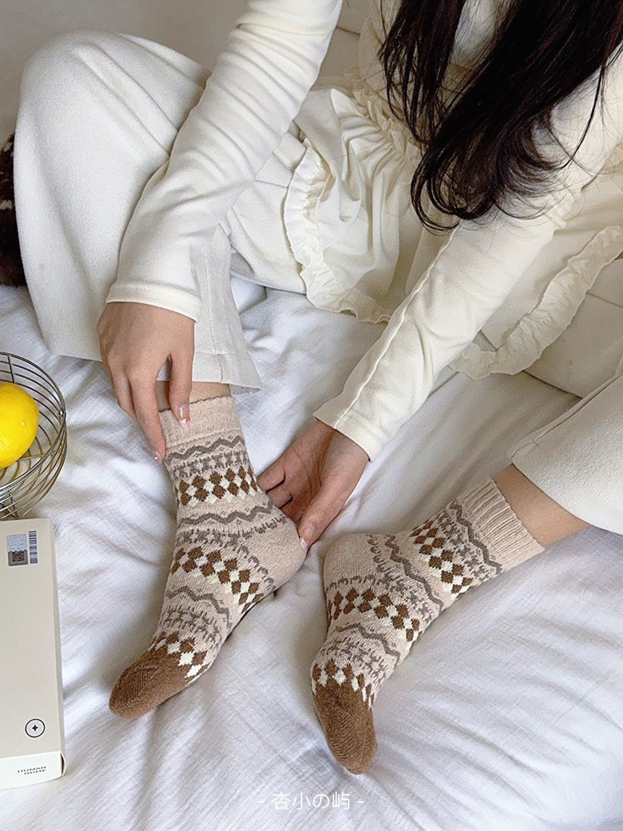 杏小の屿 冬日费尔岛羊毛袜子礼盒 加厚保暖 5双装