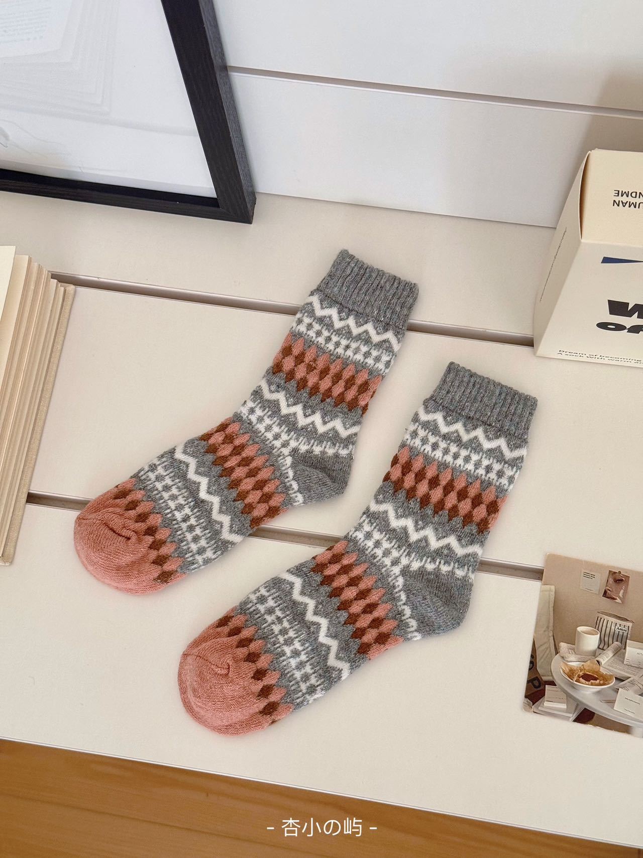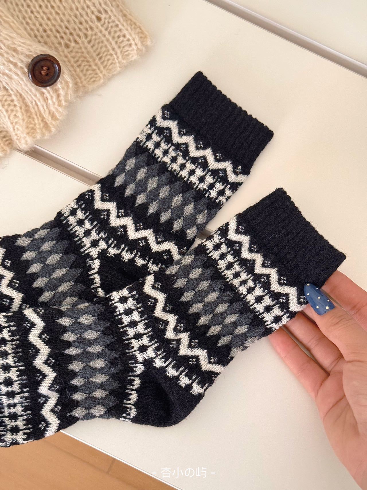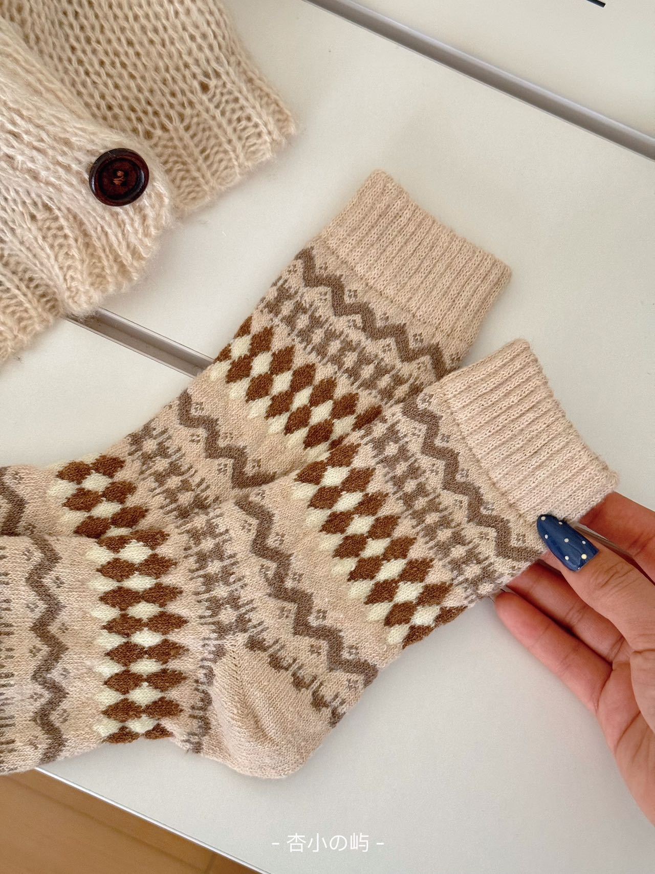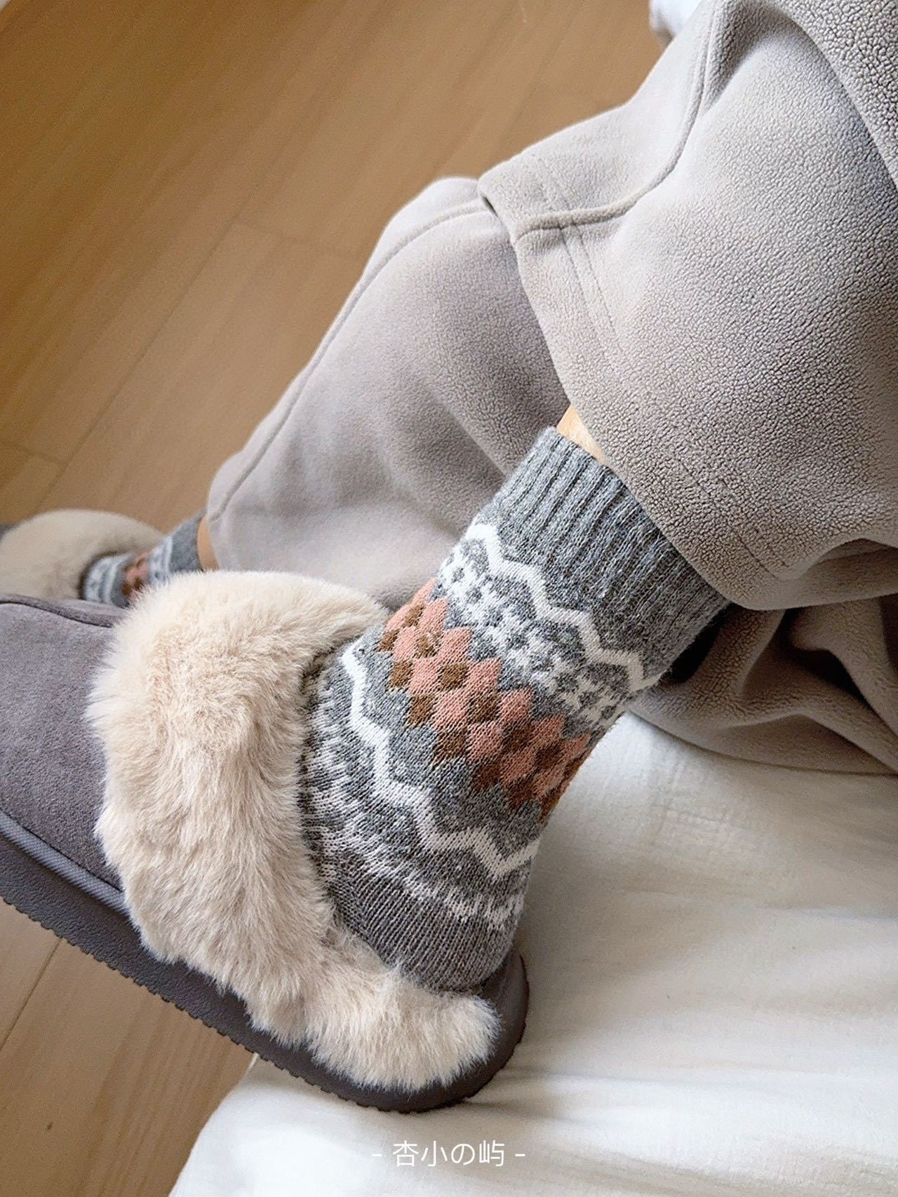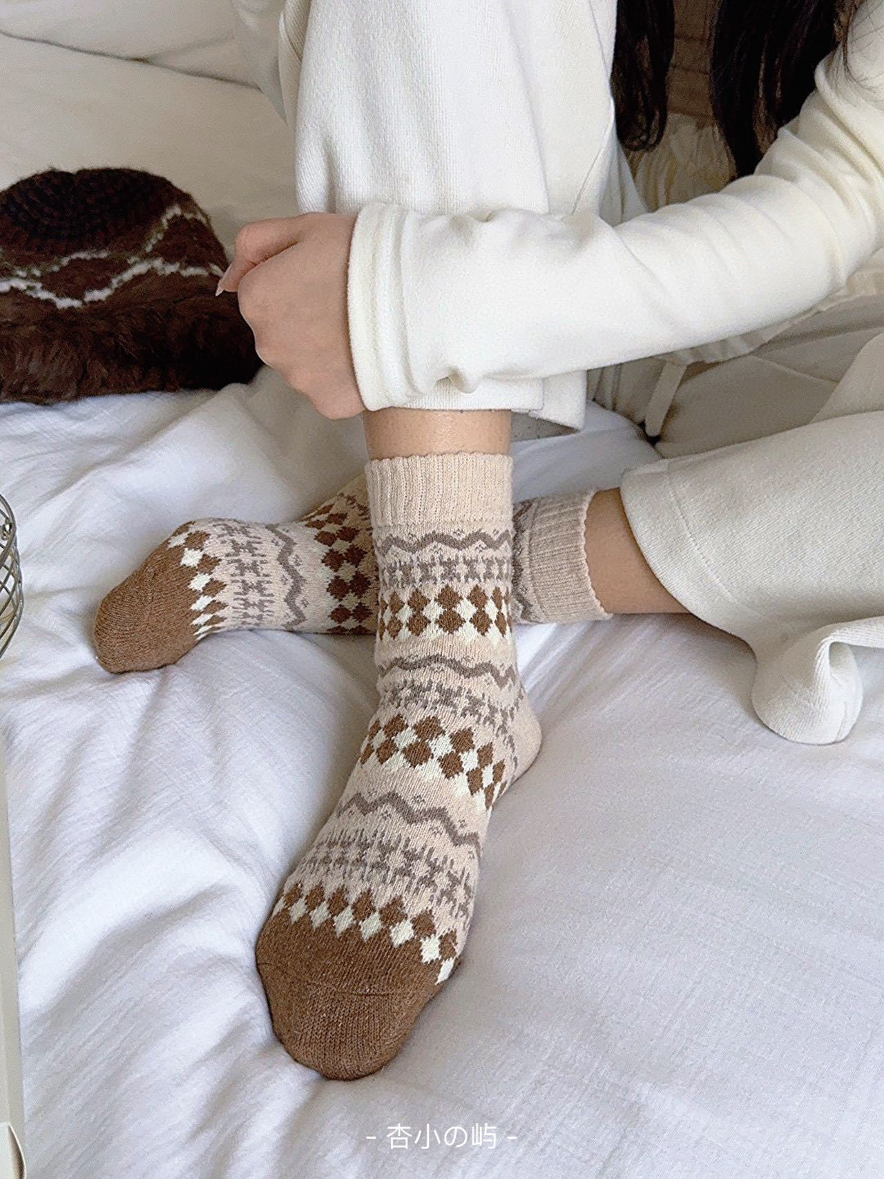 杏小の屿 冬日费尔岛羊毛袜子礼盒 加厚保暖 5双装