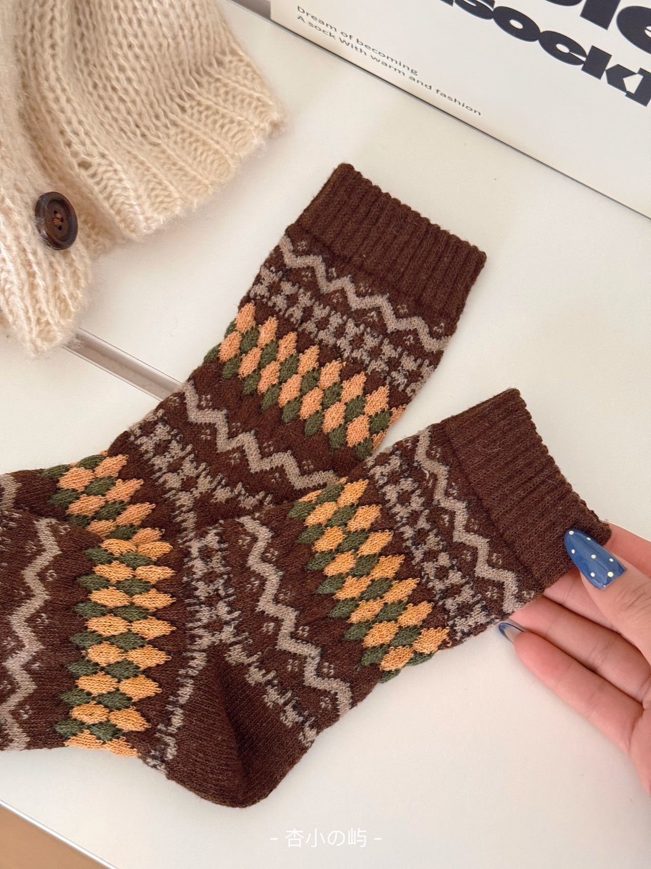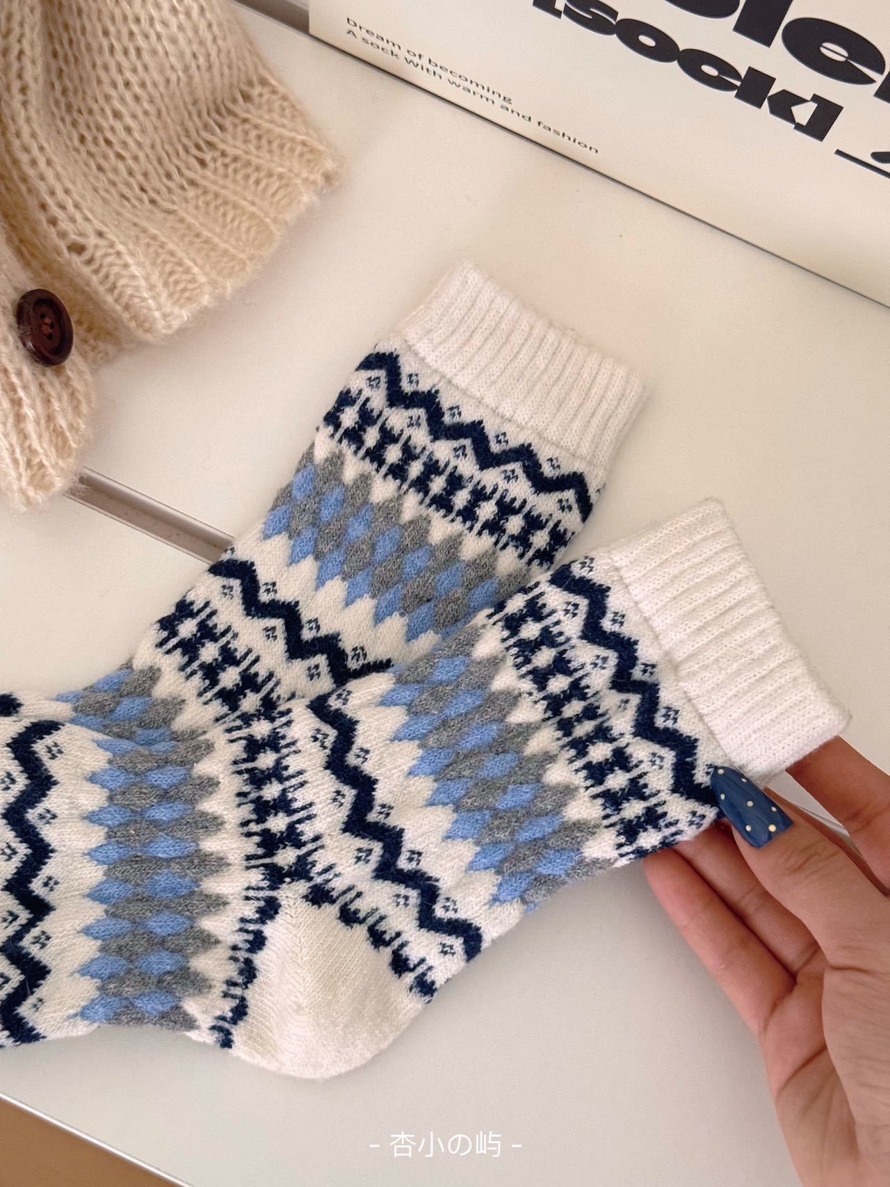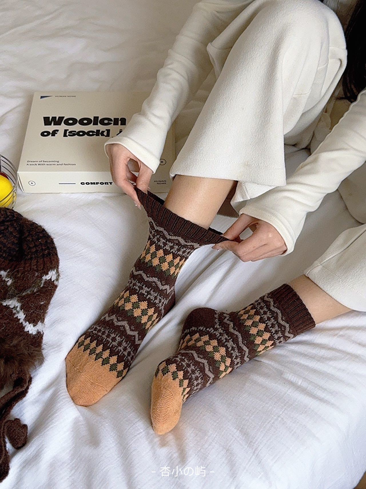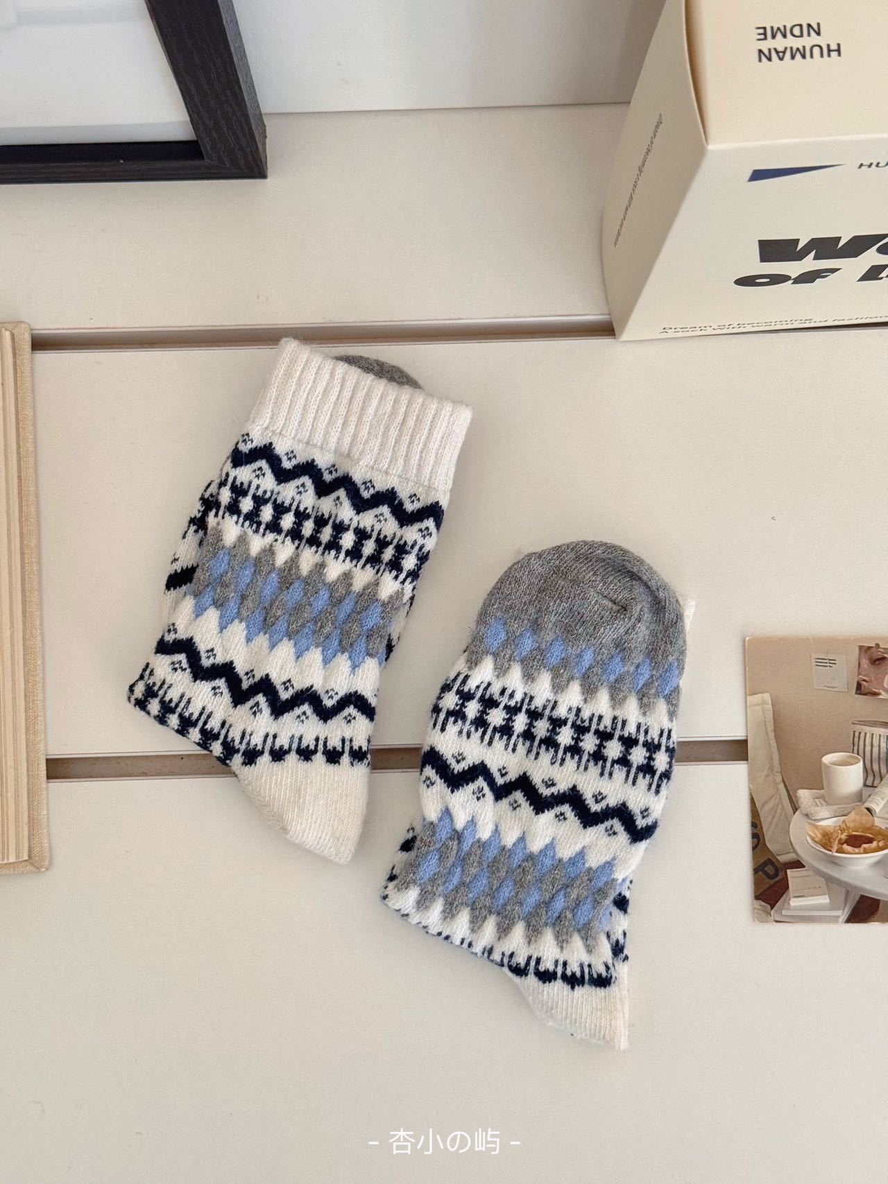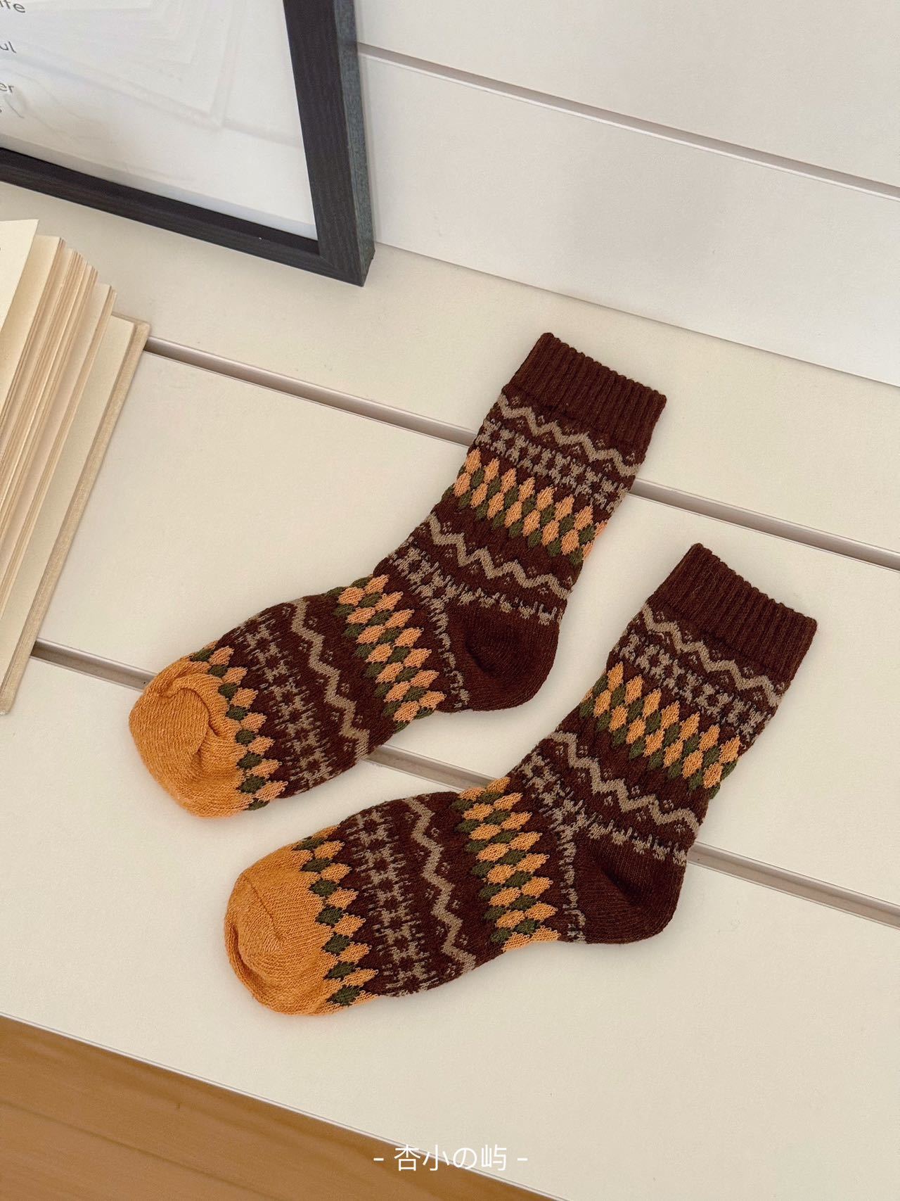 杏小の屿 冬日费尔岛羊毛袜子礼盒 加厚保暖 5双装