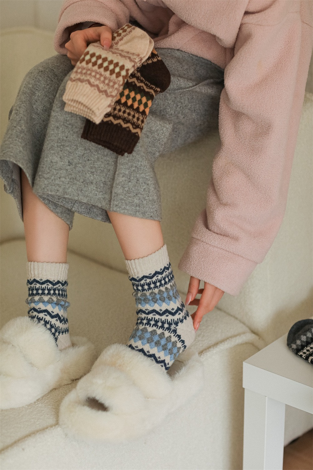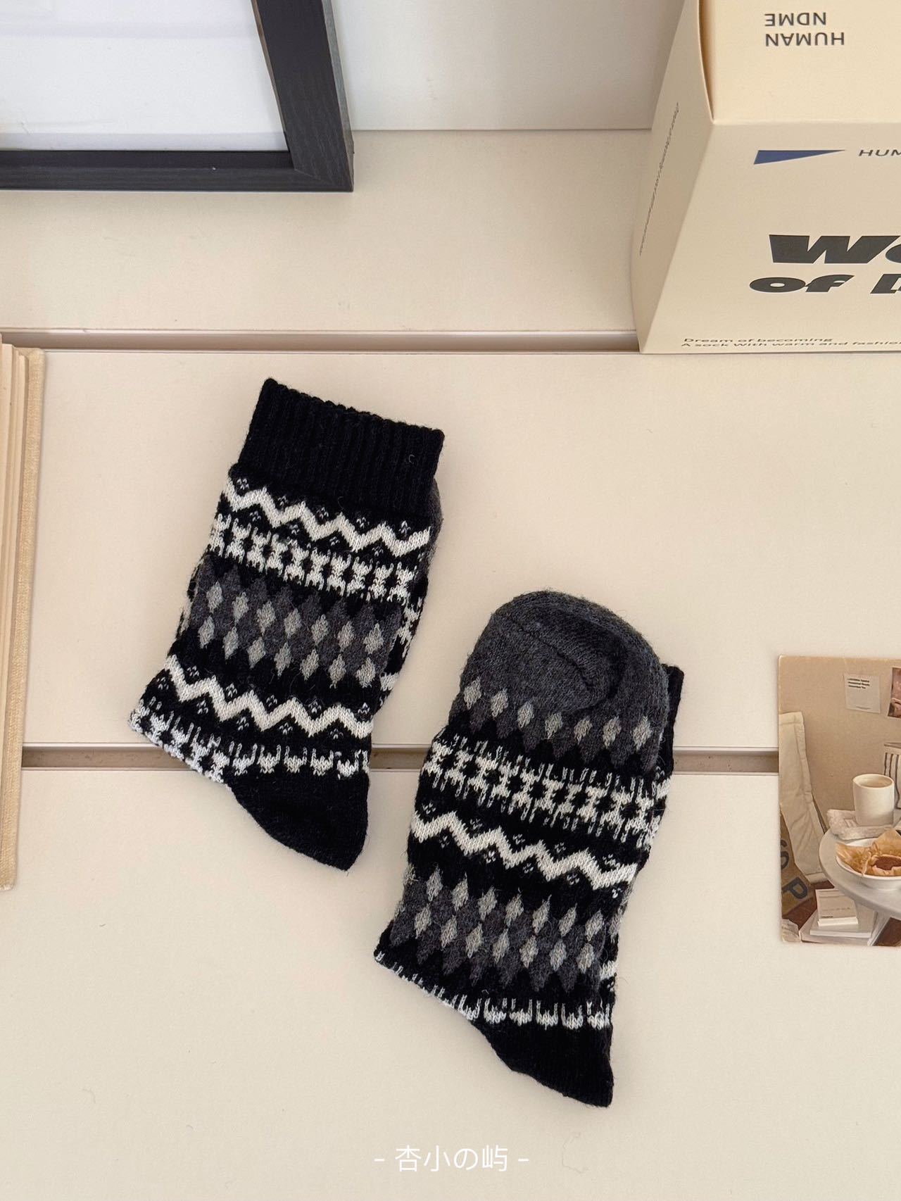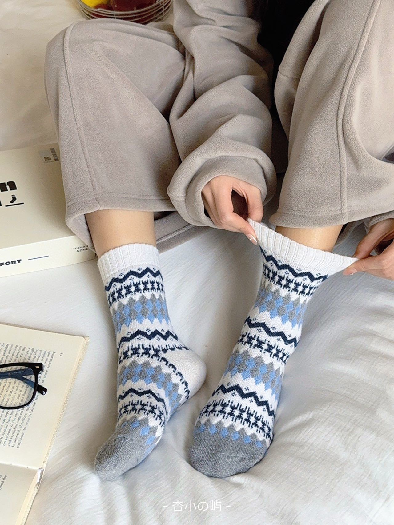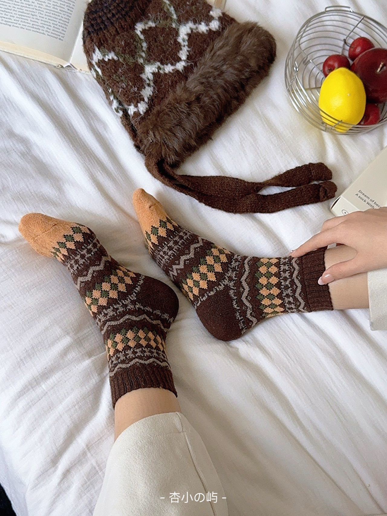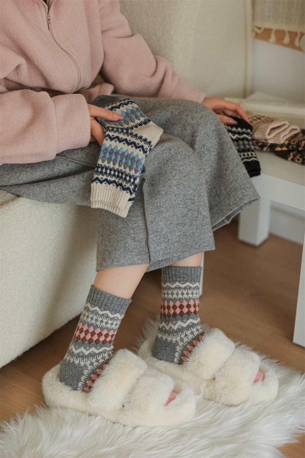 杏小の屿 冬日费尔岛羊毛袜子礼盒 加厚保暖 5双装