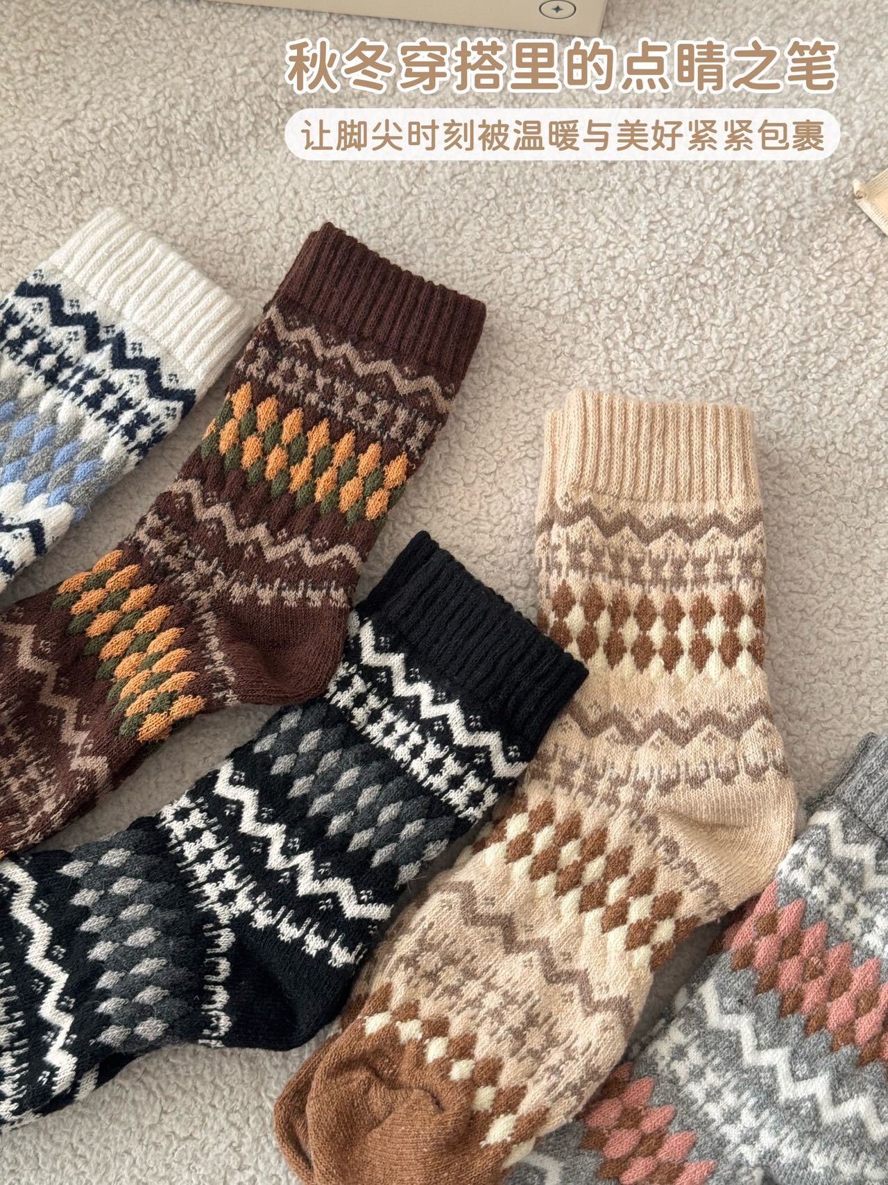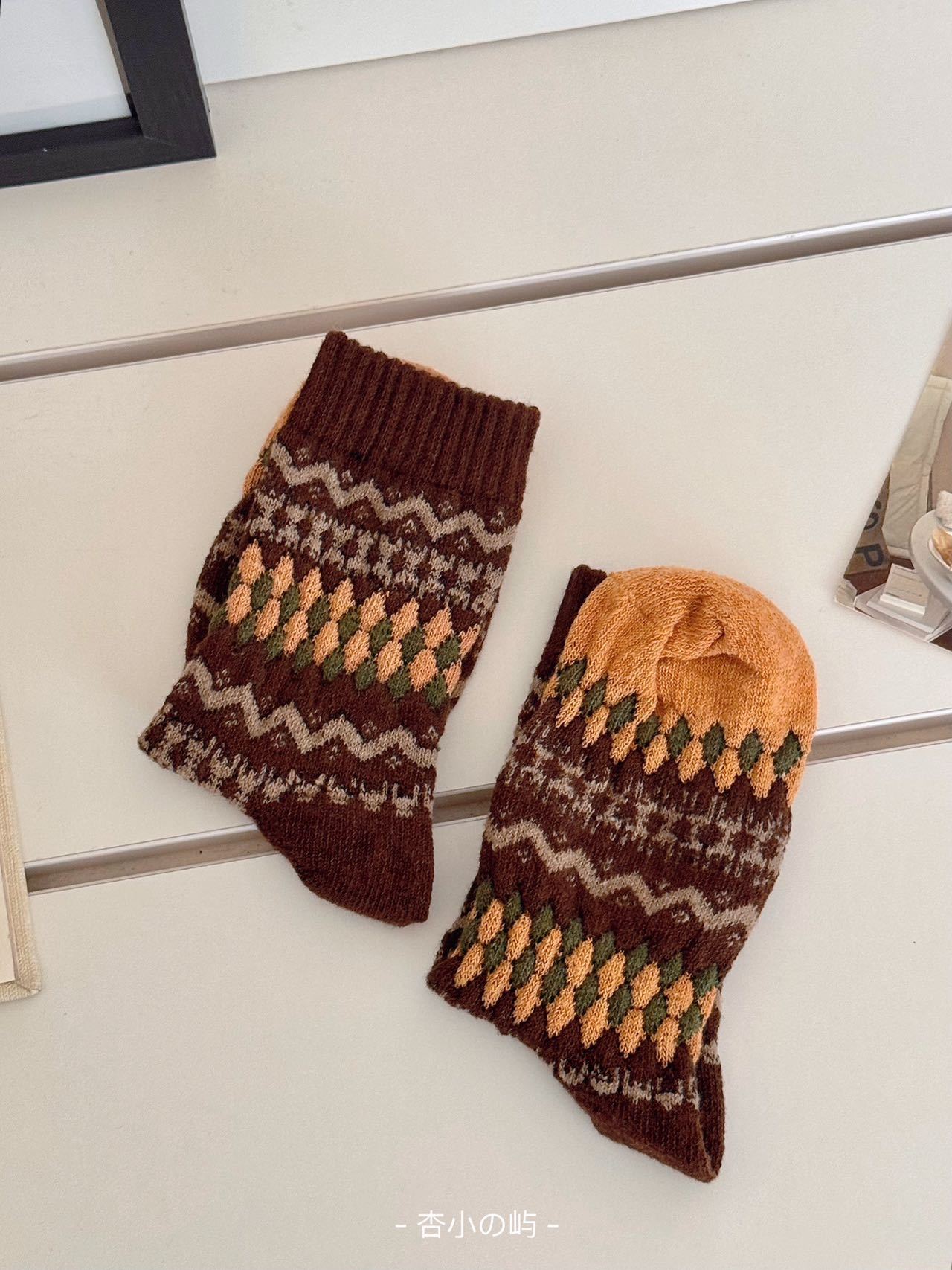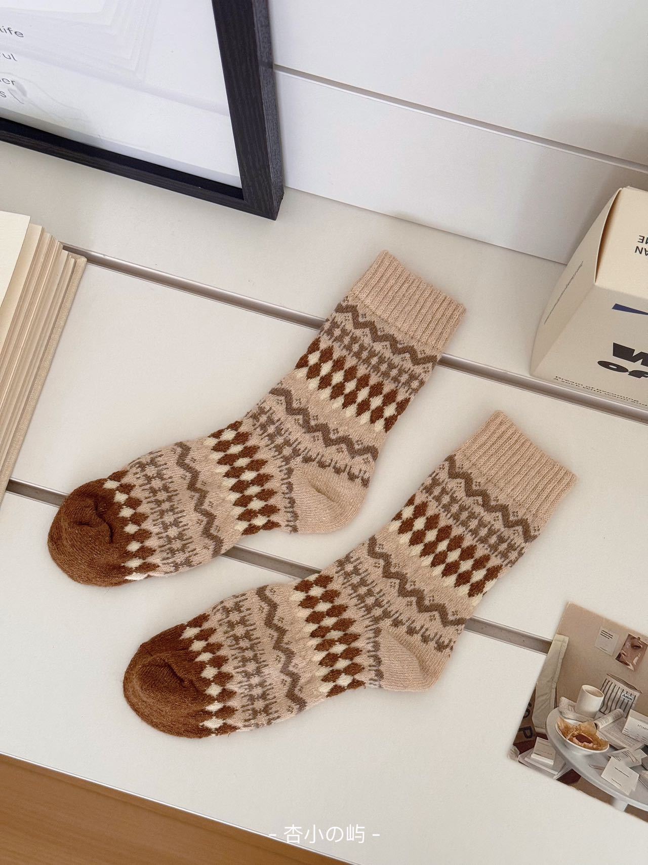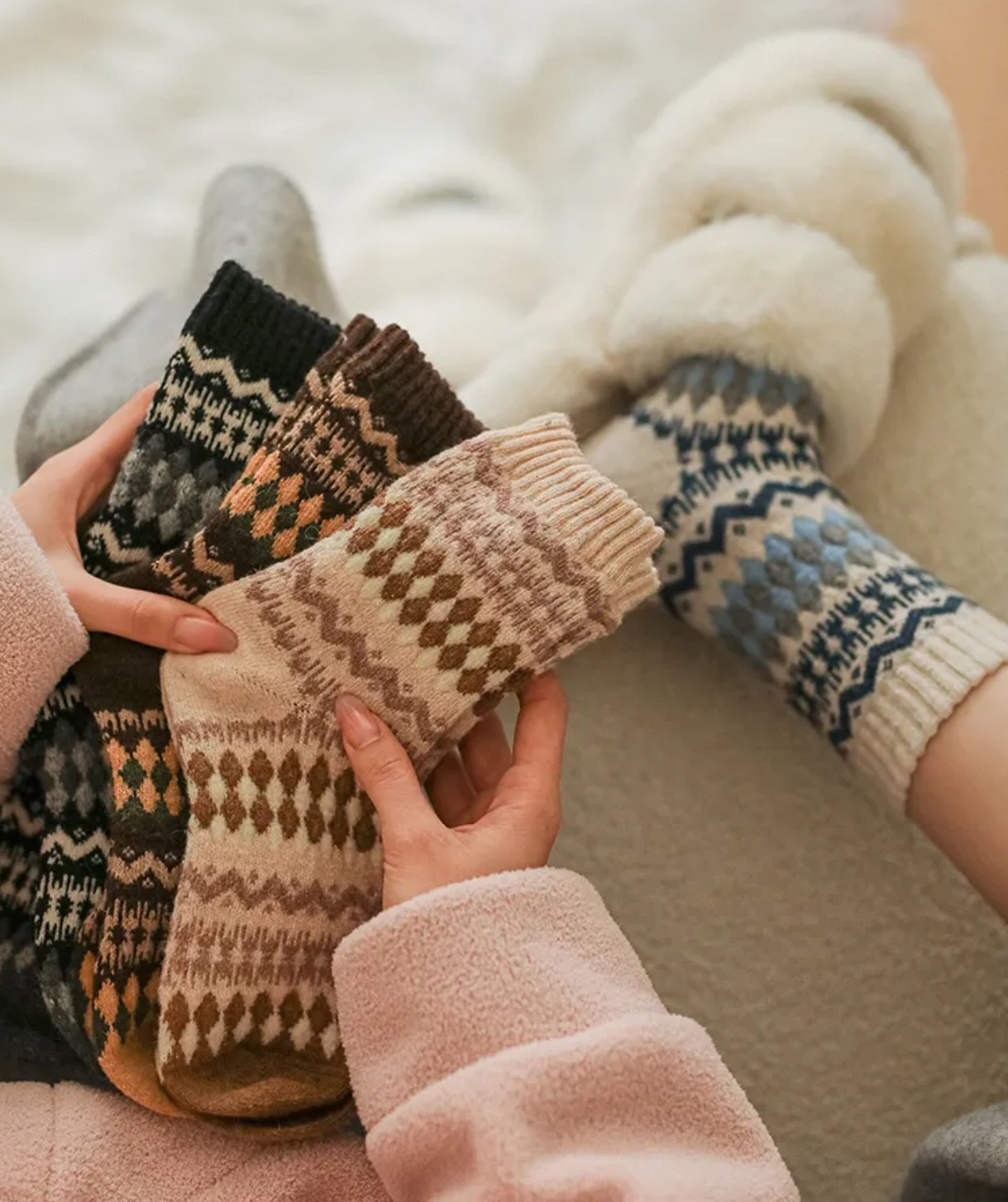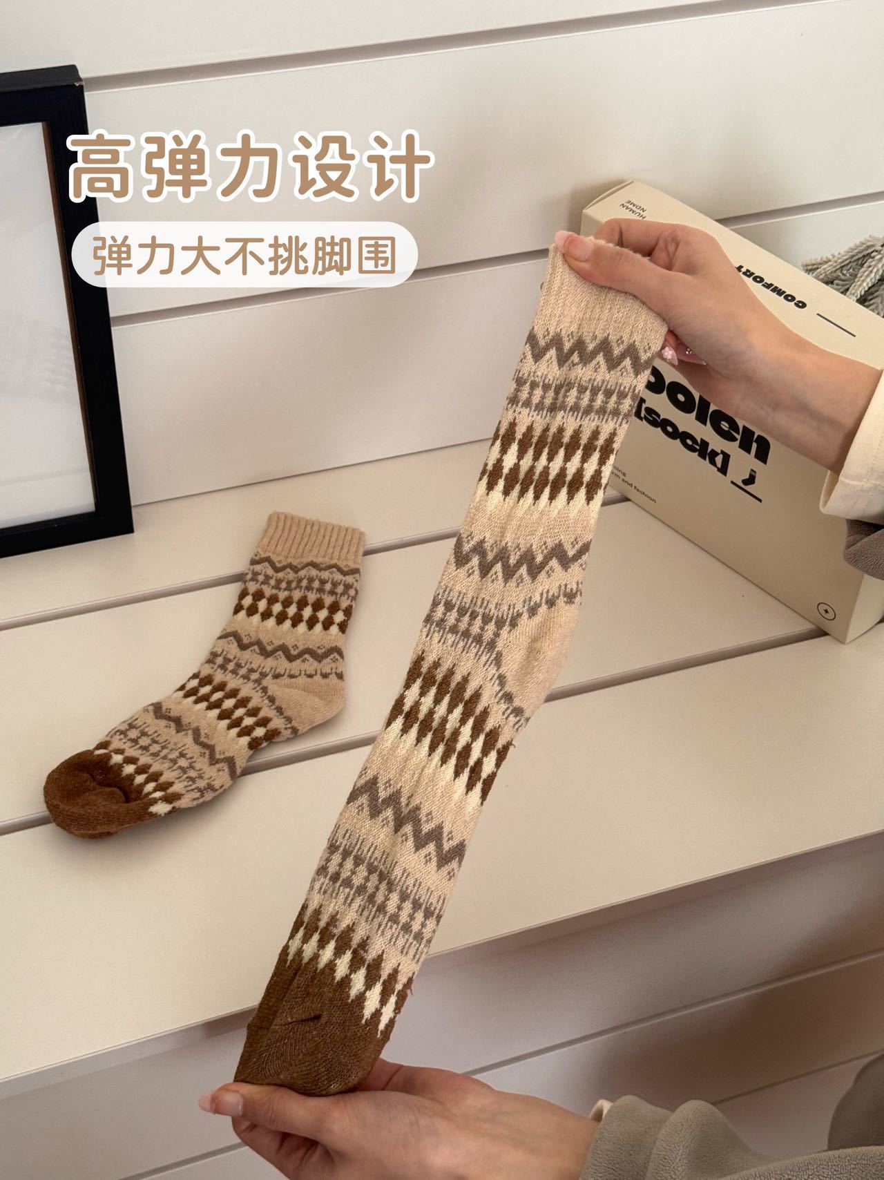 杏小の屿 冬日费尔岛羊毛袜子礼盒 加厚保暖 5双装