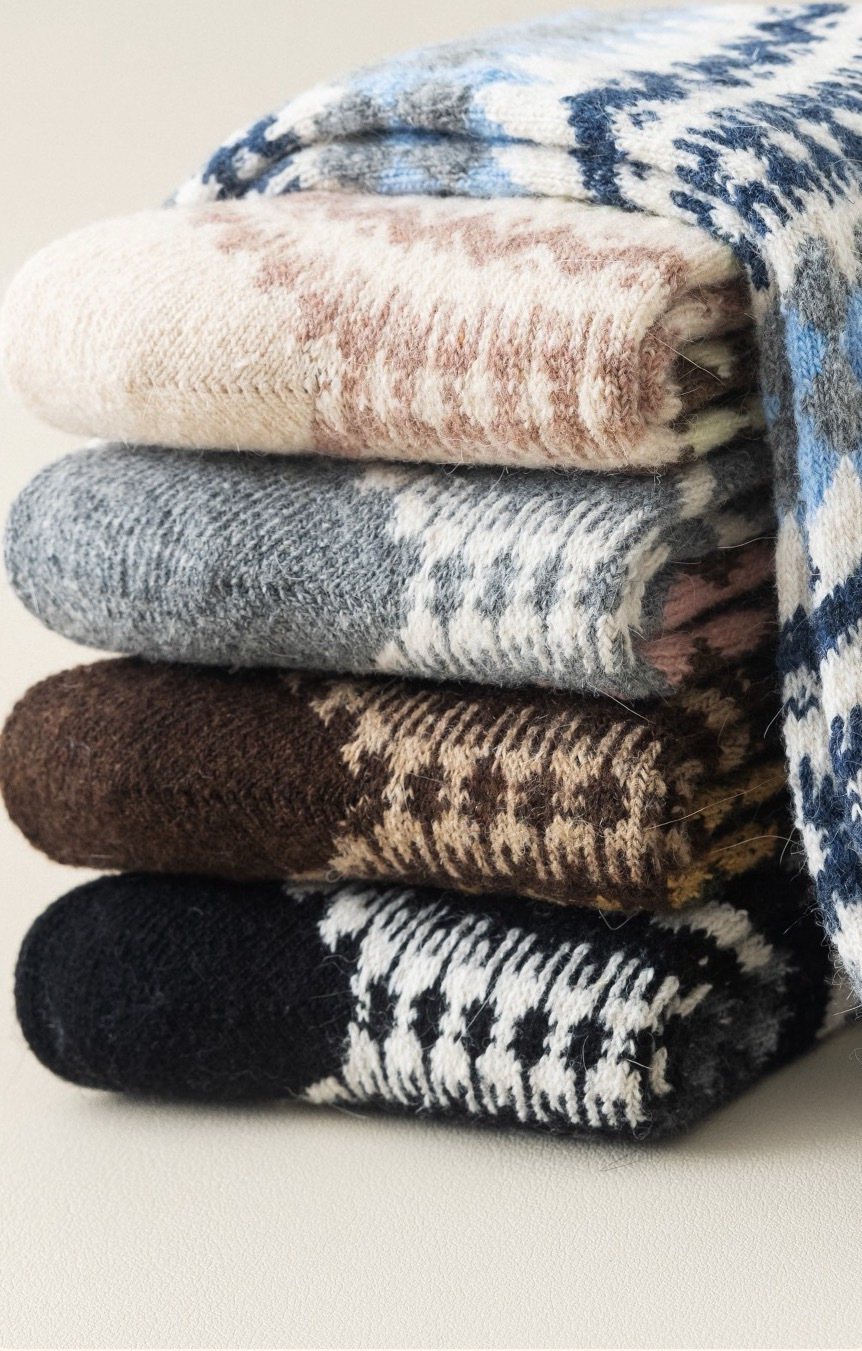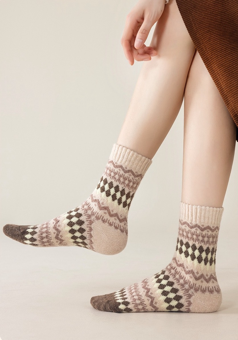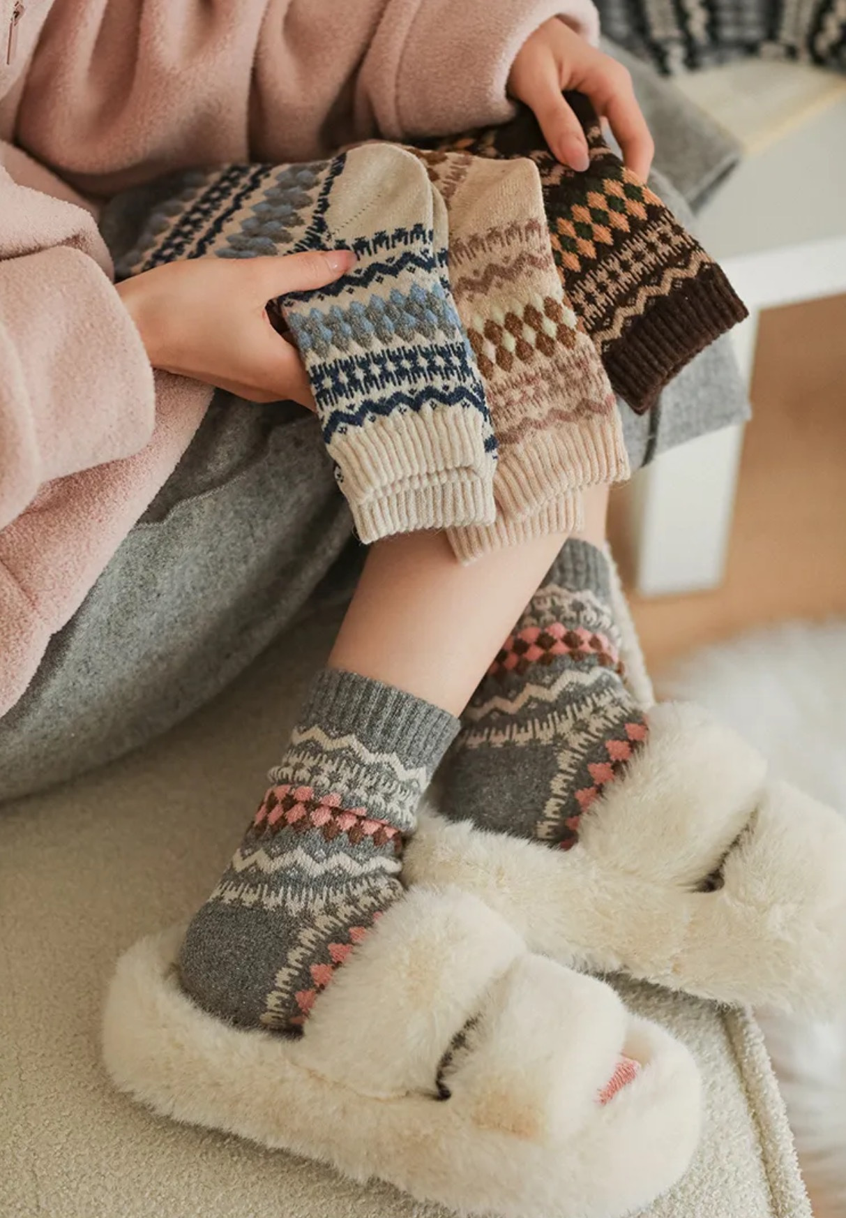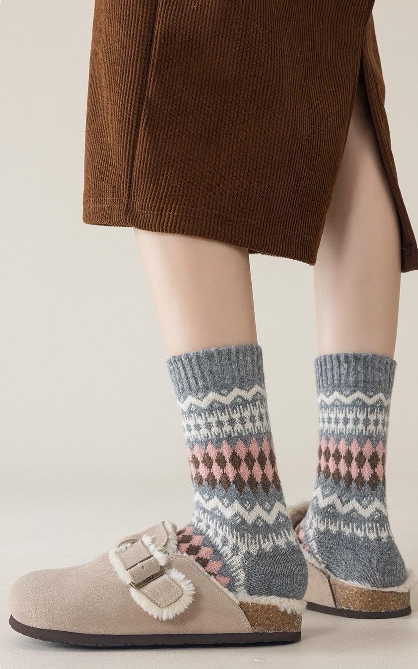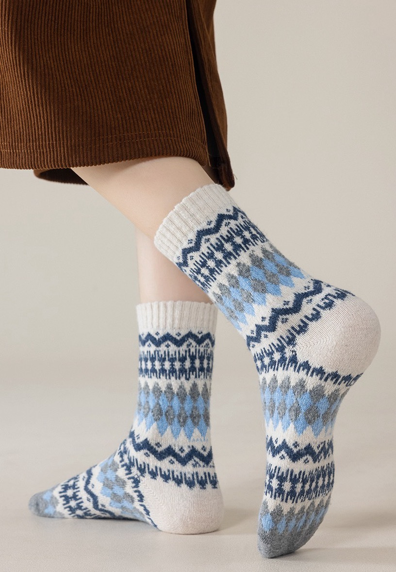 杏小の屿 冬日费尔岛羊毛袜子礼盒 加厚保暖 5双装
