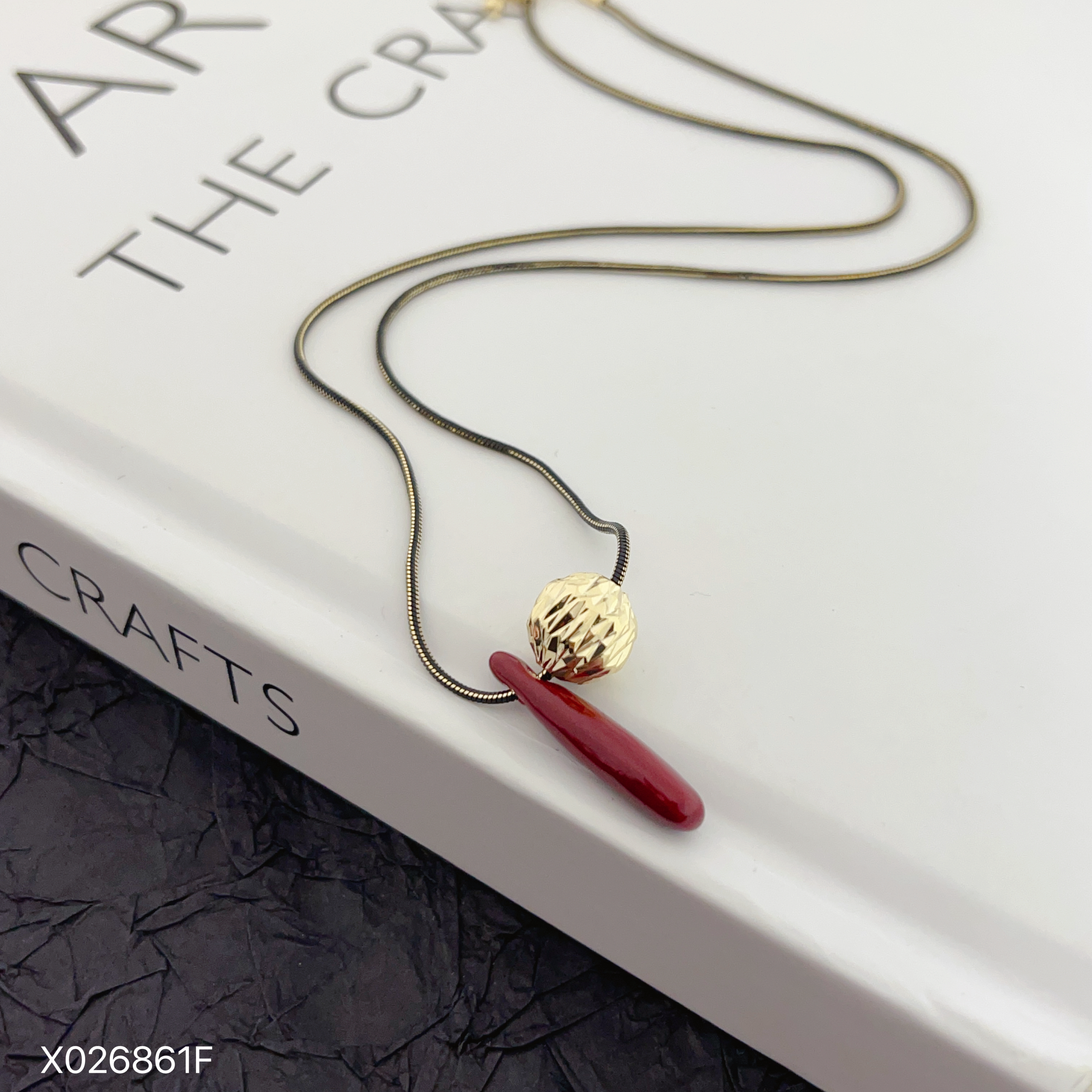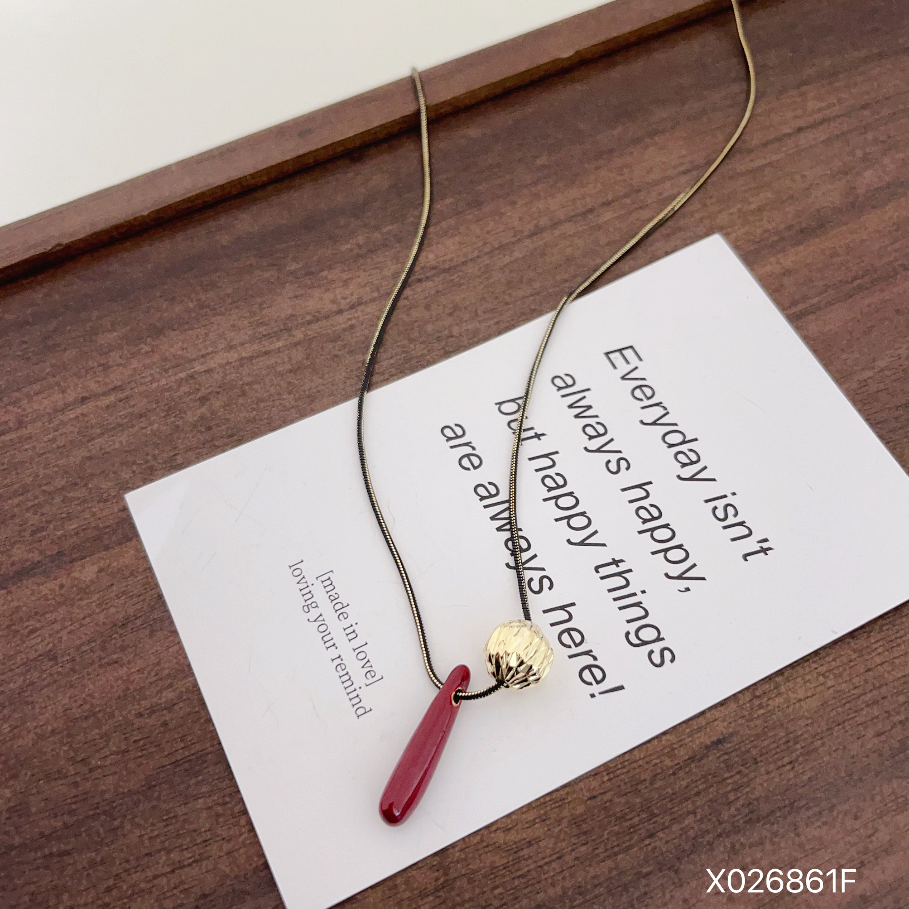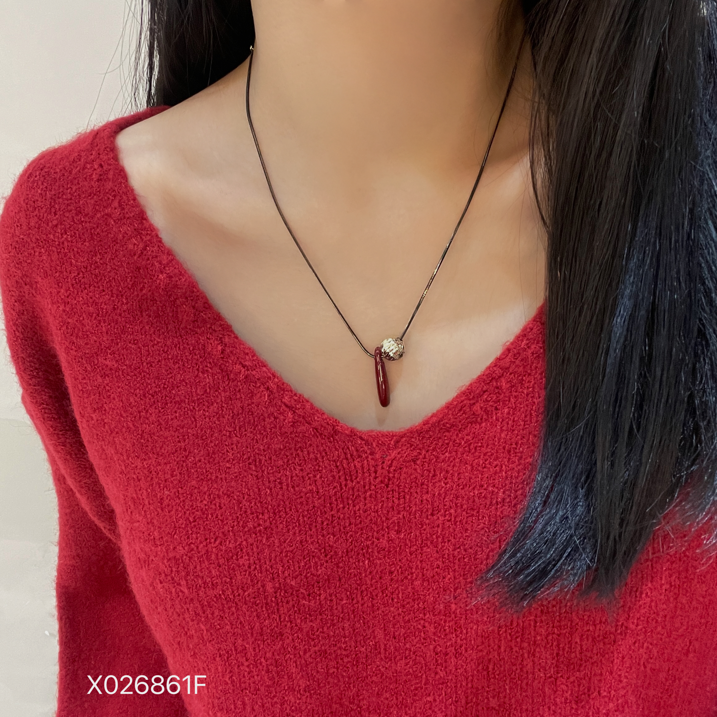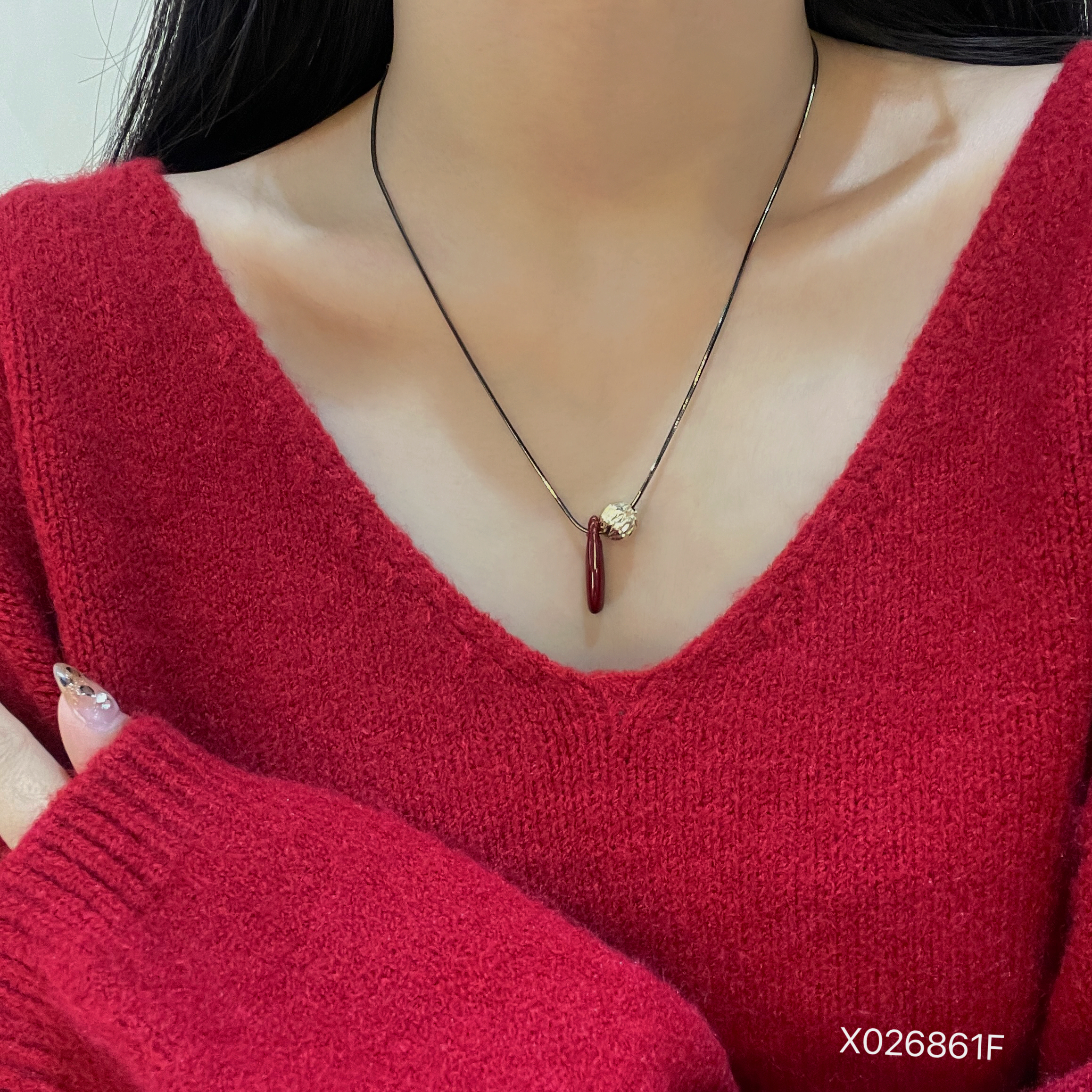 Oflye潮流饰品 复古安可拉红项链洋气时尚设计感个性首饰配饰项链