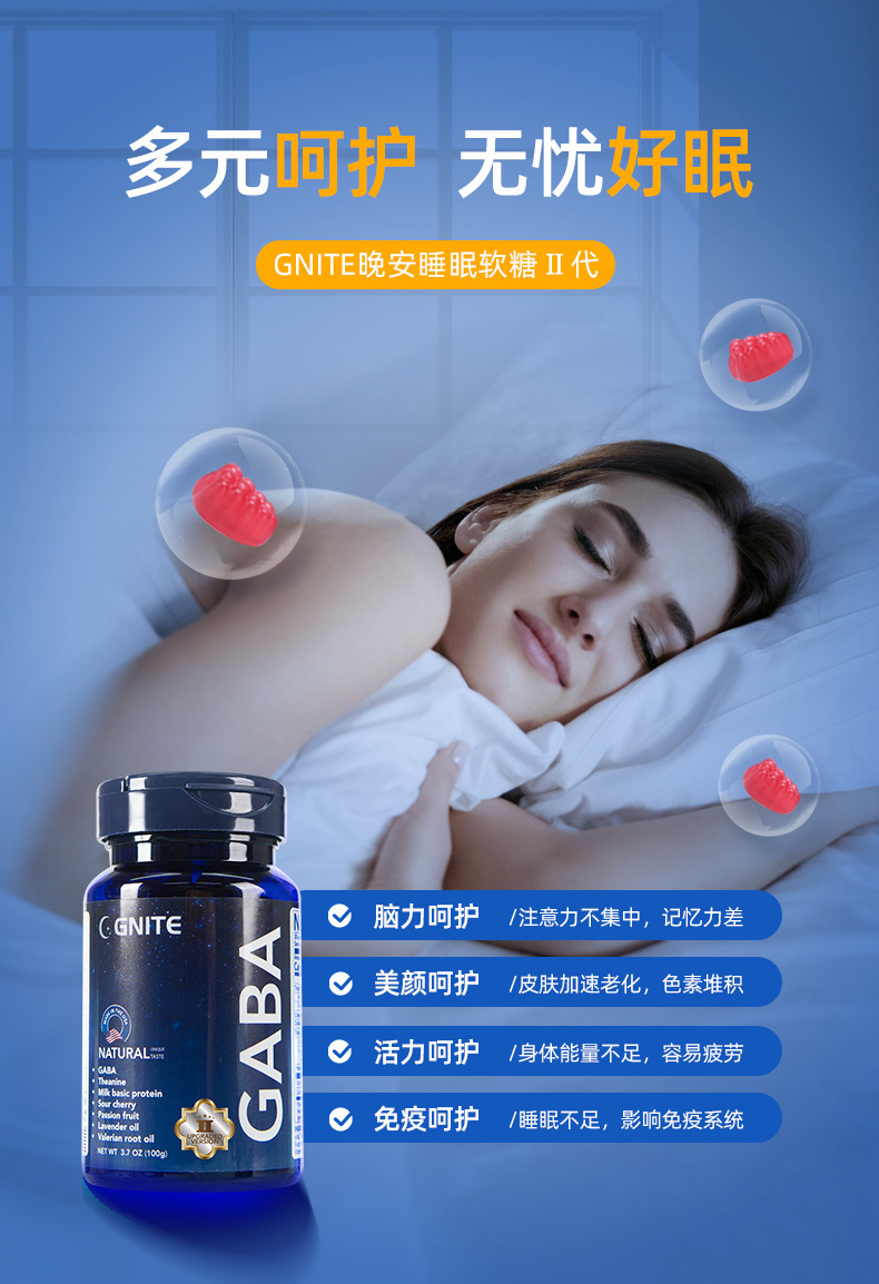 【美国原装进口gnite睡眠糖2.0升级版】GABA含量100mg/颗!入睡更快!延长深睡!失眠党救星全网热销十万瓶~还你一夜好眠,升级到8大安睡配方,自然植萃添加