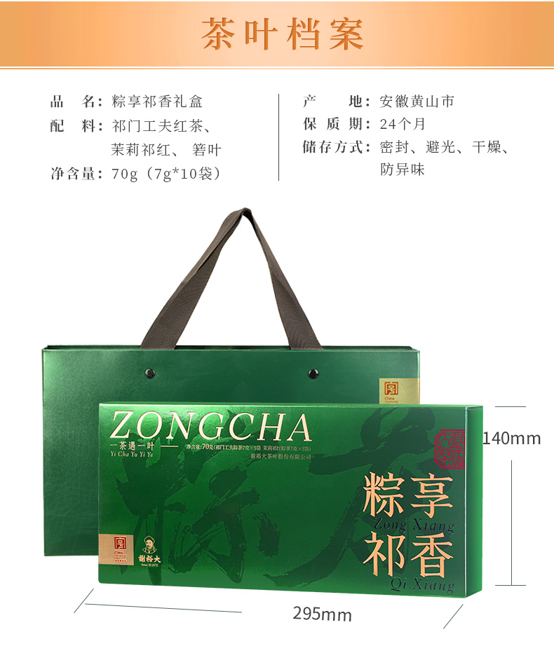 谢裕大粽享祁香茶叶礼盒祁门红茶茉莉红茶70g分袋装端午送礼推荐
