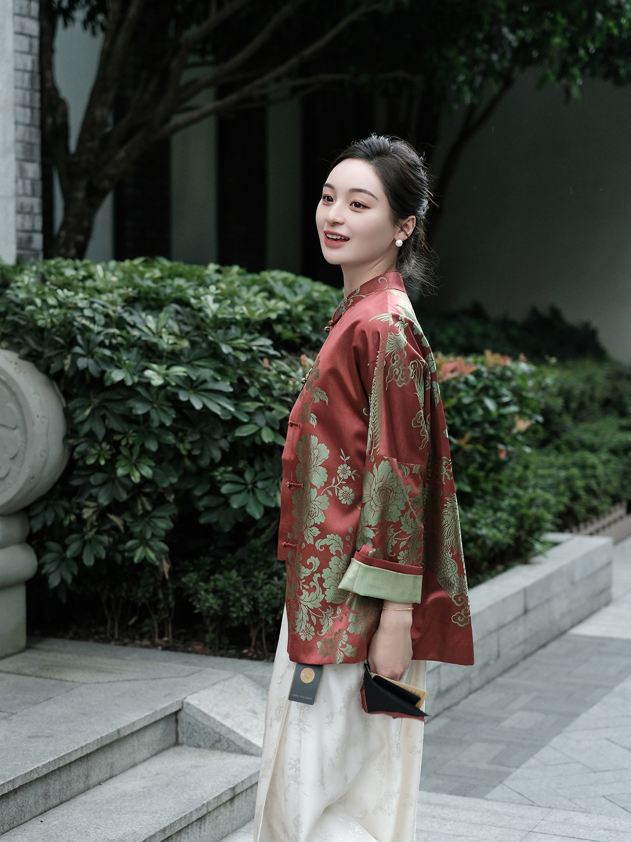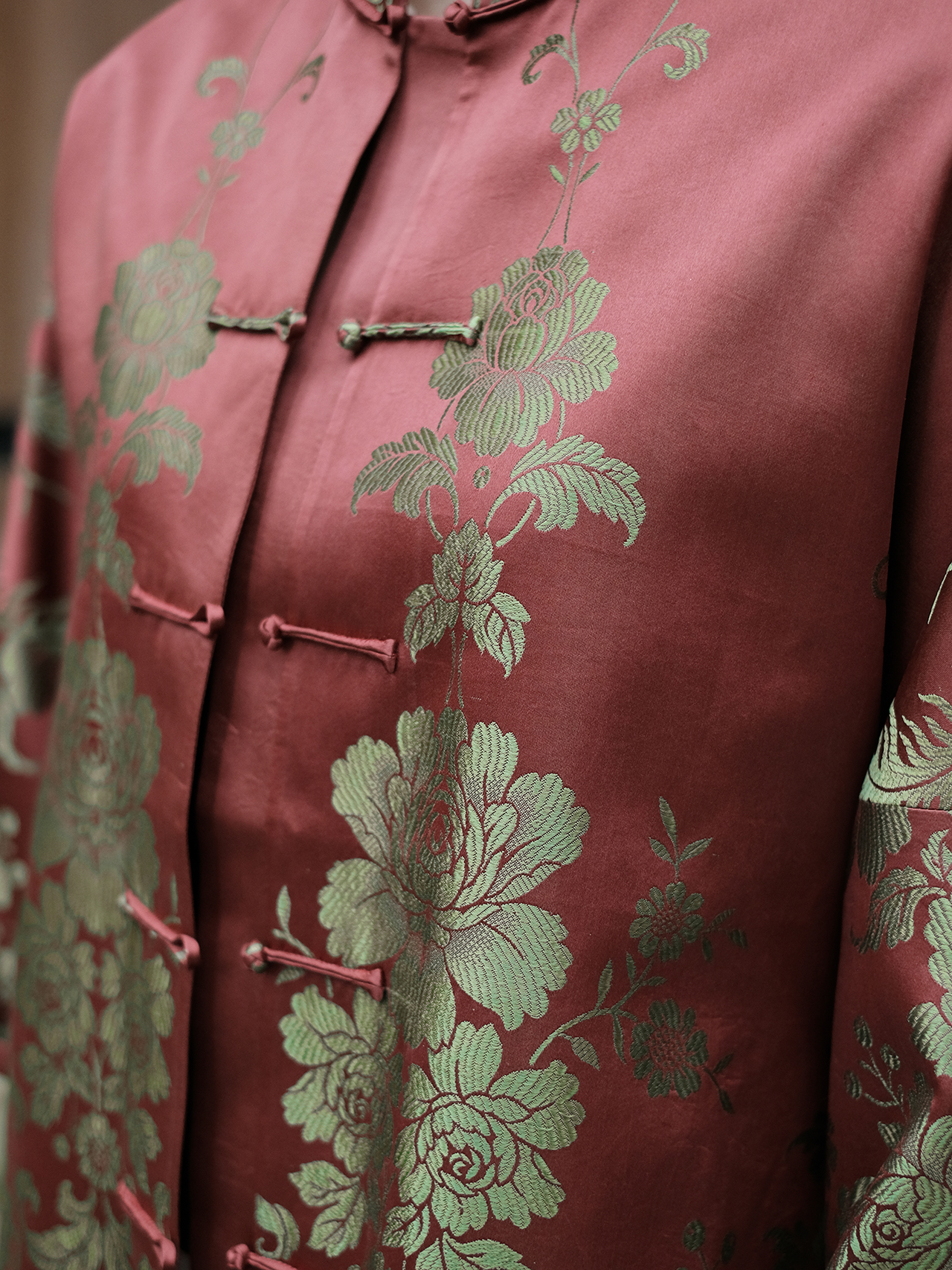 盛唐婧| 重磅桑蚕丝老缎新中式对花外套-红色