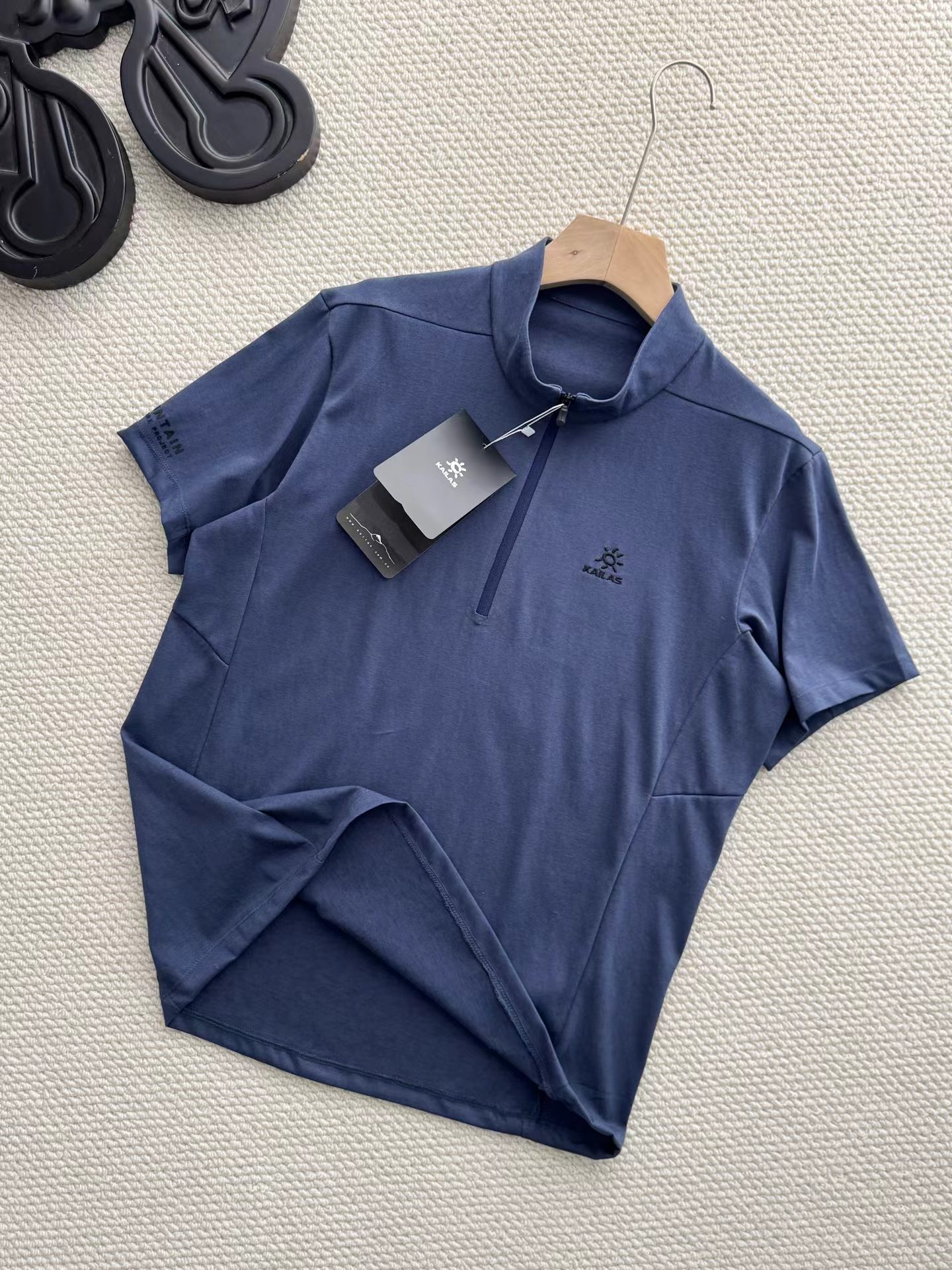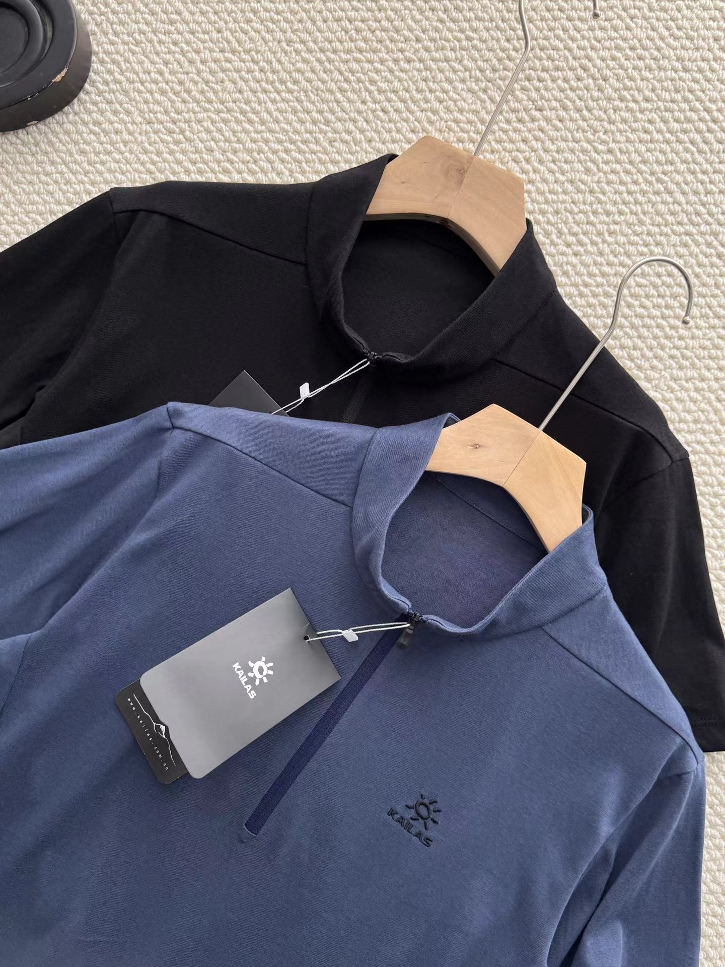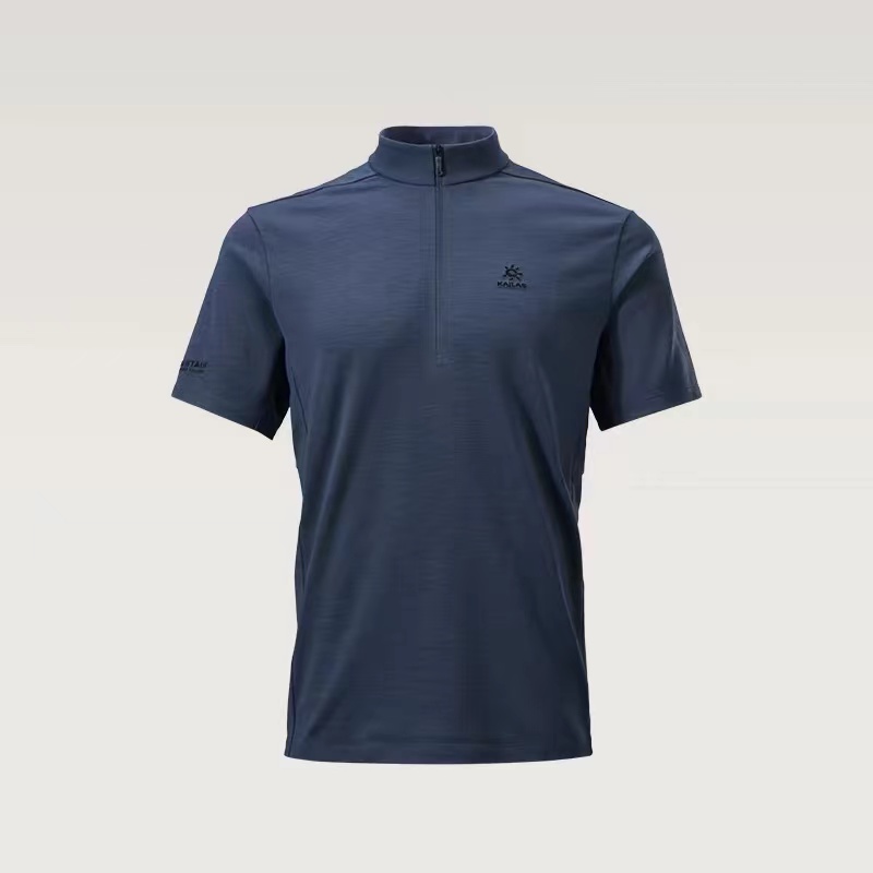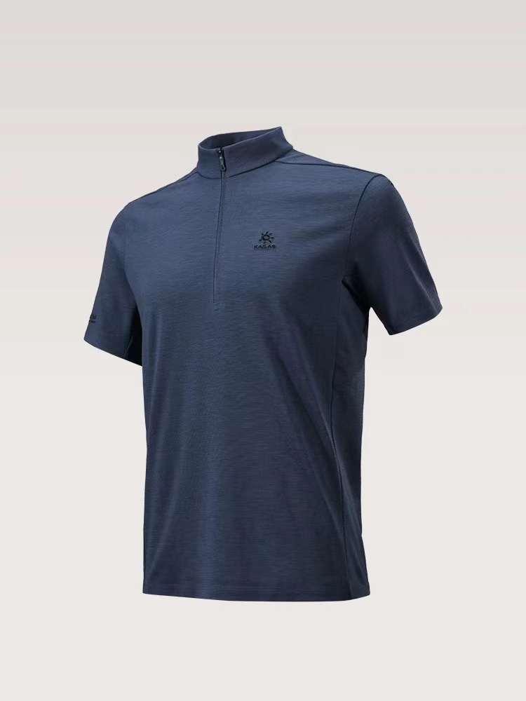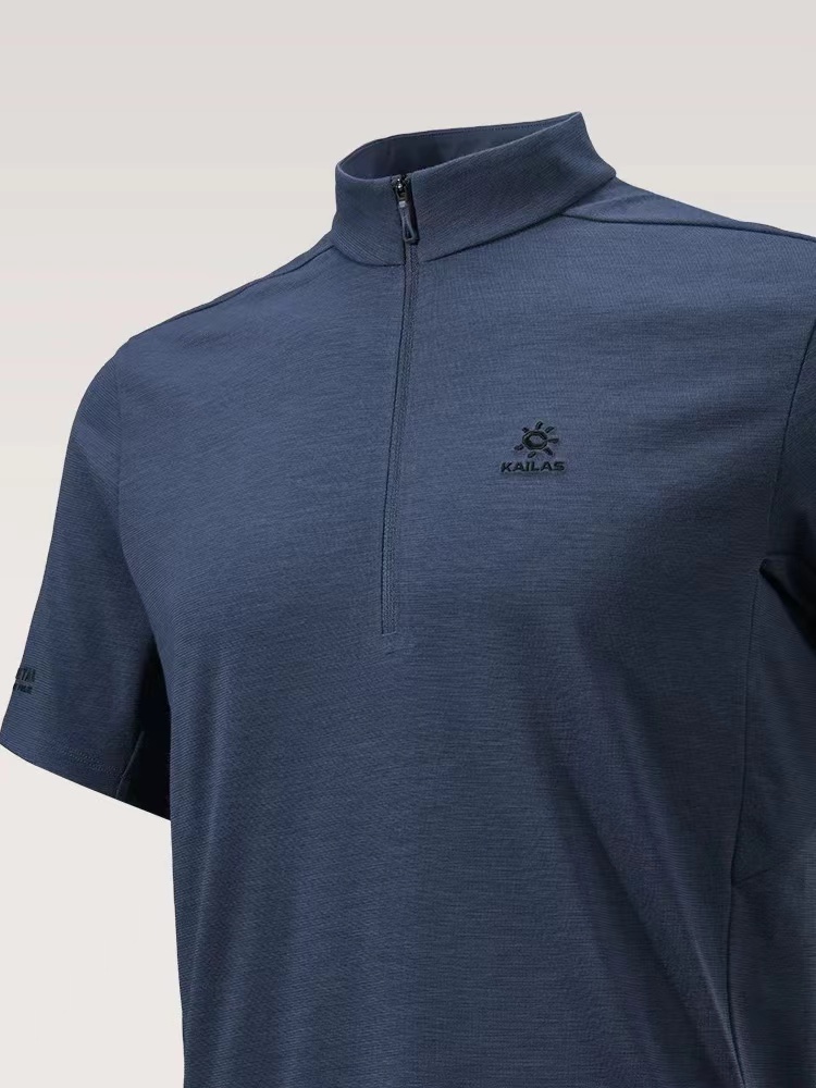 半开拉链速干T恤 | 城市户外双栖的舒适之选。 版型剪裁:修身不紧绷的H型剪裁,利落线条兼顾运动舒展性与日常穿搭的干练感,不挑身材,男女皆可驾驭。色彩选择:jing典黑与雾感藏蓝双色可选,黑色沉稳百搭,藏蓝低调显气质,轻松适配通勤、徒步、citywalk等多种场景。细节质感:半开拉链立领设计,可自由调节领口开合度,兼顾防风与透气需求;胸口同色系刺绣Logo,低调不张扬;侧腰与后背采用立体拼接车线,提升穿着贴合度与活动自由度。 功能性:速干透气,全天候舒适。速干面料:采用高弹速干功能面料,吸湿排汗性能优异,运动后能快速导出汗液,保持肌肤干爽舒适,避免闷热黏腻。透气亲肤:面料本身具备良好透气性,同时在腋下、后背等易闷汗区域做了优化剪裁,加速空气流通,长时间穿着也无束缚感。实用细节:袖口微弹收口设计,贴合手腕不紧绷;下摆平直剪裁,日常塞裤腰或外穿都利落有型,不易变形起皱。它不止是一件户外速干衣,更是适配现代生活的多功能通勤T恤: 日常通勤:搭配牛仔裤、休闲裤或西装裤,简约干练,尽显都市精英感。户外出行:搭配速干裤、登山鞋,轻装上阵,应对徒步、露营等轻户外场景。季节过渡:春秋季单穿清爽舒适,夏季作为基础内搭也不闷汗,是四季皆宜的实用单品。