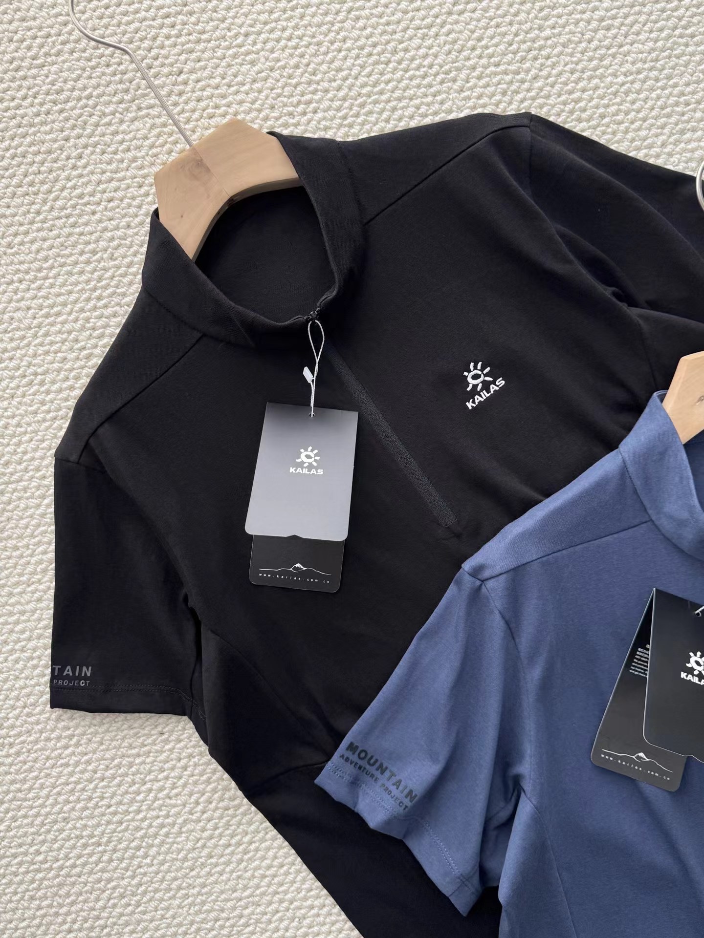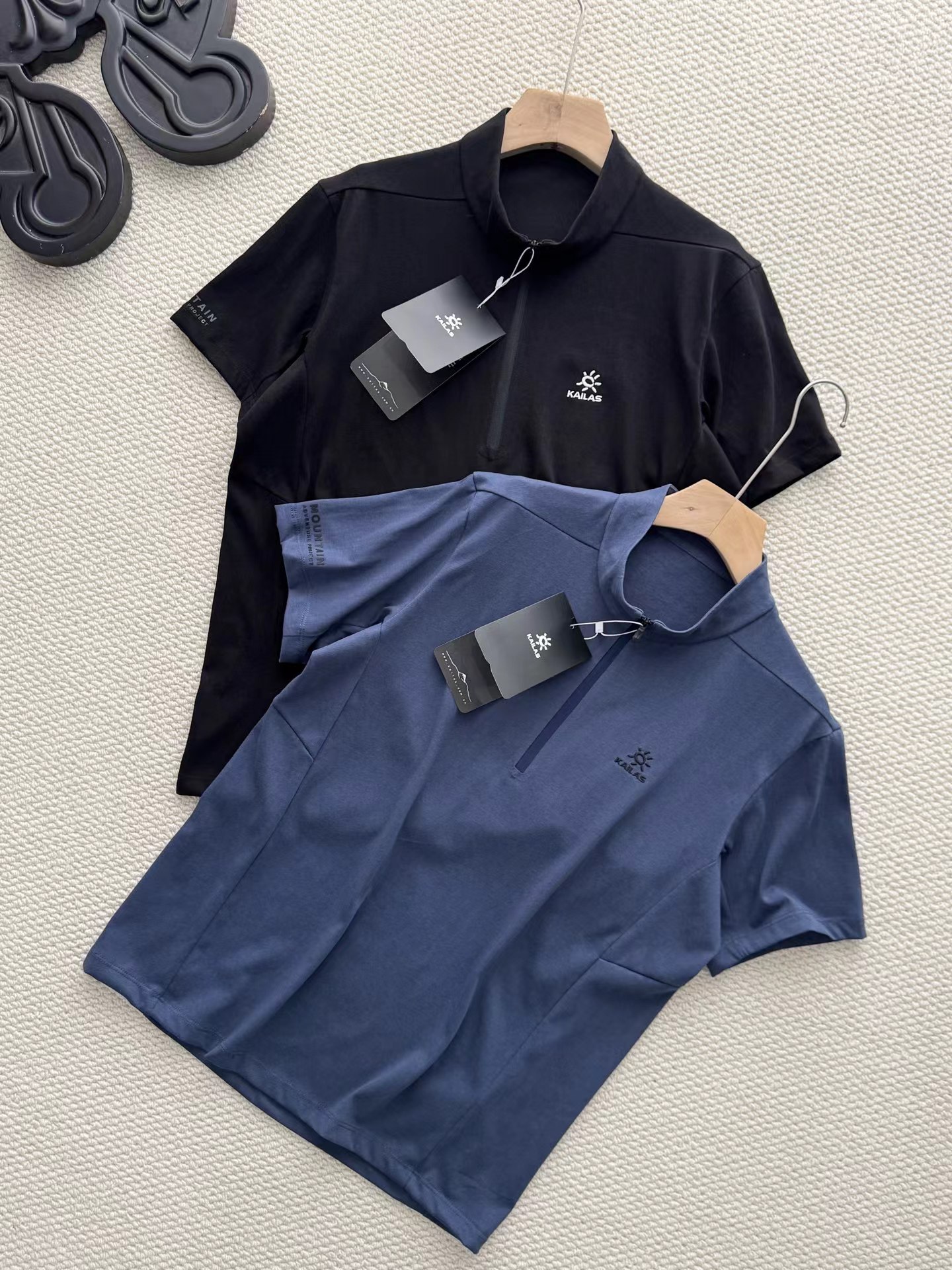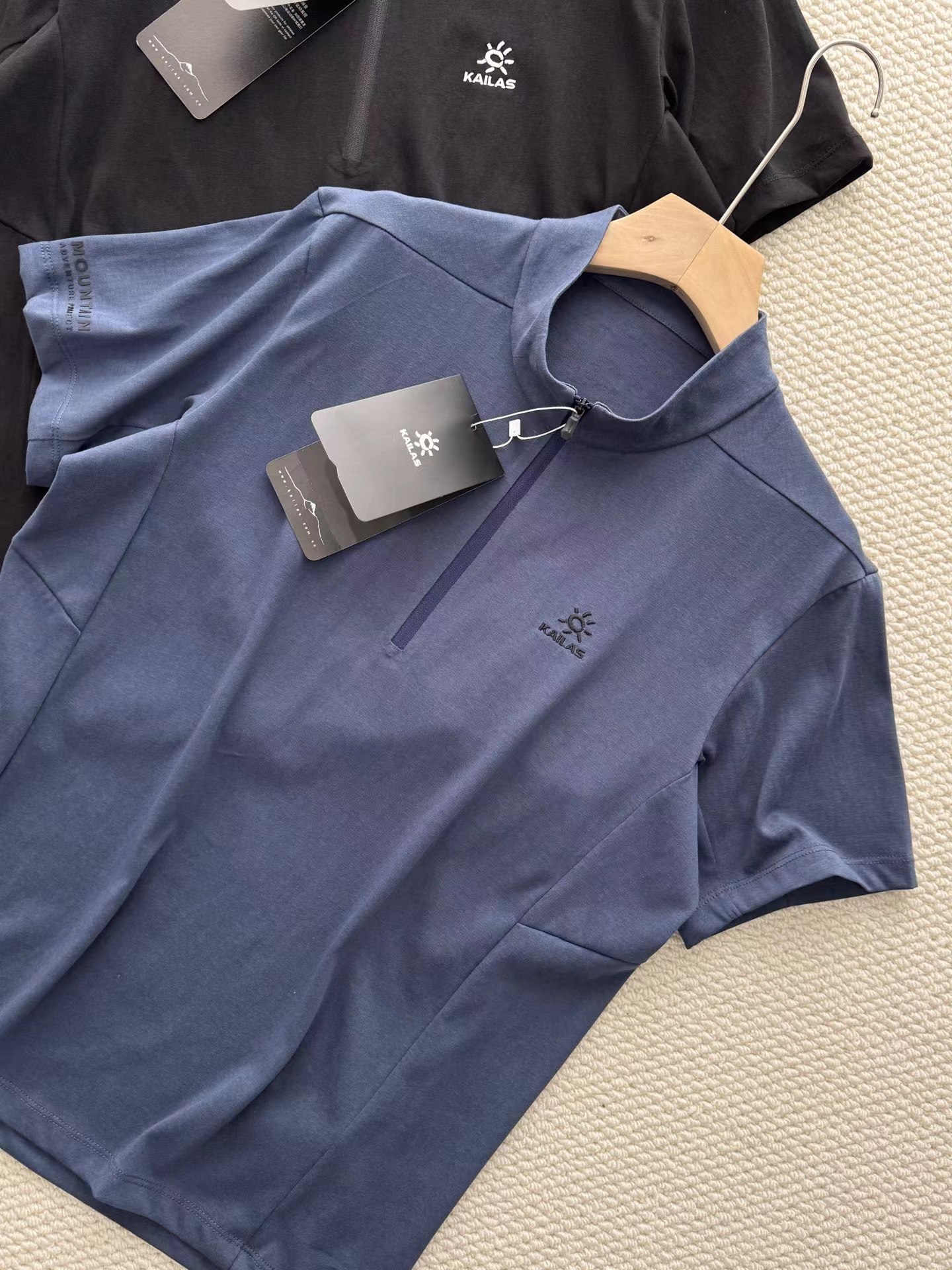 半开拉链速干T恤 | 城市户外双栖的舒适之选。 版型剪裁:修身不紧绷的H型剪裁,利落线条兼顾运动舒展性与日常穿搭的干练感,不挑身材,男女皆可驾驭。色彩选择:jing典黑与雾感藏蓝双色可选,黑色沉稳百搭,藏蓝低调显气质,轻松适配通勤、徒步、citywalk等多种场景。细节质感:半开拉链立领设计,可自由调节领口开合度,兼顾防风与透气需求;胸口同色系刺绣Logo,低调不张扬;侧腰与后背采用立体拼接车线,提升穿着贴合度与活动自由度。 功能性:速干透气,全天候舒适。速干面料:采用高弹速干功能面料,吸湿排汗性能优异,运动后能快速导出汗液,保持肌肤干爽舒适,避免闷热黏腻。透气亲肤:面料本身具备良好透气性,同时在腋下、后背等易闷汗区域做了优化剪裁,加速空气流通,长时间穿着也无束缚感。实用细节:袖口微弹收口设计,贴合手腕不紧绷;下摆平直剪裁,日常塞裤腰或外穿都利落有型,不易变形起皱。它不止是一件户外速干衣,更是适配现代生活的多功能通勤T恤: 日常通勤:搭配牛仔裤、休闲裤或西装裤,简约干练,尽显都市精英感。户外出行:搭配速干裤、登山鞋,轻装上阵,应对徒步、露营等轻户外场景。季节过渡:春秋季单穿清爽舒适,夏季作为基础内搭也不闷汗,是四季皆宜的实用单品。