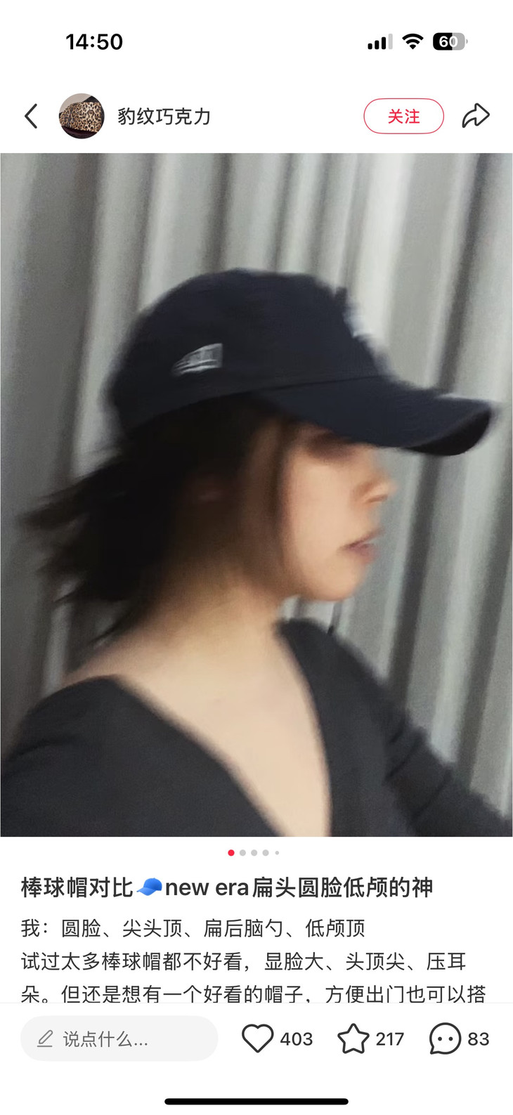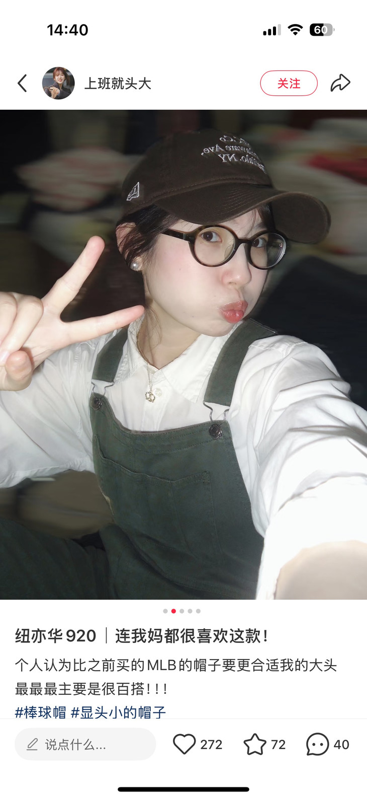 它比其他系列的帽子弯度更好 比颧骨宽那么一丢丢,完美修饰脸型 真的巨巨显脸小!!上头真的比所有的棒球帽🧢都要更好看!