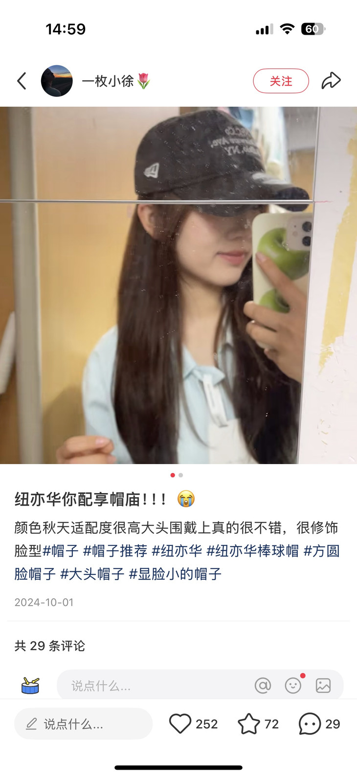 纽亦华真的泰泰绝了!!!怎么会有帽型这么好的帽子啊!!!