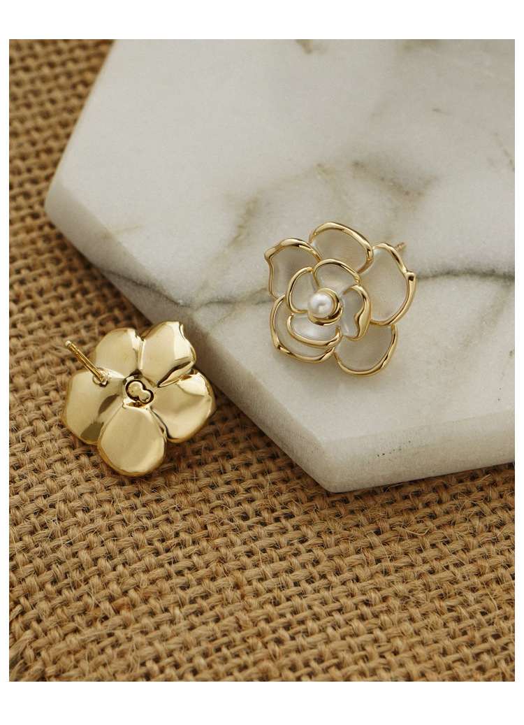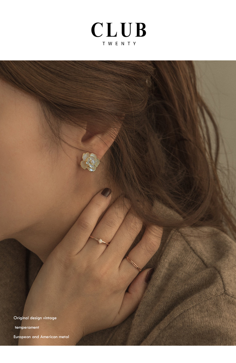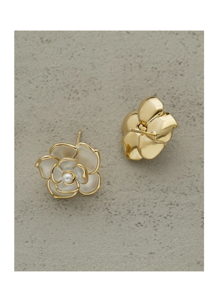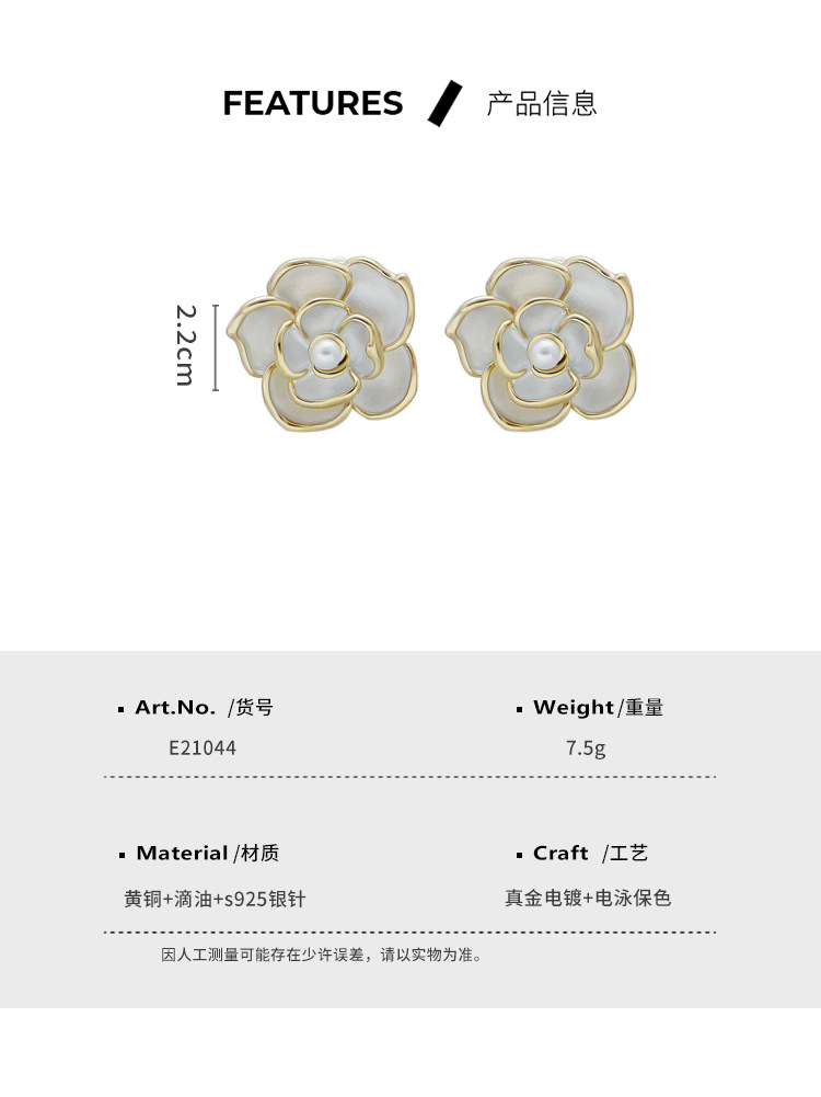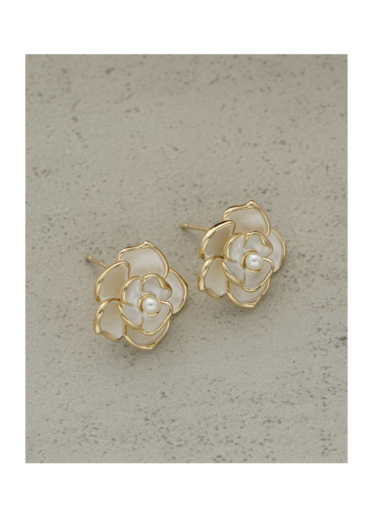 【耳环】欧美小众国风玫瑰花耳钉仙滴油金色耳环 珍珠简约精致个性耳环