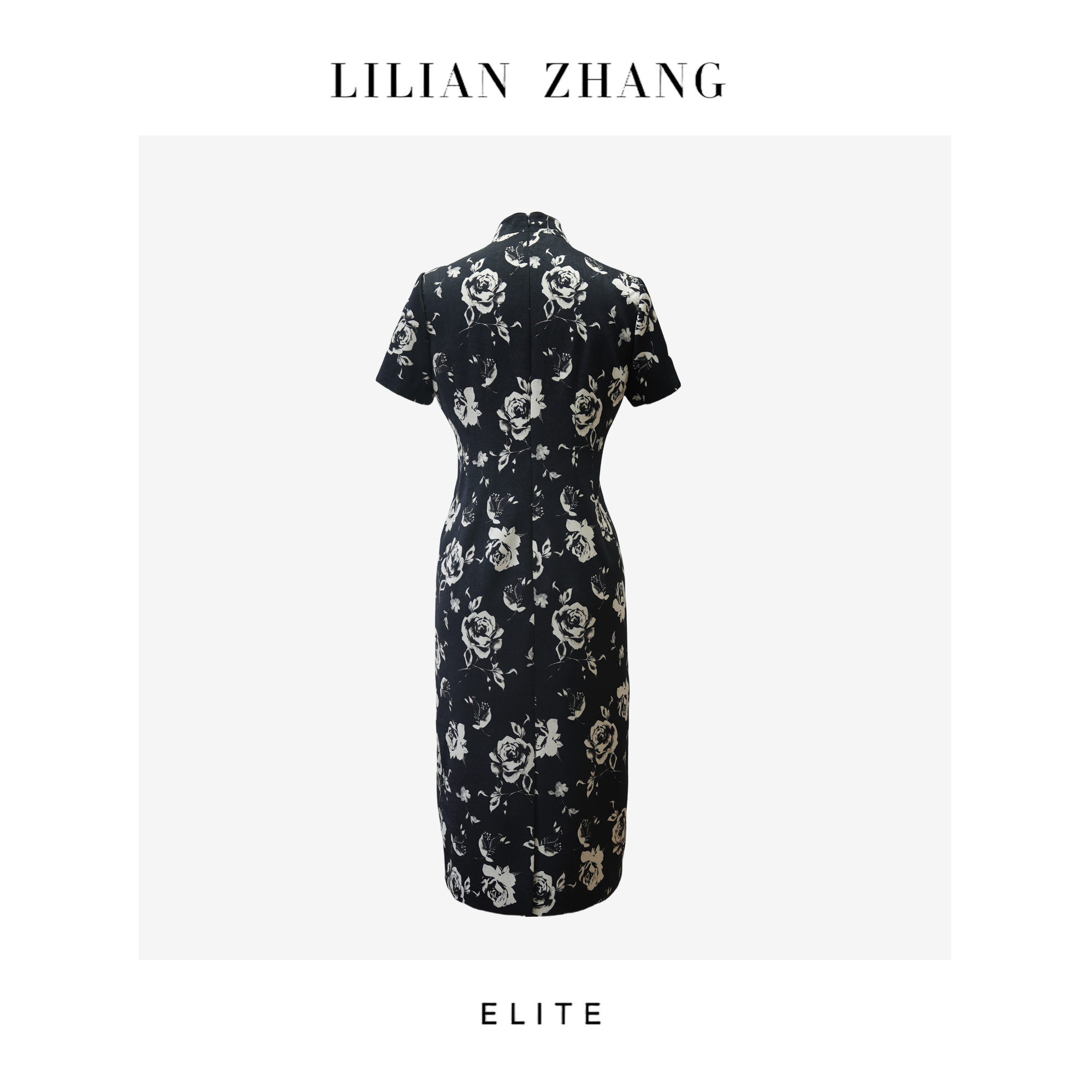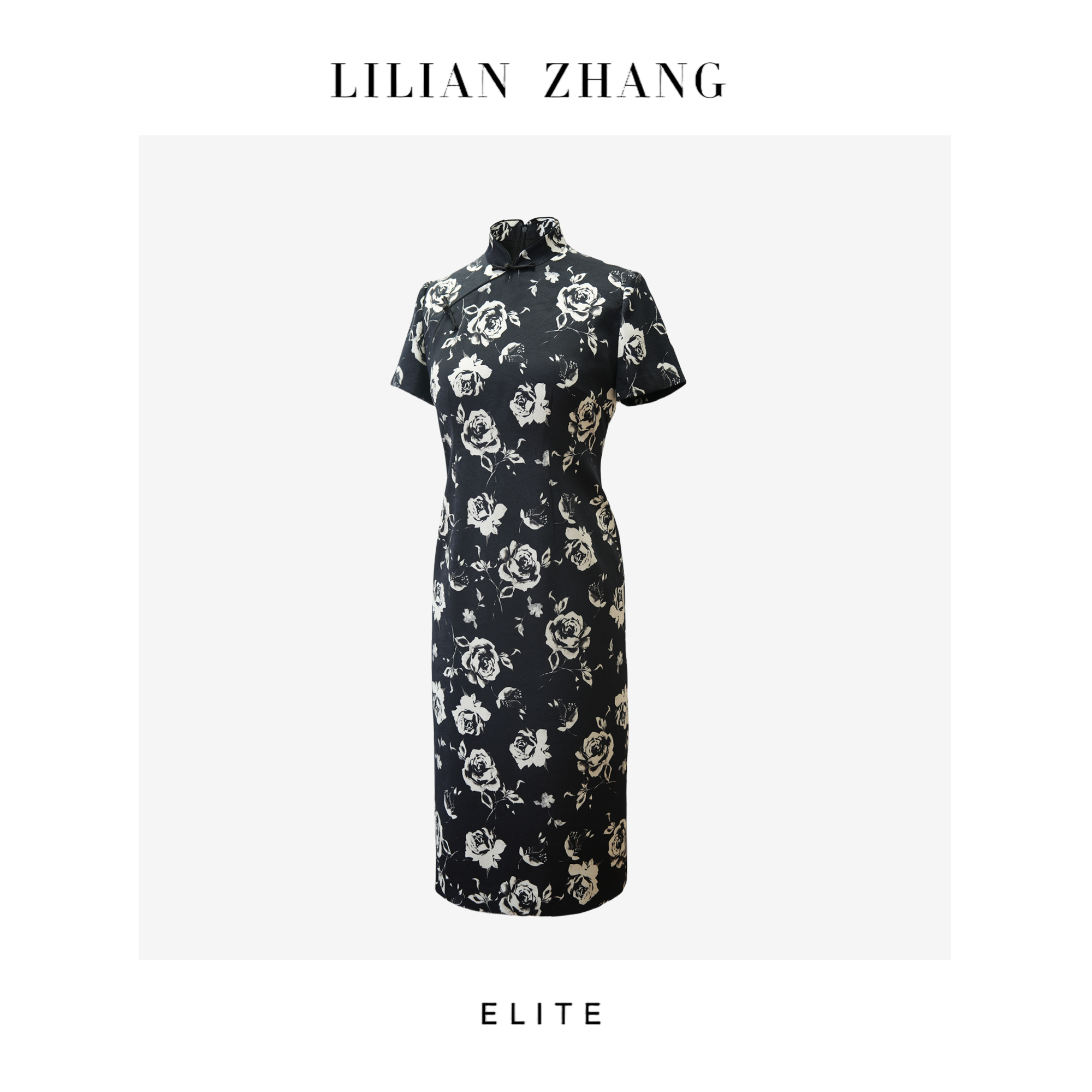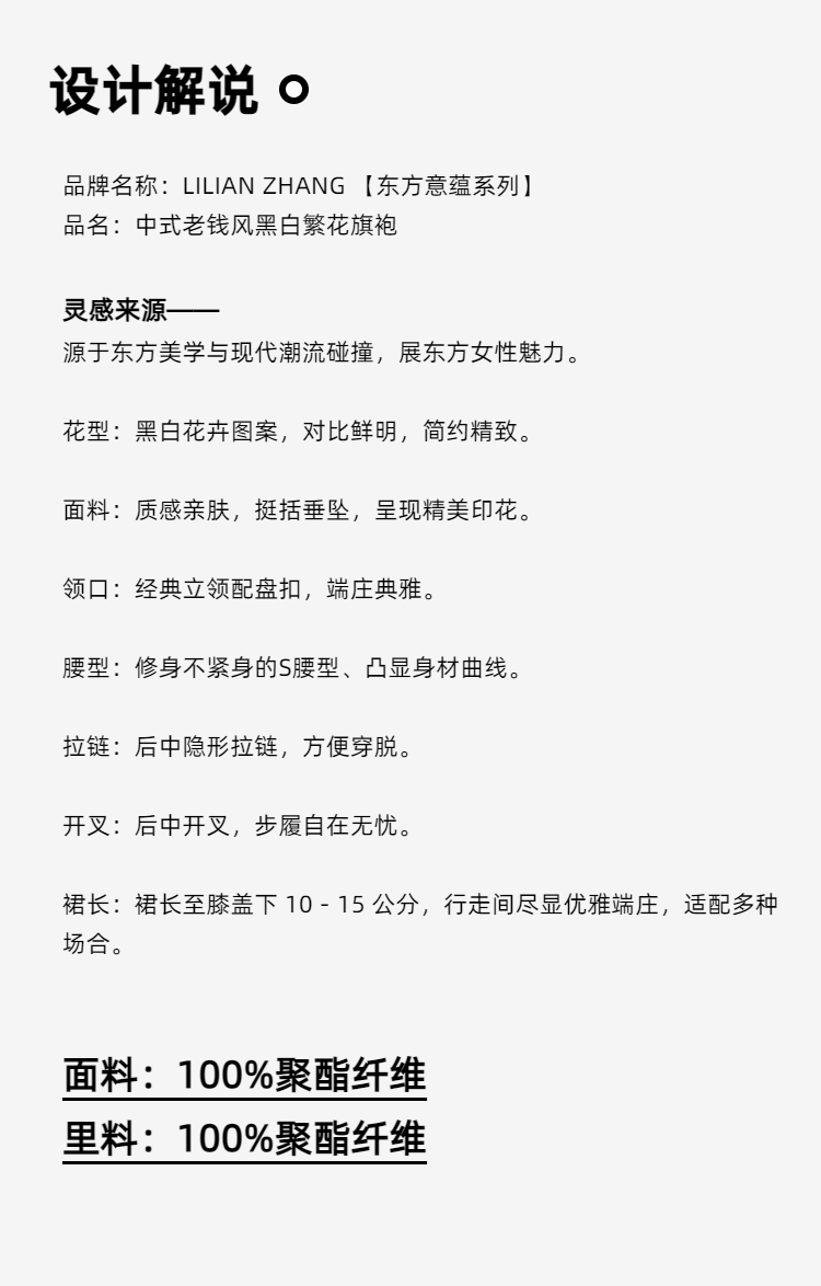 E-“定制”—「东方意蕴」——“中式老钱”——黑白繁花旗袍连衣裙 2501007
