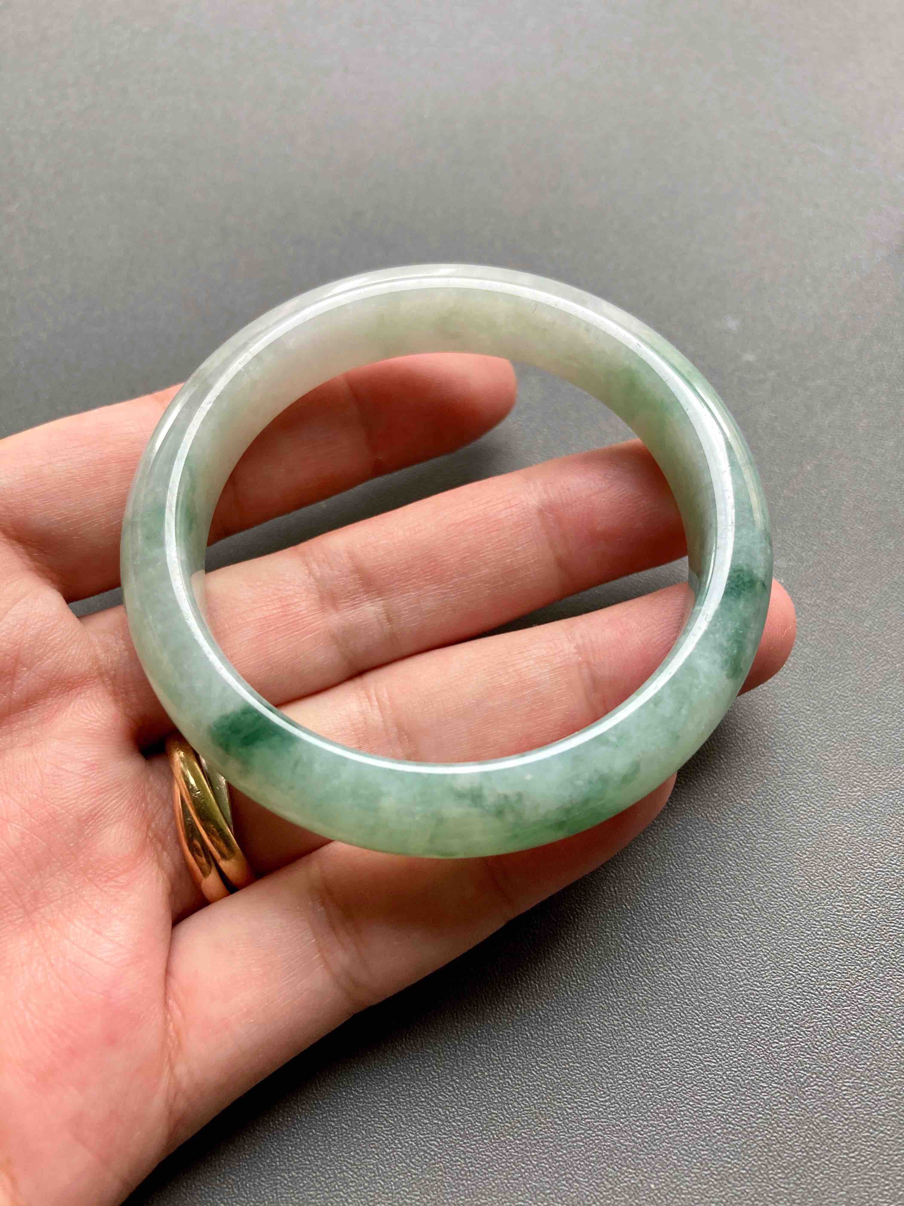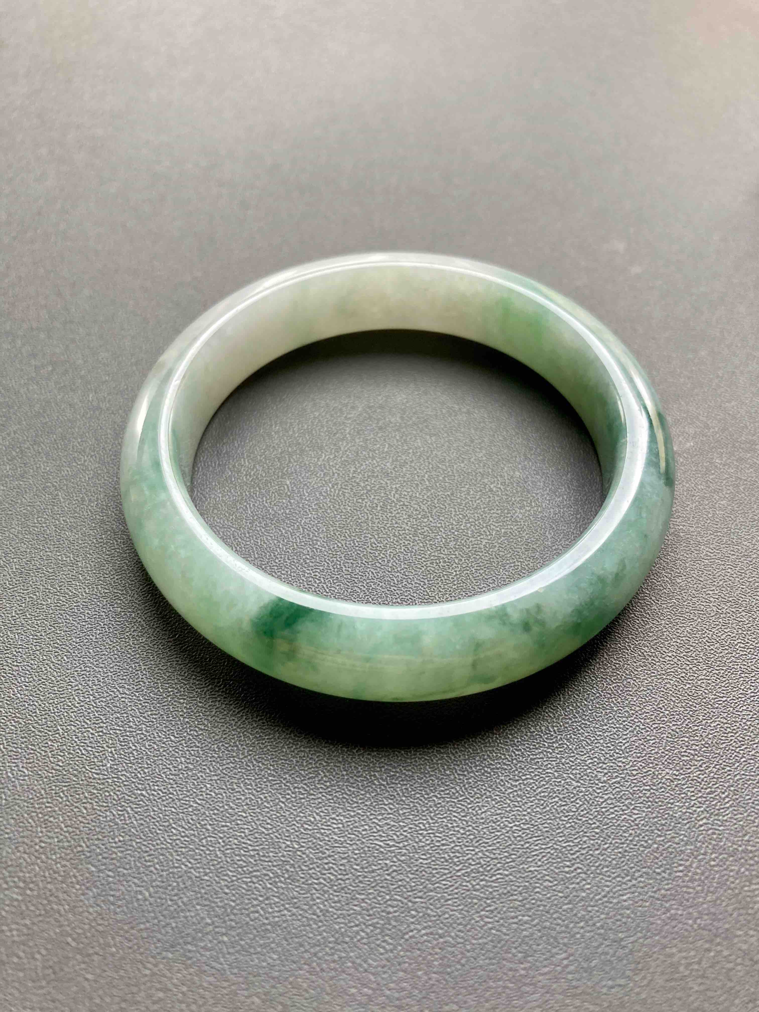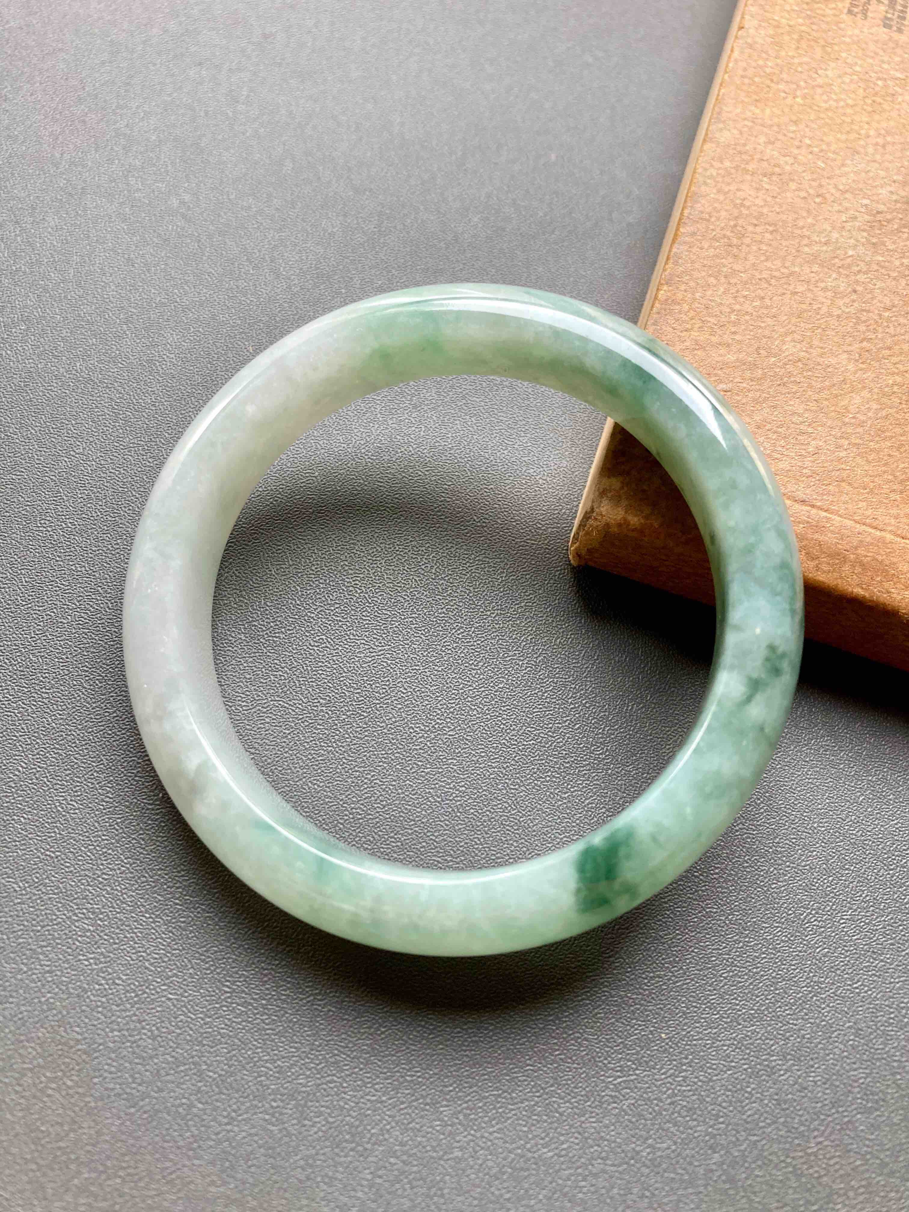 糯种飘花翡翠手镯52.6,种水细腻,飘花写意,难得的小圈口镯子,性价比超高,内径52.6宽11.9厚8.2mm,适合手寸51到53佩戴