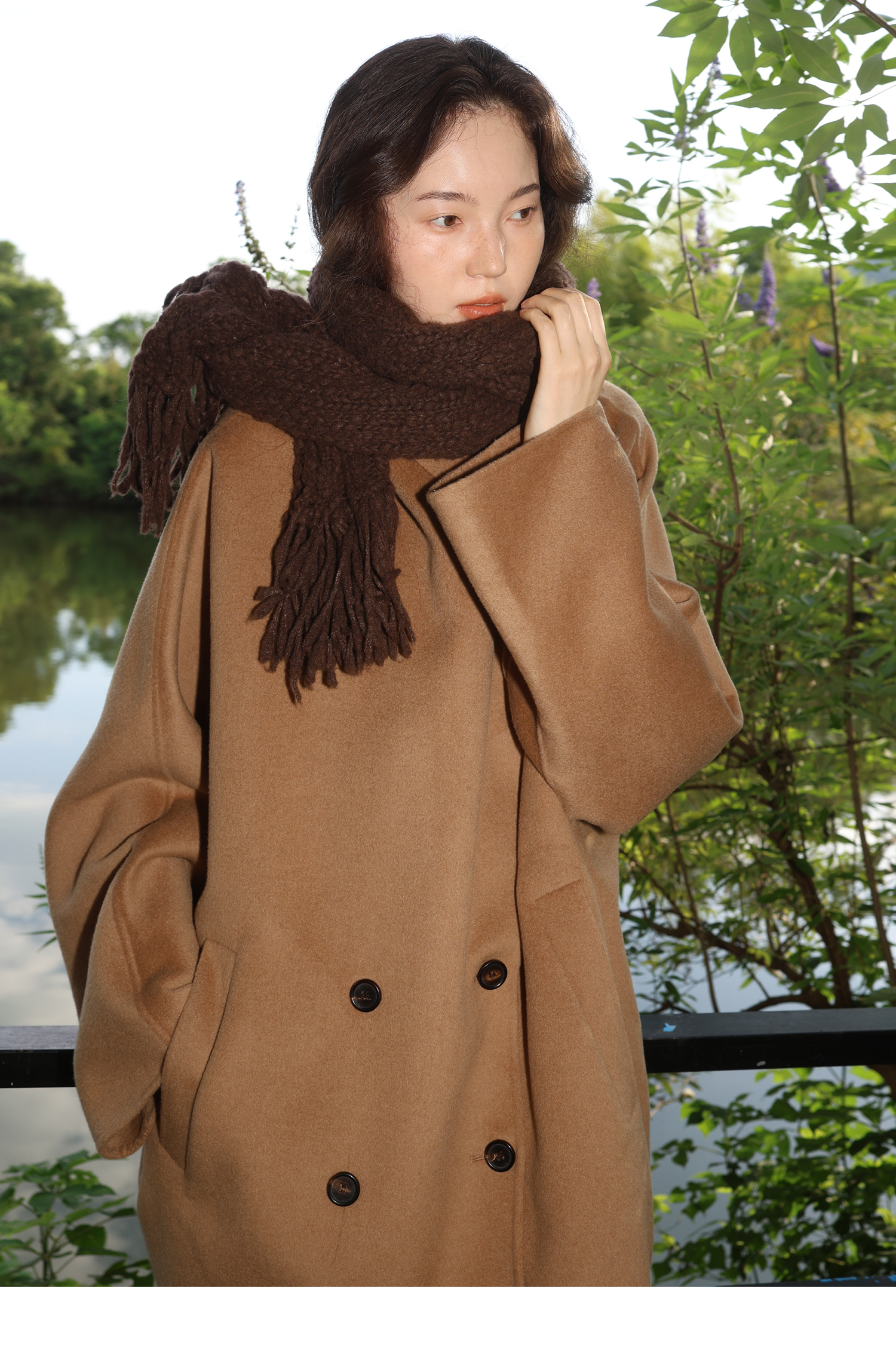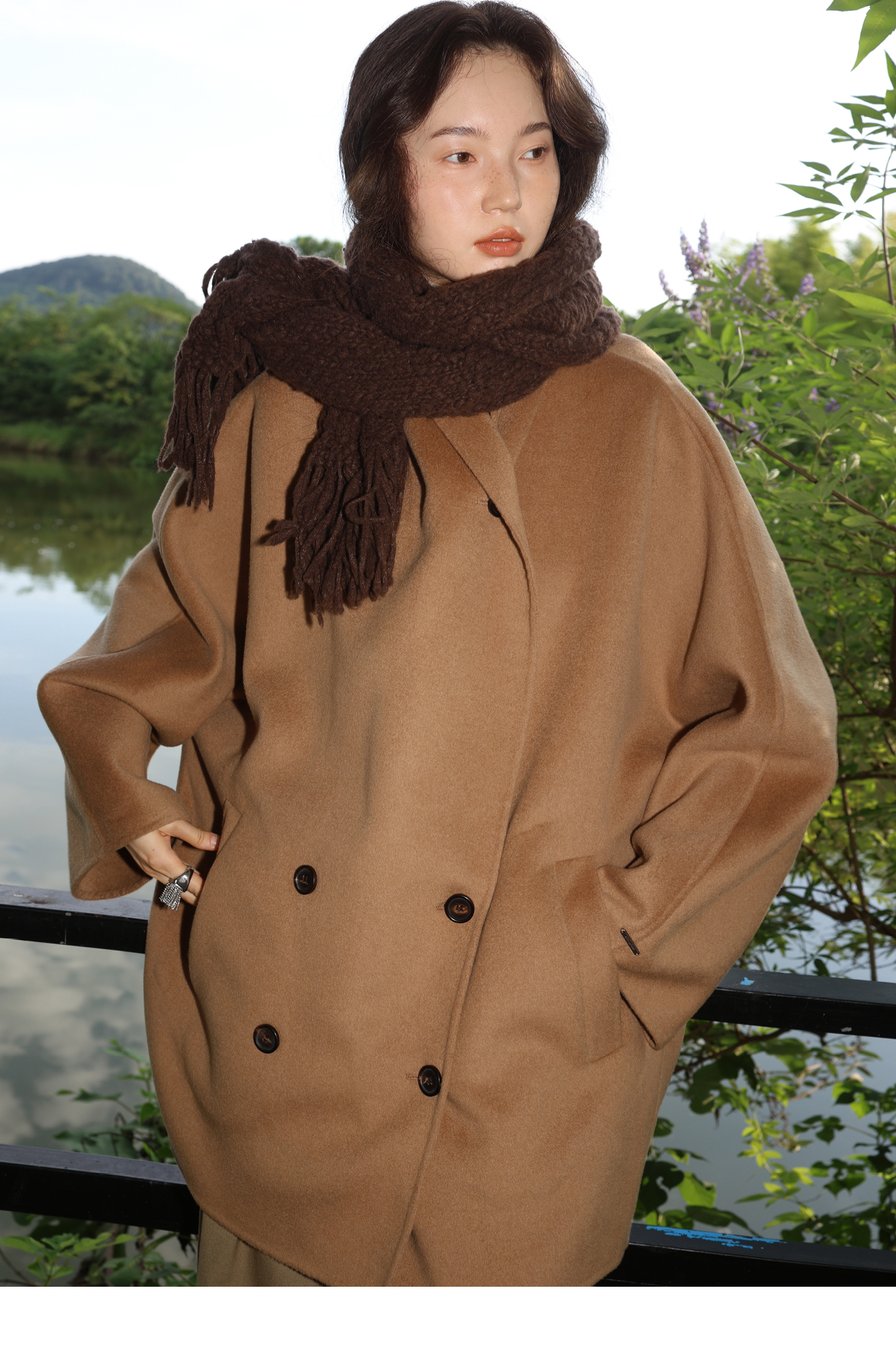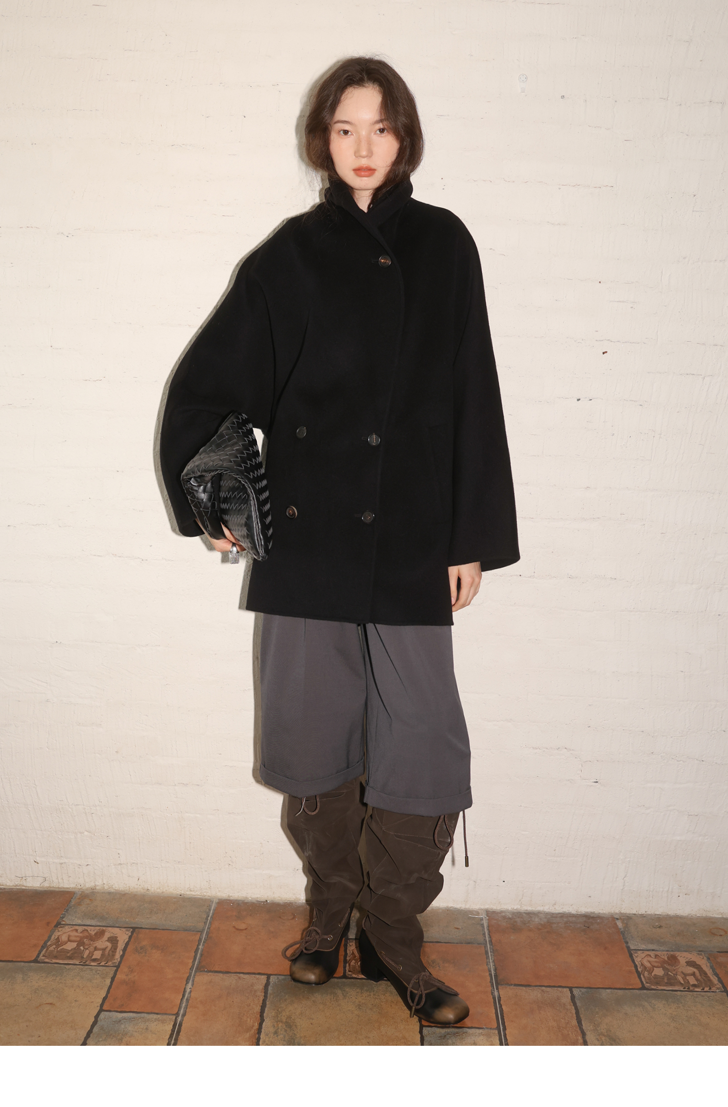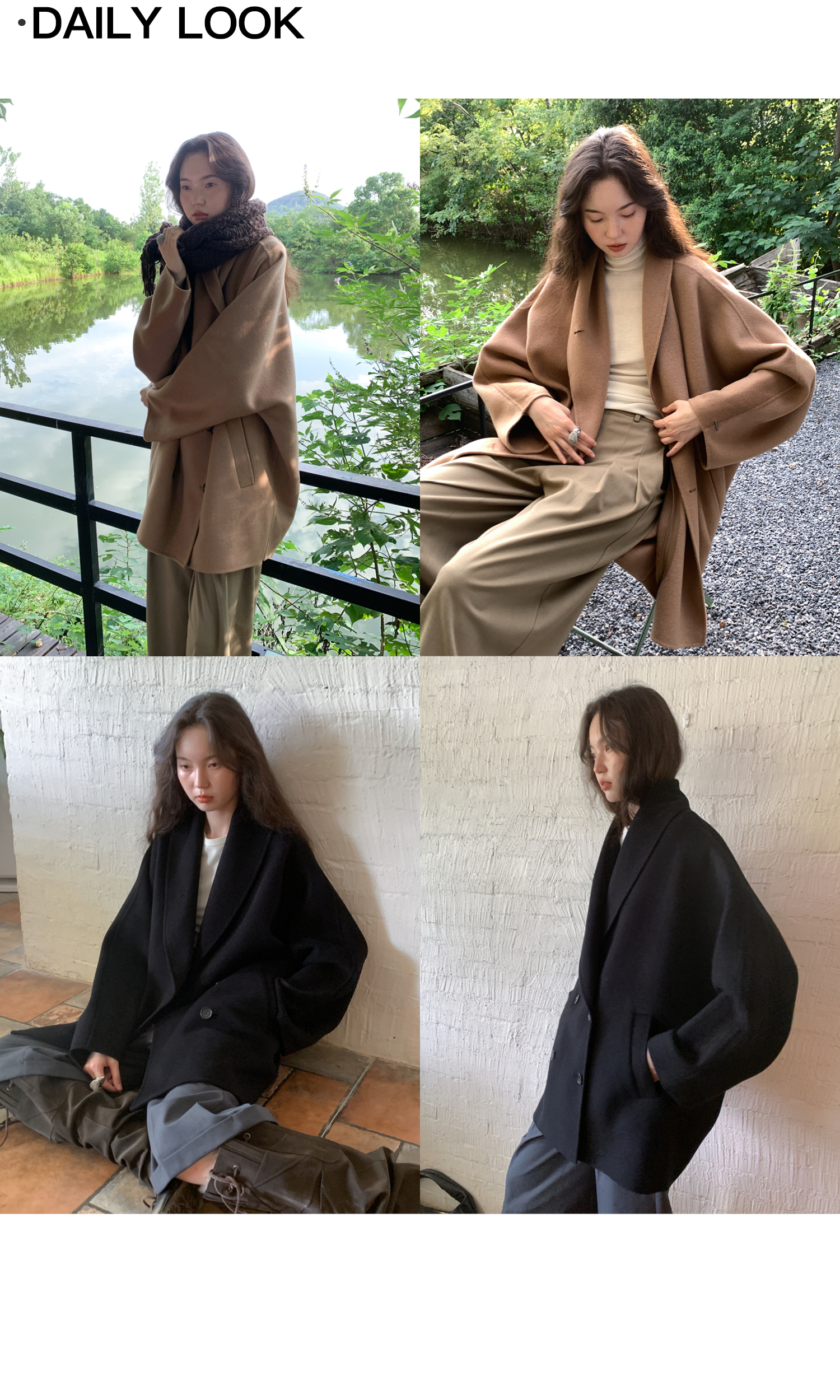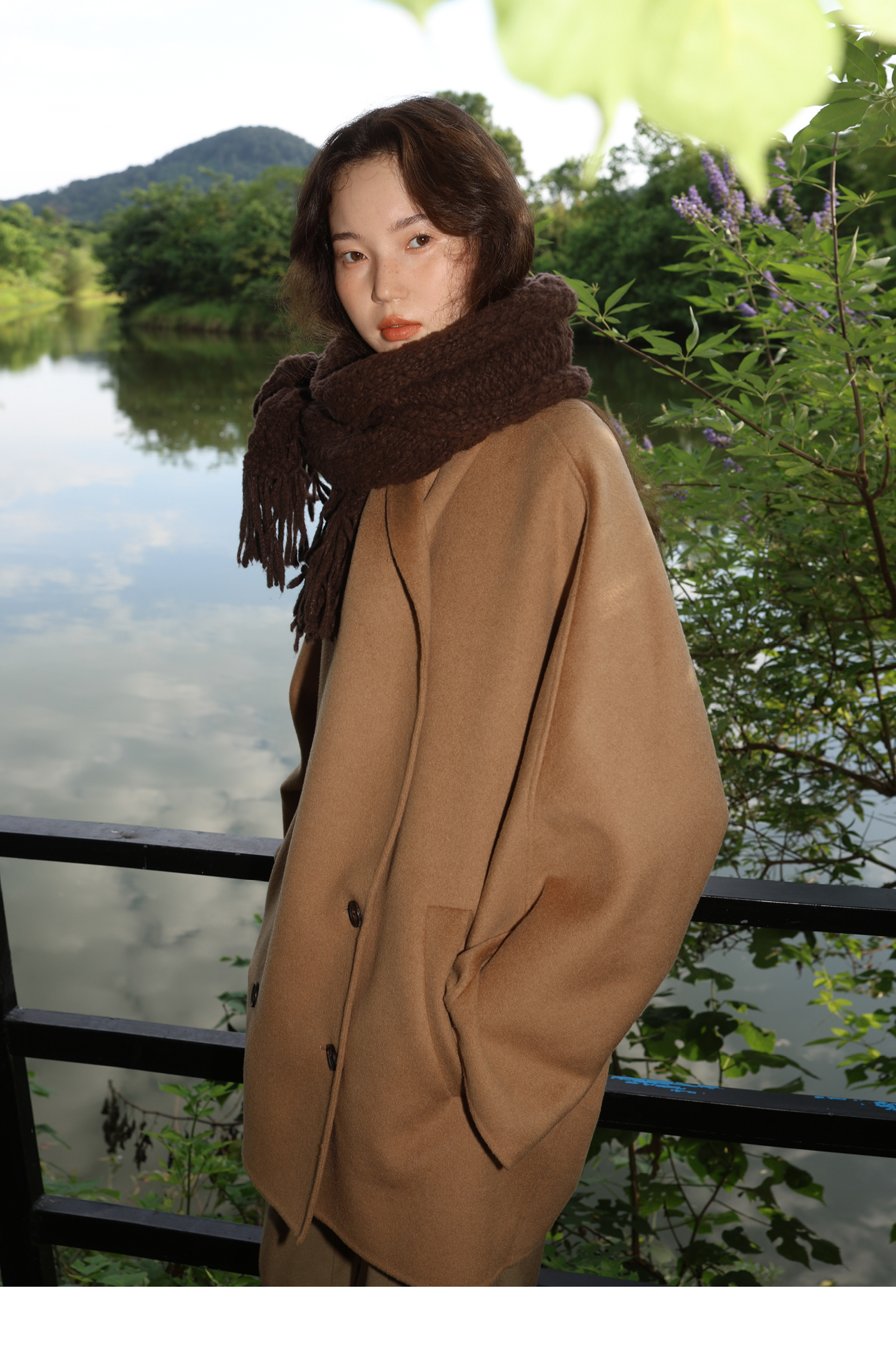 素舶 绵羊毛青果领双排扣松弛廓感宽松双面毛呢中长短款大衣外套