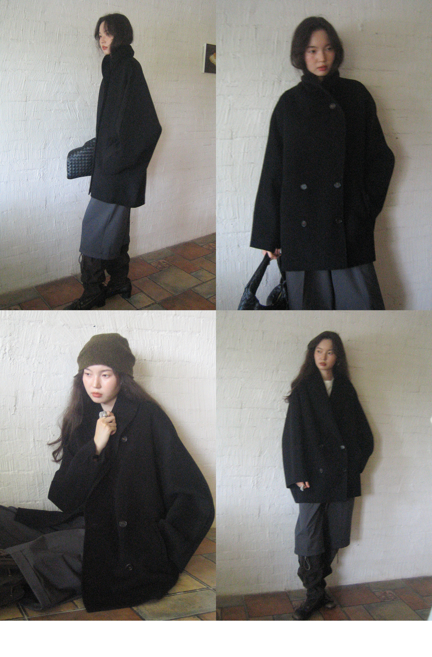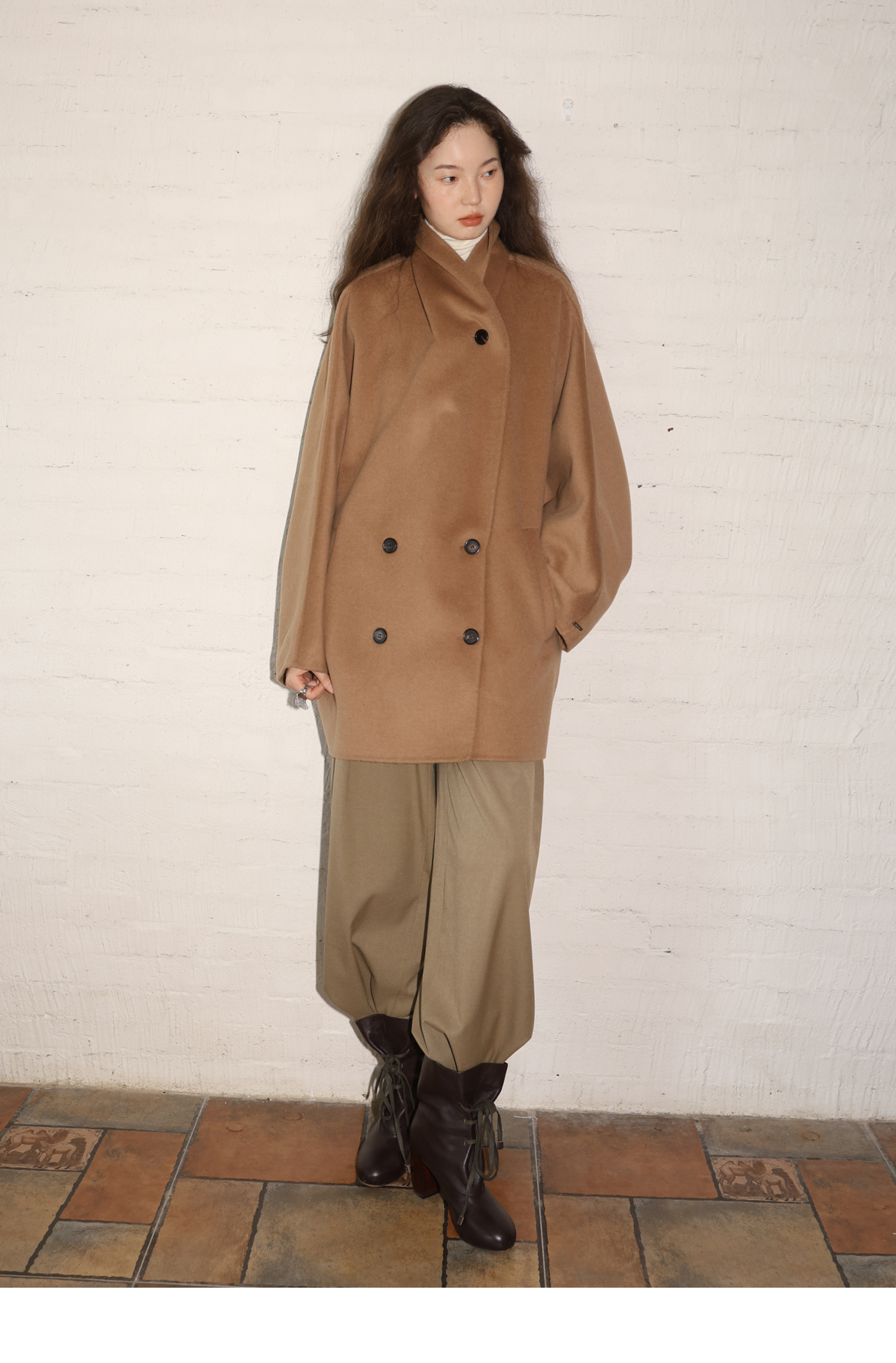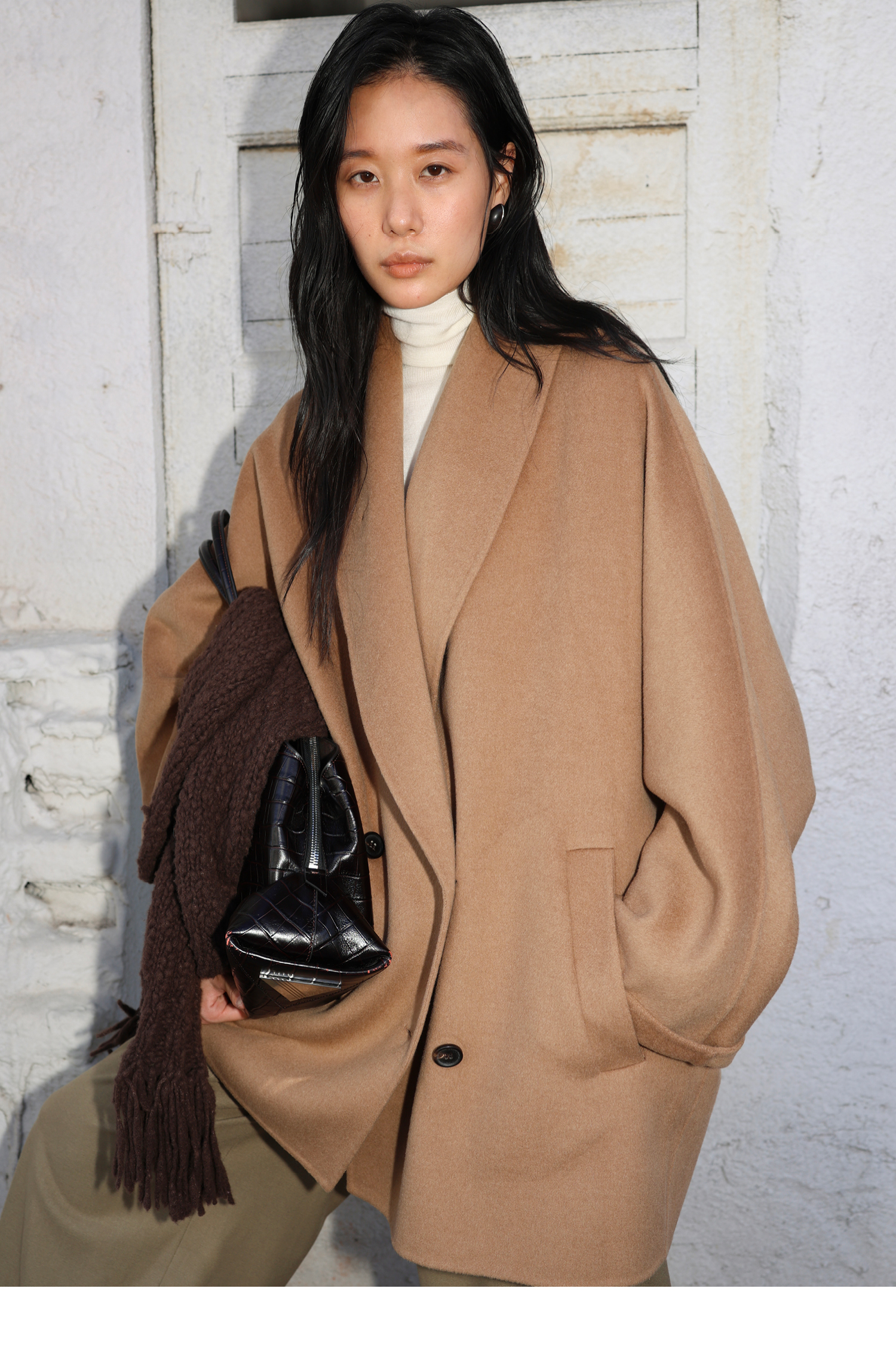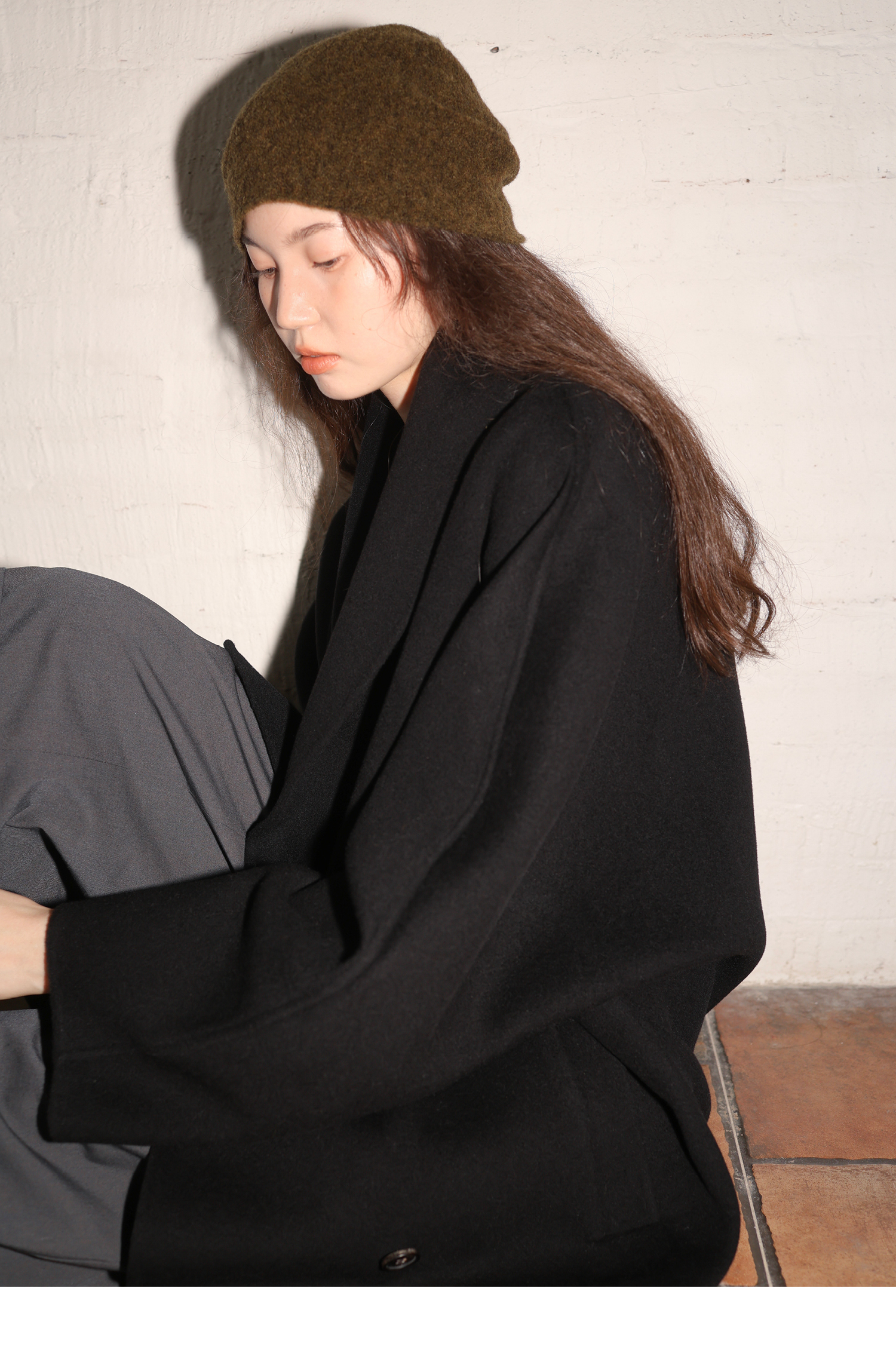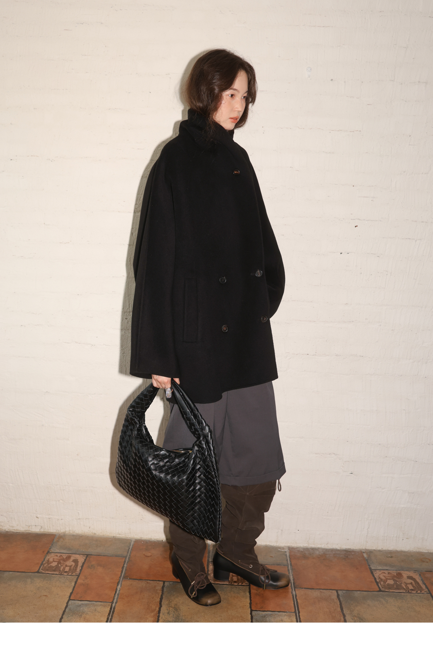 素舶 绵羊毛青果领双排扣松弛廓感宽松双面毛呢中长短款大衣外套