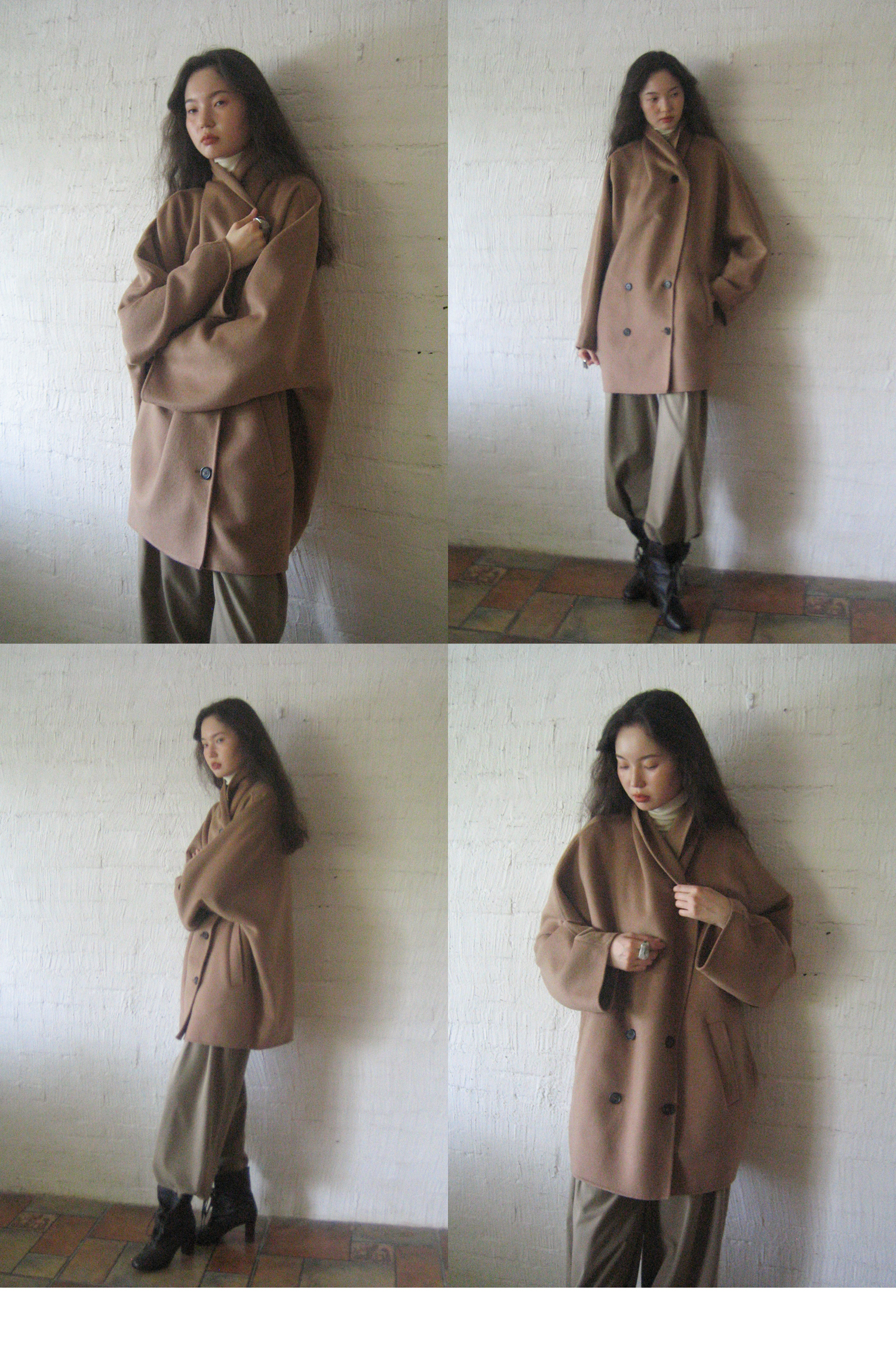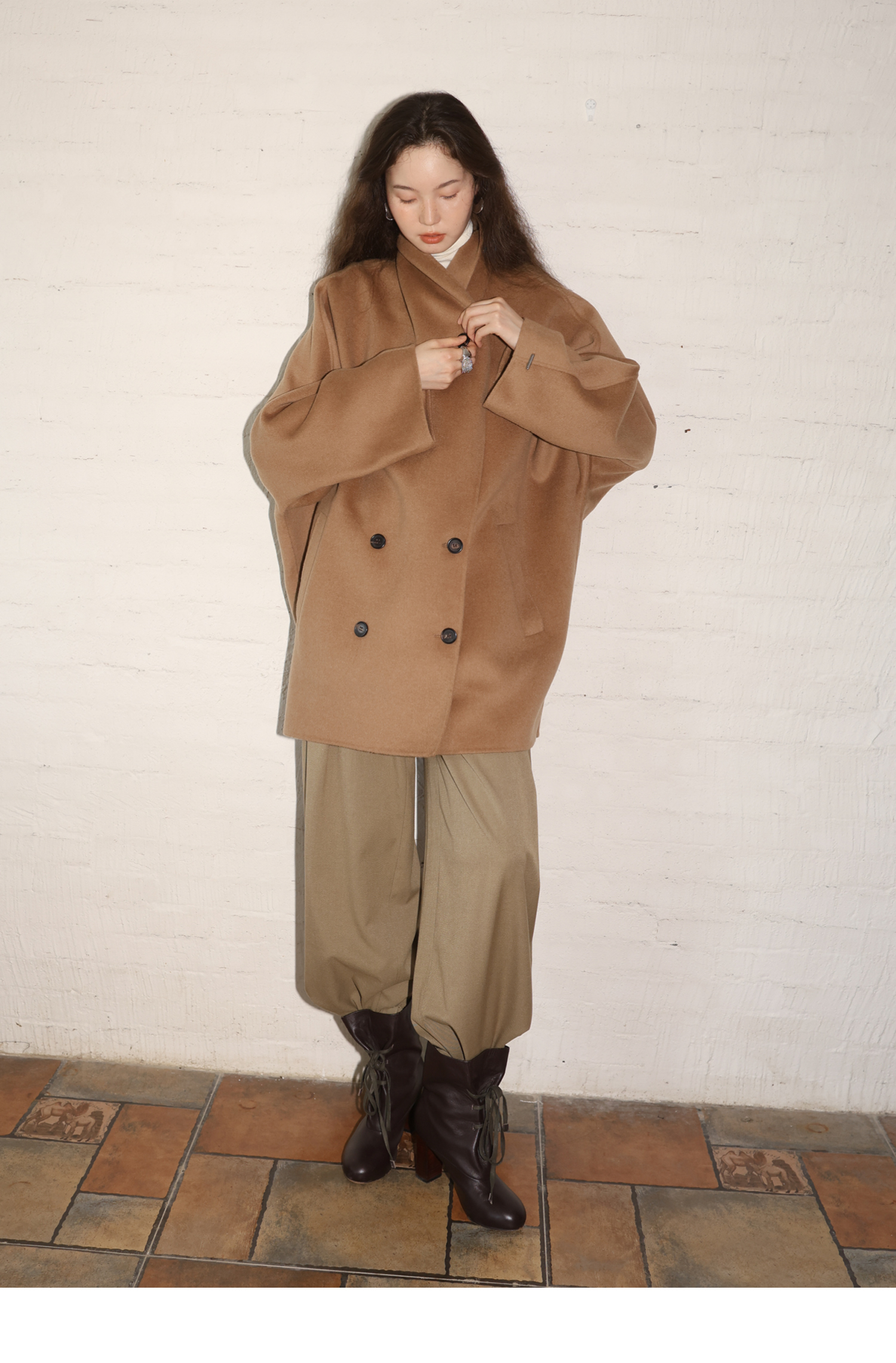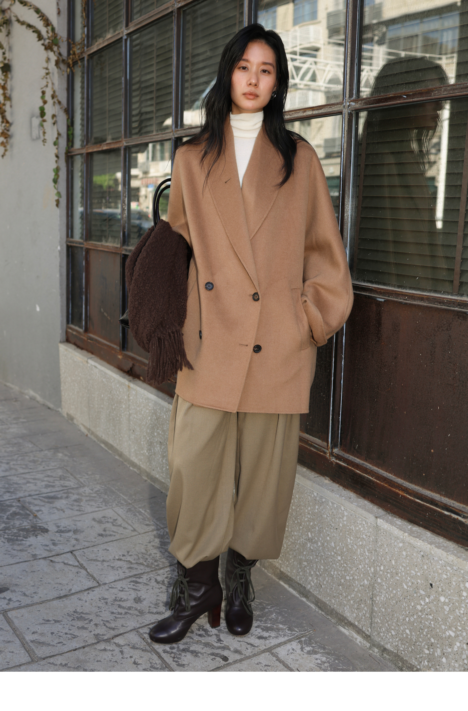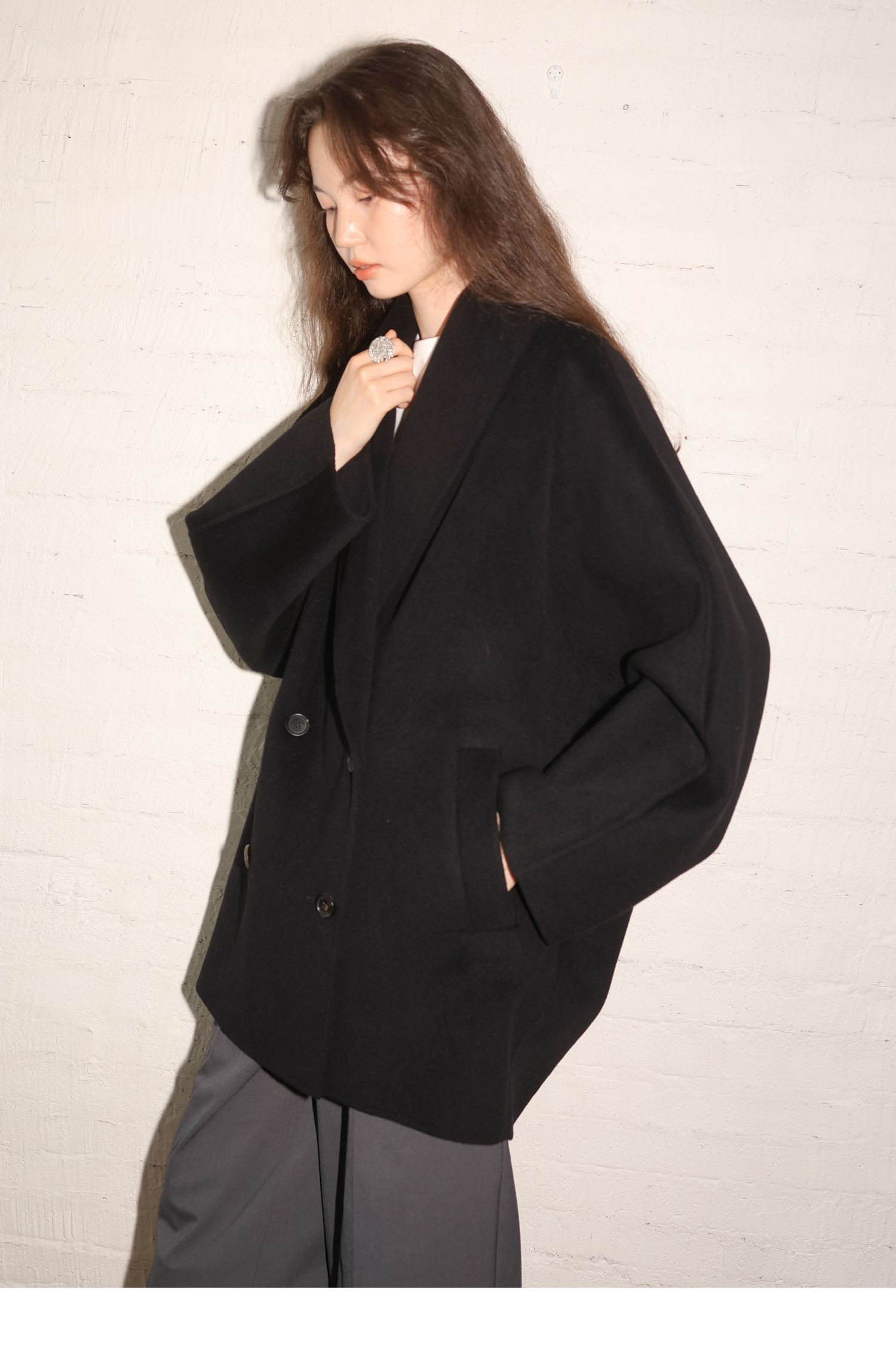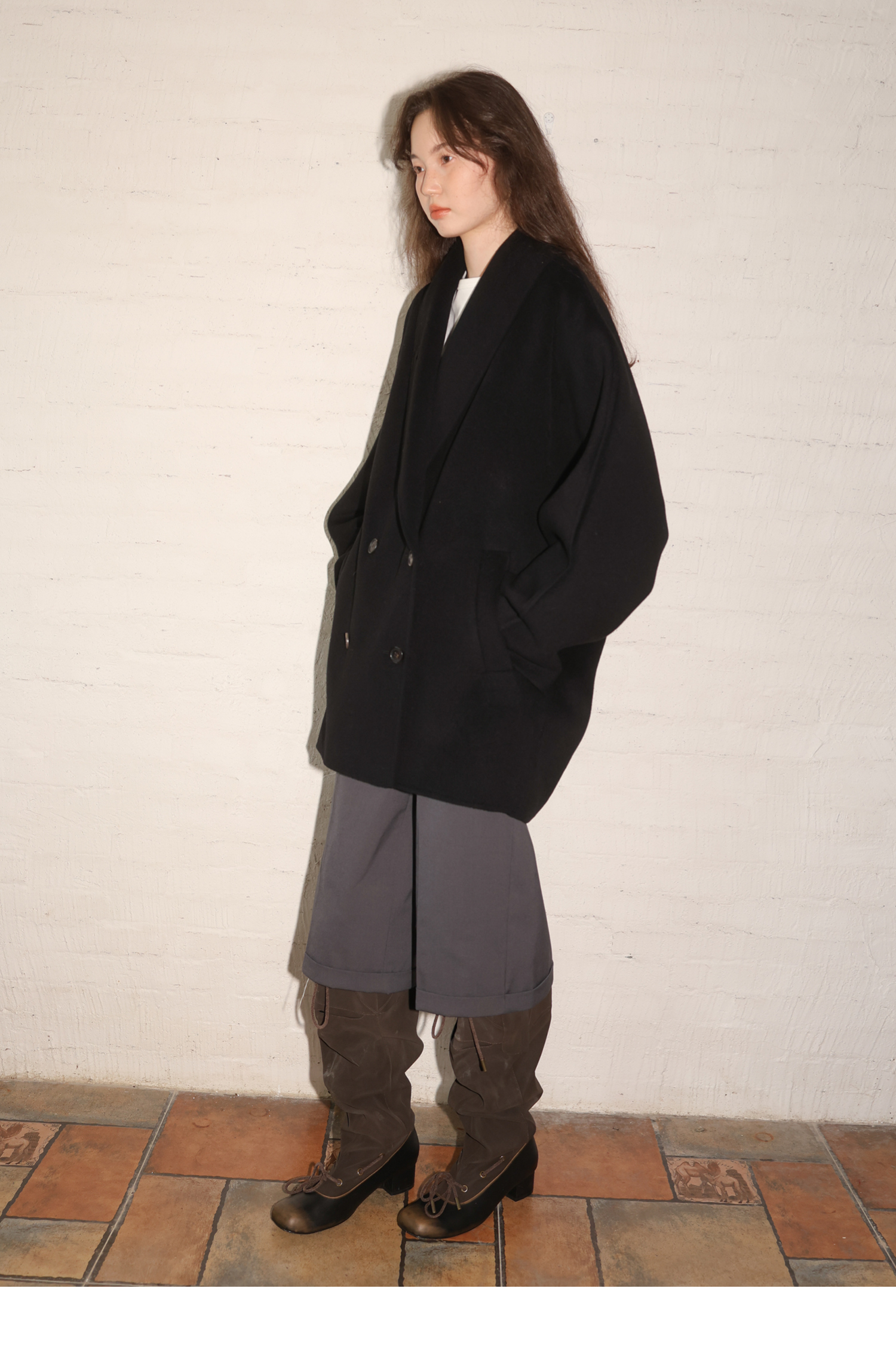 素舶 绵羊毛青果领双排扣松弛廓感宽松双面毛呢中长短款大衣外套
