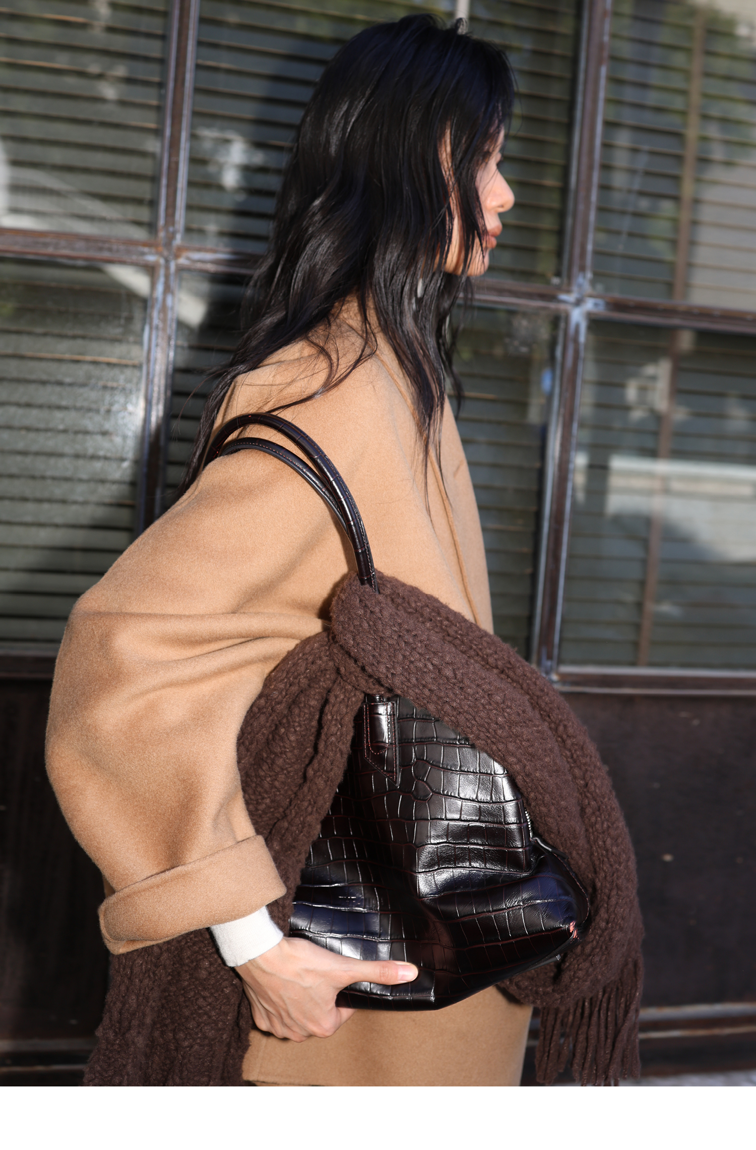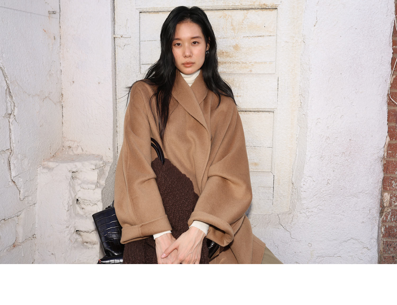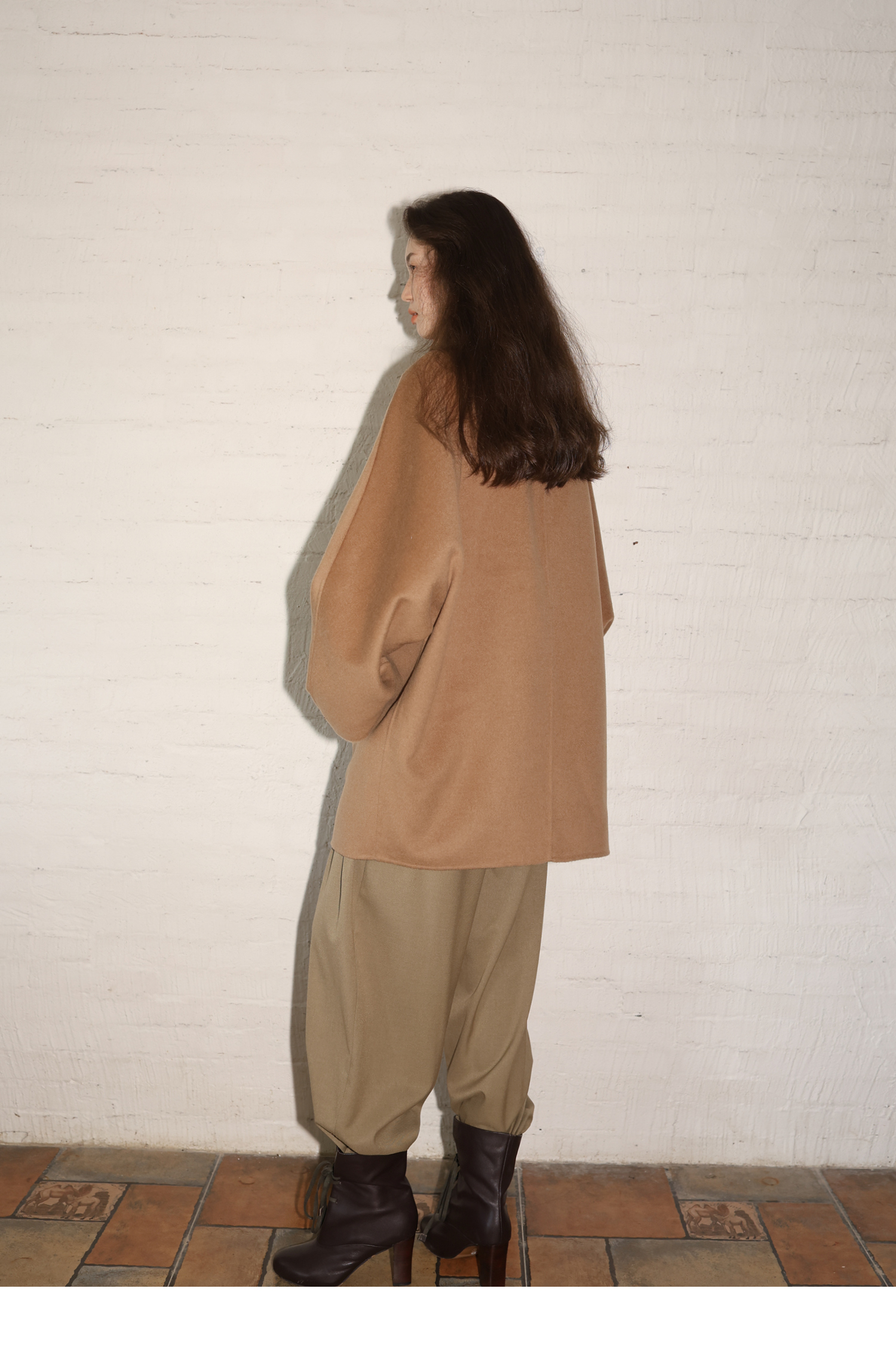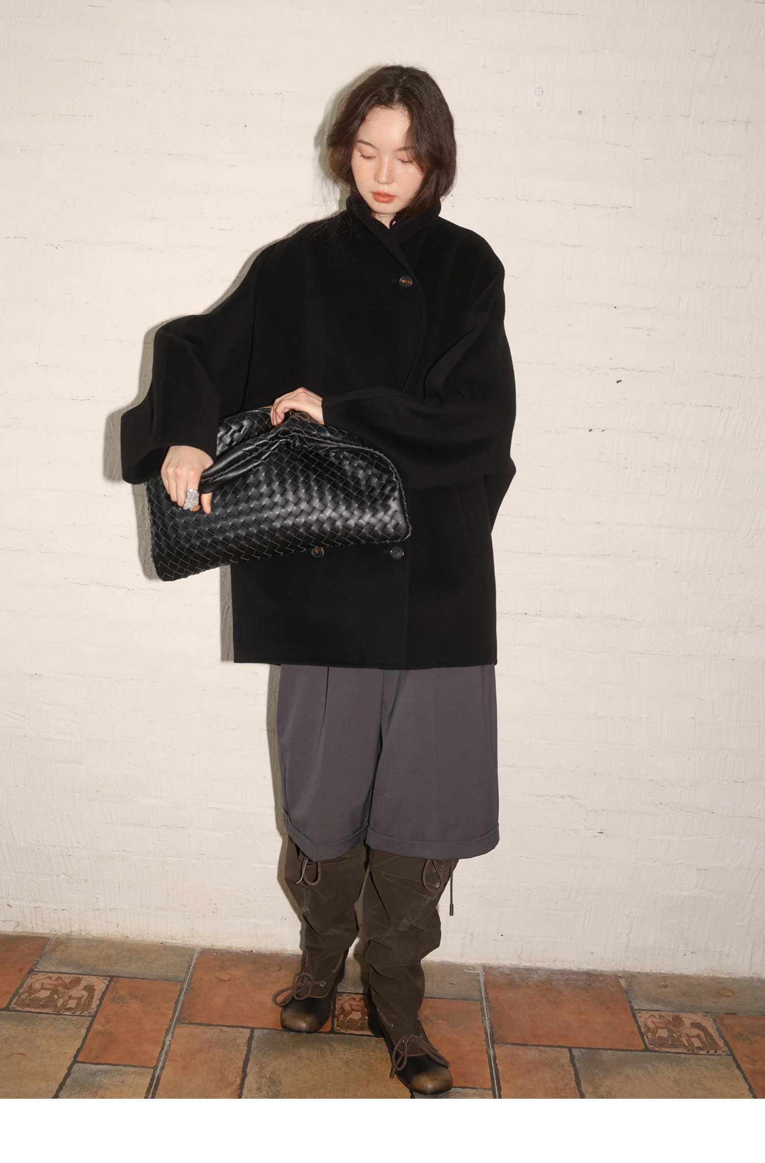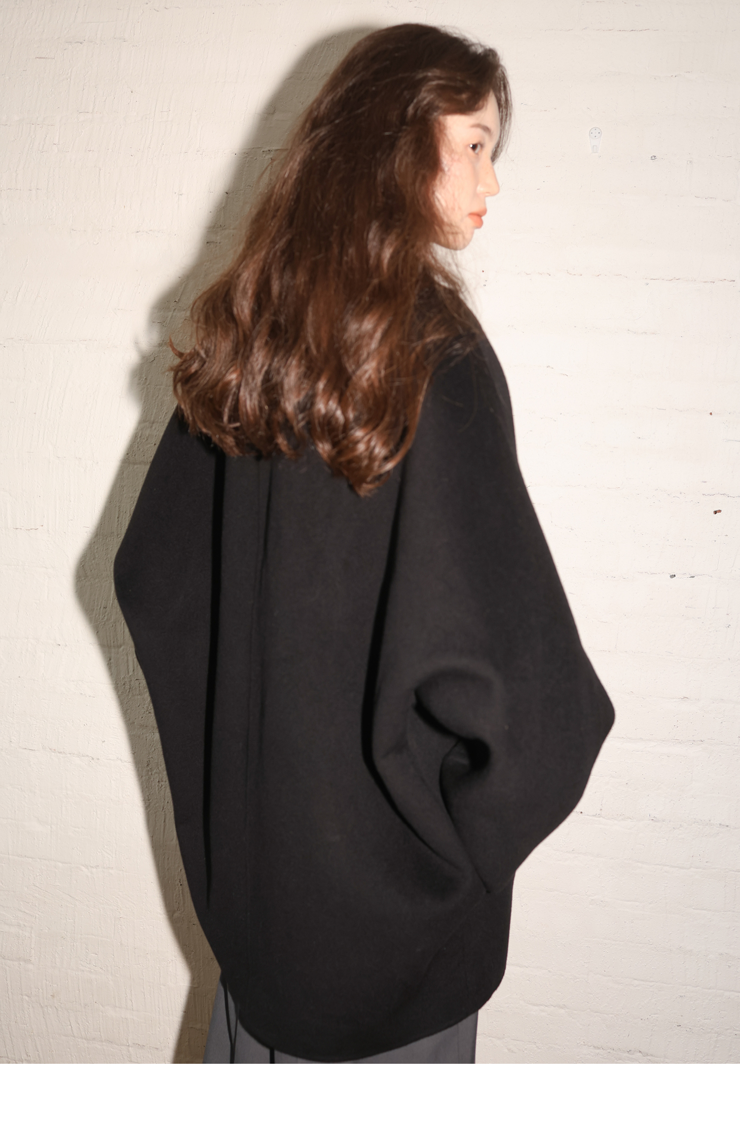 素舶 绵羊毛青果领双排扣松弛廓感宽松双面毛呢中长短款大衣外套