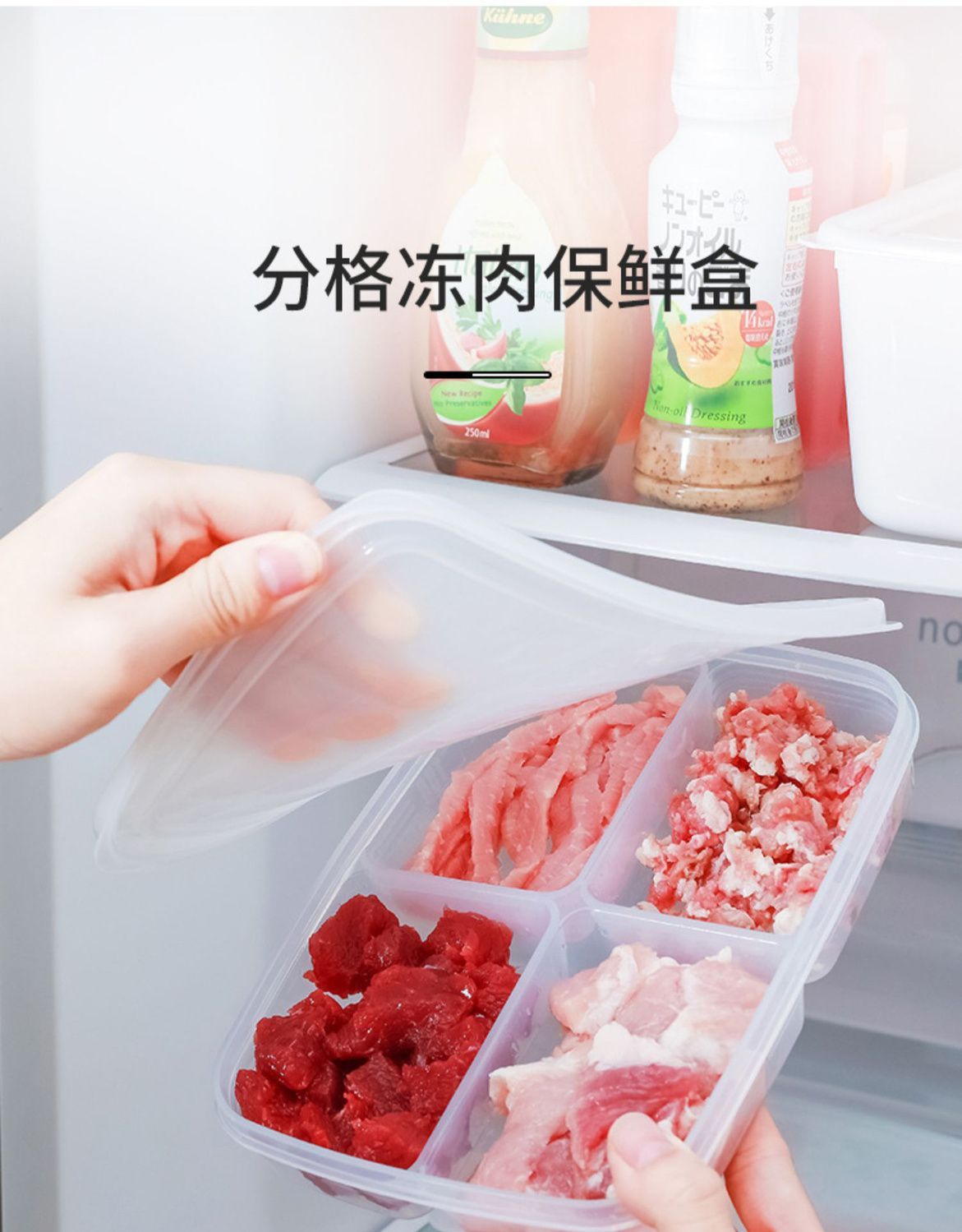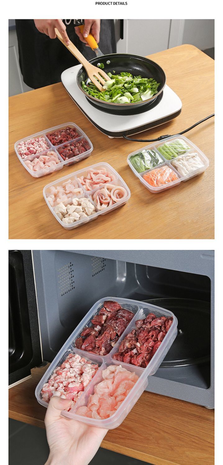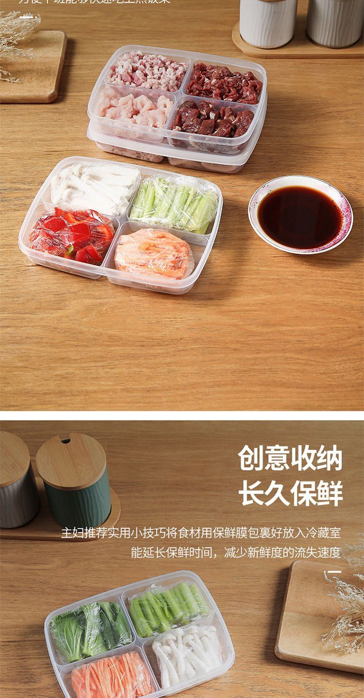 冻肉4分格冰箱收纳盒食物分装葱姜备菜保鲜盒储藏盒