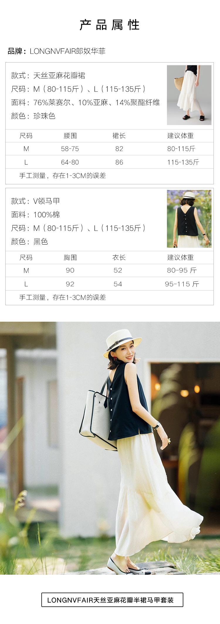 LONGNVFAIR天丝亚麻花瓣半裙马甲套装 | 夏日黑白配的高级感,轻松解锁干练都市风【预售3-7天发货】
