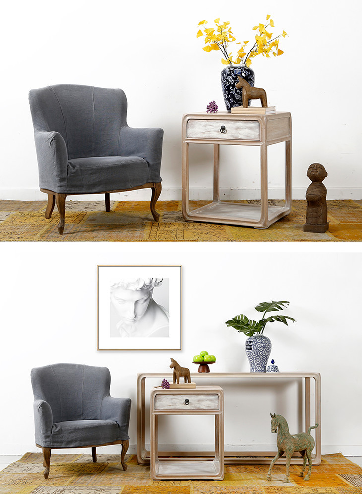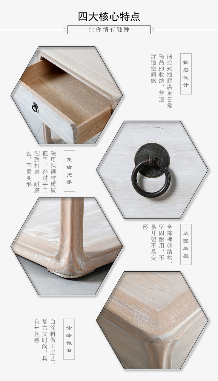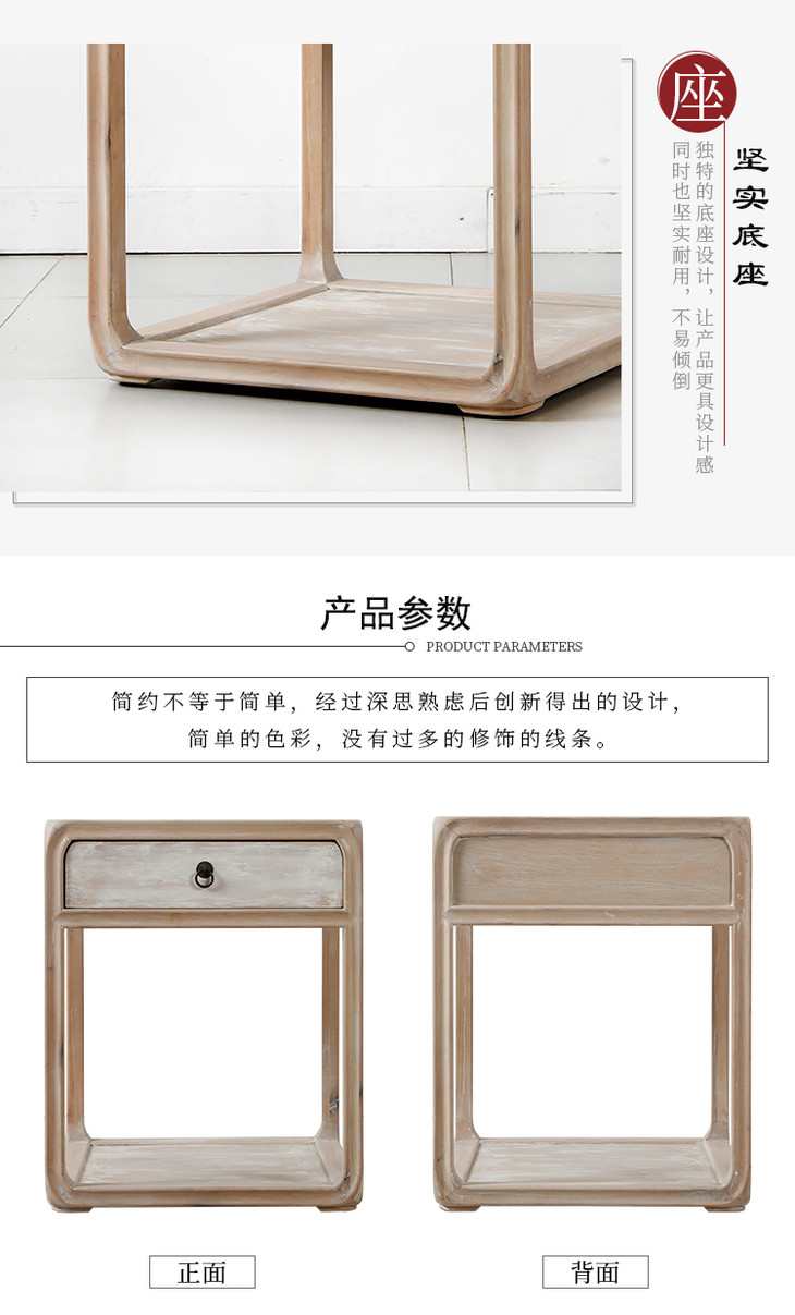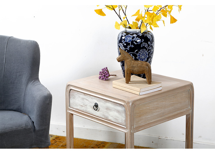 实木北欧床头柜卧室楸木储物柜简约现代 卧室一屉抽原木斗柜Side table QQ19040009