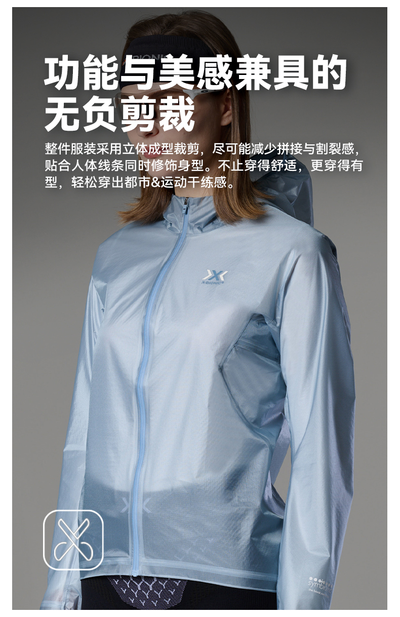 X-BIONIC 女款轻量防雨夹克 透气冲锋衣 运动户外压胶功能外套 23018