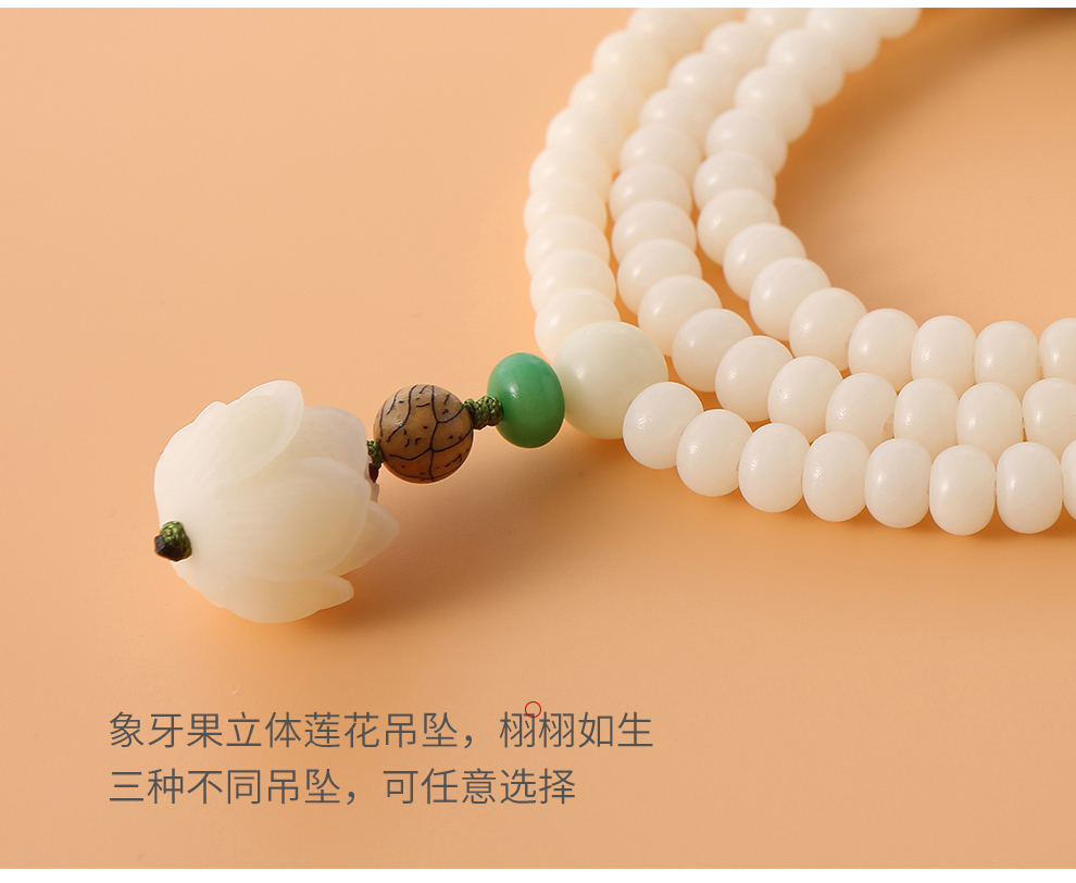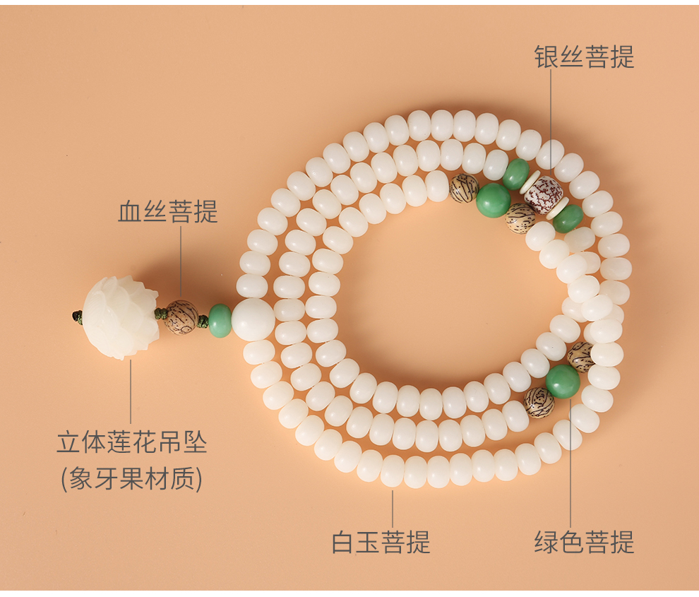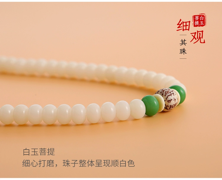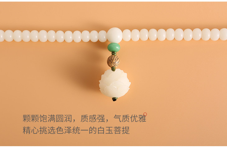 108颗立体莲花白玉菩提佛珠手链